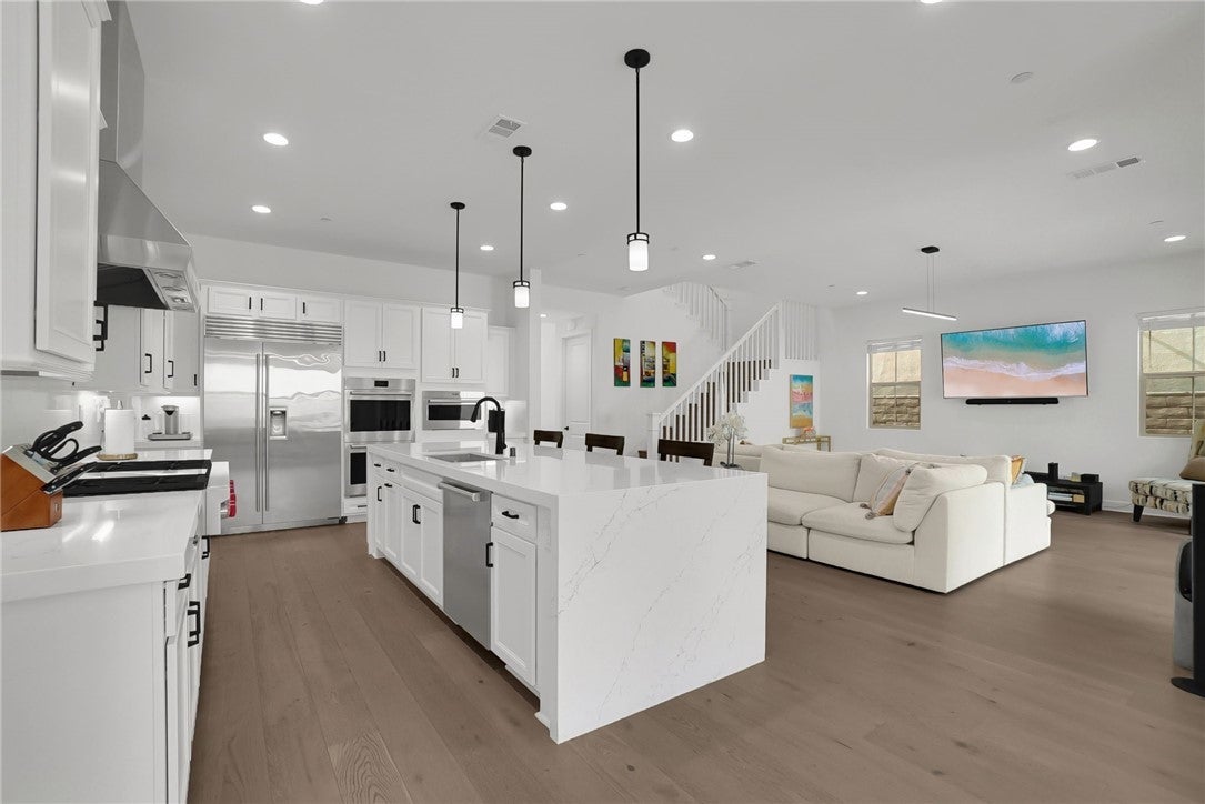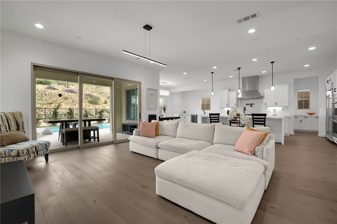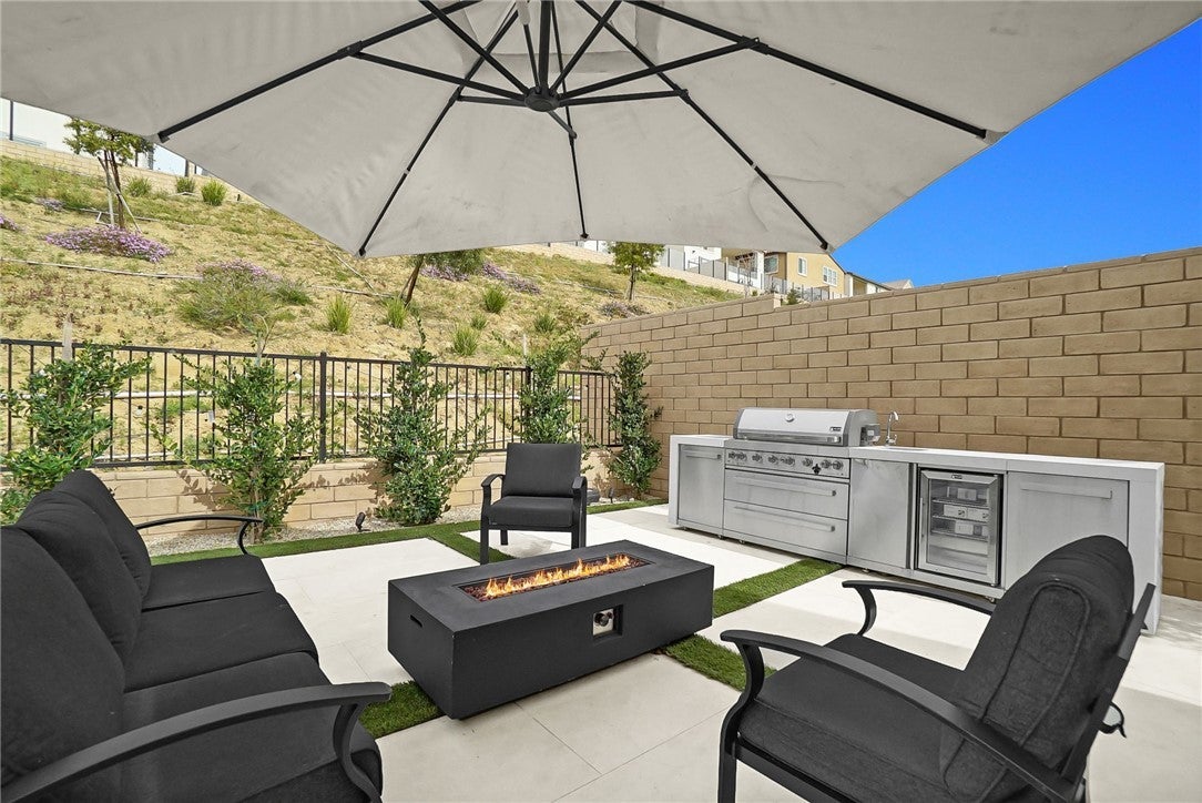 Experience unparalleled luxury in the prestigious Skyline at Deerlake Ranch at 21303 Rockview Terrace. This 2023-built residence is a true standout, featuring over $200,000 in custom outdoor upgrades and the rare distinction of being one of few homes in the immediate neighborhood with a private resort-style pool and heated built-in jacuzzi. The backyard serves as an ultimate entertainer’s sanctuary, boasting a high-end built-in BBQ station, a professional outdoor kitchen, and a sleek fire pit lounge area perfectly designed for year-round California living. The interior is equally impressive, centered around a gourmet chef’s kitchen equipped with professional-grade Wolf appliances, a built-in Sub-Zero refrigerator, and stunning quartz countertops with a massive waterfall-edge island. Spanning 5 bedrooms, 5 full bathrooms, and 2 half bathrooms, the open-concept floor plan features engineered wood flooring throughout and includes a convenient main-level bedroom with a full bath. Modern essentials are seamlessly integrated, including an energy-efficient solar panel system, a dedicated EV charger, ADT home security, and smart-home capabilities. Residents also enjoy access to The Canyon Club and miles of scenic hiking trails, all while being offered at $1,899,999.