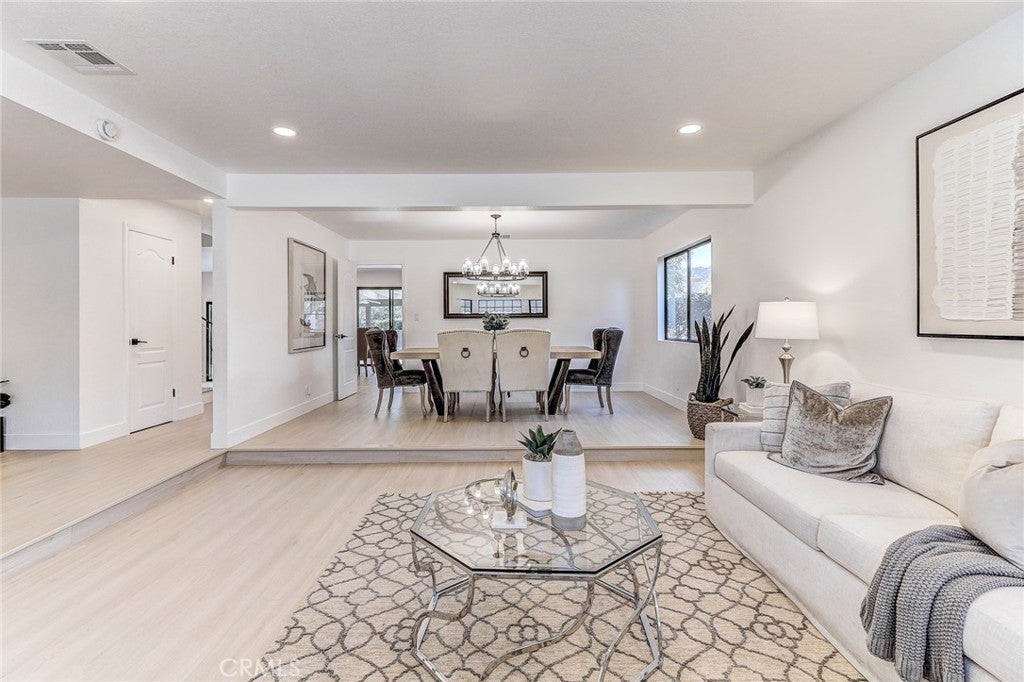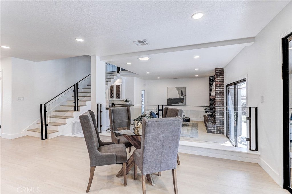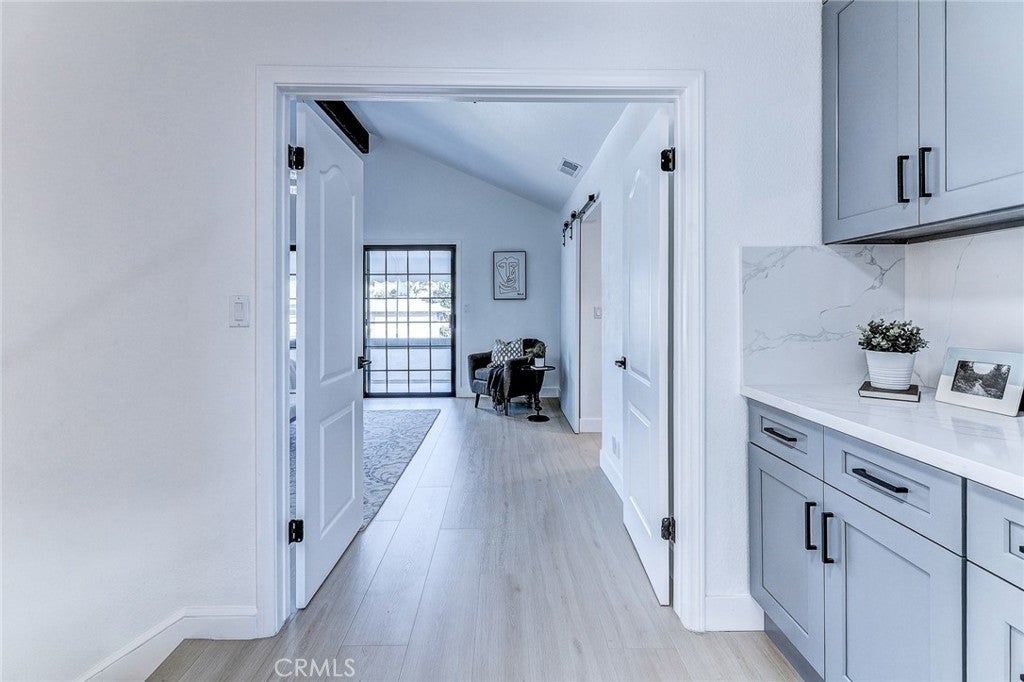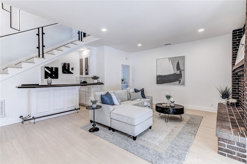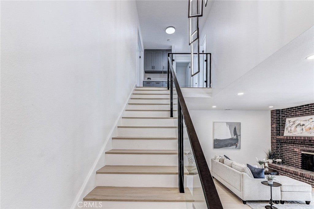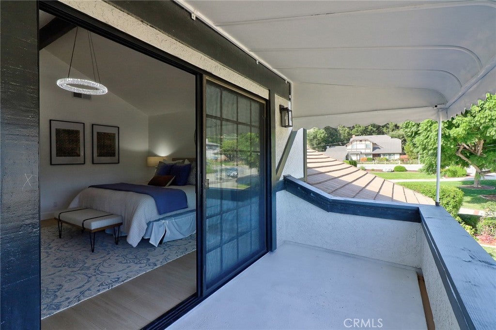 Exquisitely renovated and impeccably designed, this stunning 4 bedroom, 3 bath estate in the heart of Glendora offers 2,652 square feet of sophisticated living and effortless elegance. Privately set behind a sweeping circular driveway and complemented by a three-car finished garage with generous additional parking, this residence immediately impresses with its striking curb appeal, partial brick façade, and grand double-door entry. Inside, upgraded wide-plank flooring and soft recessed lighting create a warm yet contemporary ambiance throughout. The thoughtfully designed formal living and dining spaces include a step-down living room adorned with a charming bay window—an inviting setting for intimate gatherings and refined entertaining. At the heart of the home lies a spectacular, fully remodeled chef’s kitchen featuring gleaming quartz countertops, brand-new stainless-steel appliances, custom cabinetry, and a dramatic waterfall island with seating for four. The adjoining breakfast nook overlooks the family room through a sleek glass balustrade and opens seamlessly to the backyard, creating a natural flow between indoor comfort and outdoor leisure. The step-down family room is rich in character, highlighted by a statement brick-mantled fireplace, a full wet bar, and an expansive sliding door that enhances the home’s indoor-outdoor lifestyle. A desirable downstairs bedroom suite offers privacy and flexibility, complete with yard access and serene mountain views. The adjacent three-quarter bath has been beautifully reimagined with quartz counters, designer cabinetry, and direct outdoor access—ideal for guests or future pool convenience. Ascending the modern glass-balustrade staircase, the primary suite serves as a true private retreat. Enjoy a covered balcony, dual custom closets with elegant Japanese koji-style doors, and a spa-inspired bath featuring a soaking tub, separate shower, dual vanities, and a state-of-the-art Japanese bidet toilet. Two additional upstairs bedrooms capture picturesque backyard and mountain vistas and share a tastefully remodeled bath appointed with a waterfall shower and premium finishes. The backyard is a tranquil sanctuary, thoughtfully landscaped and centered around an inviting in-ground hot tub. A detached structure with electricity offers endless possibilities whether envisioned as a private fitness studio, creative workspace, executive office, or refined retreat.