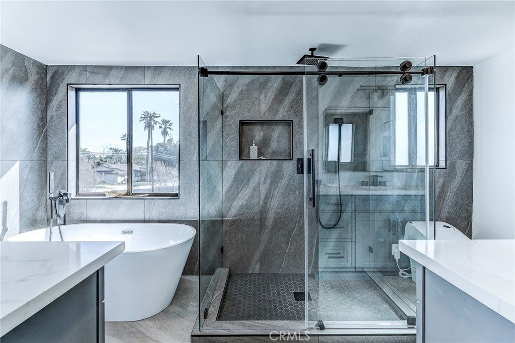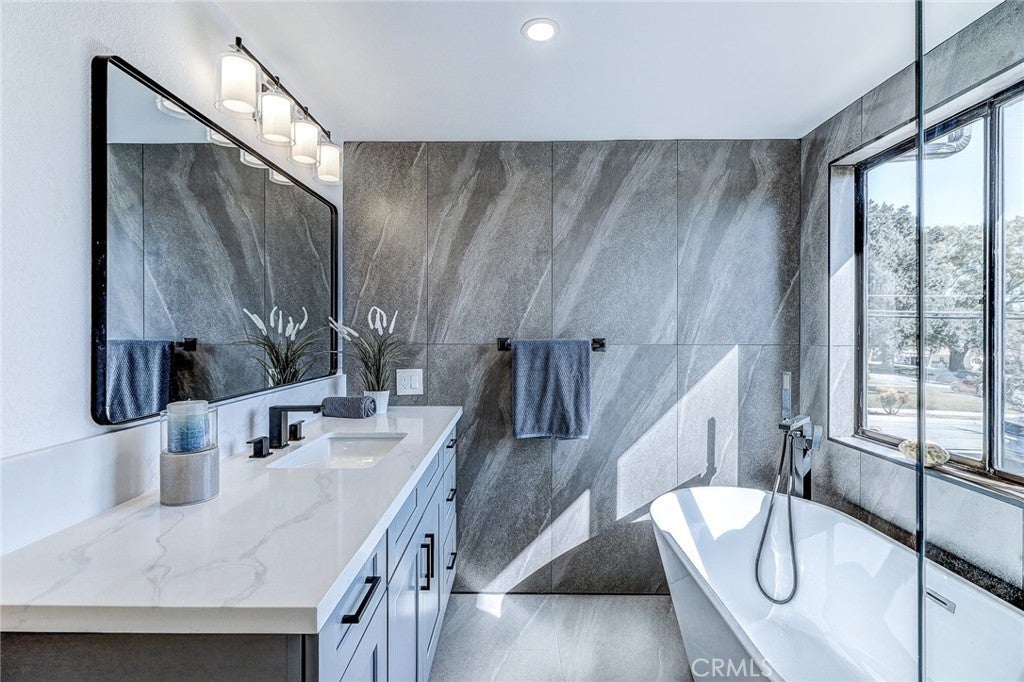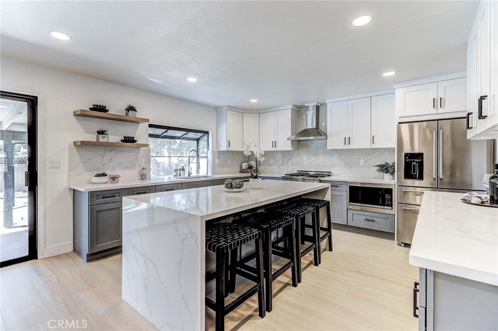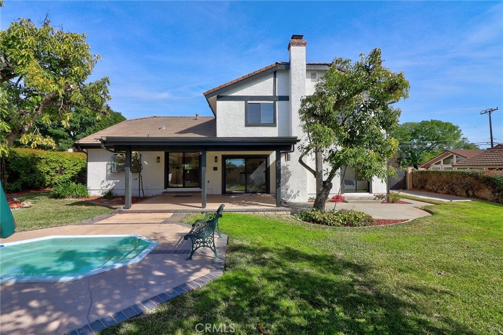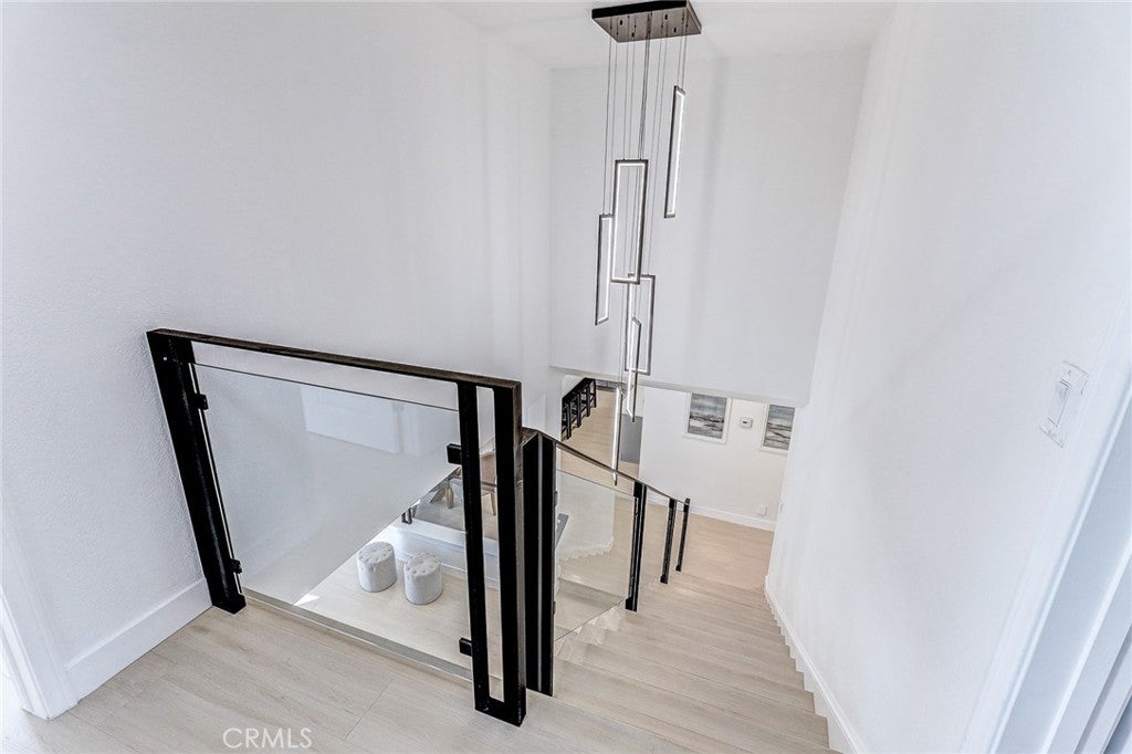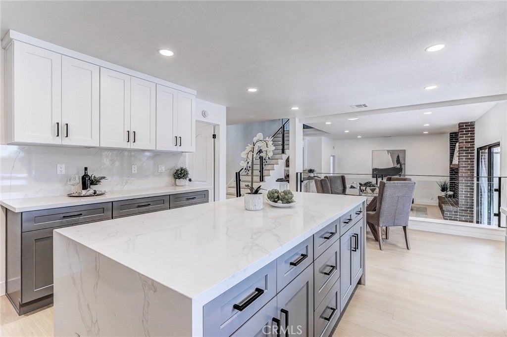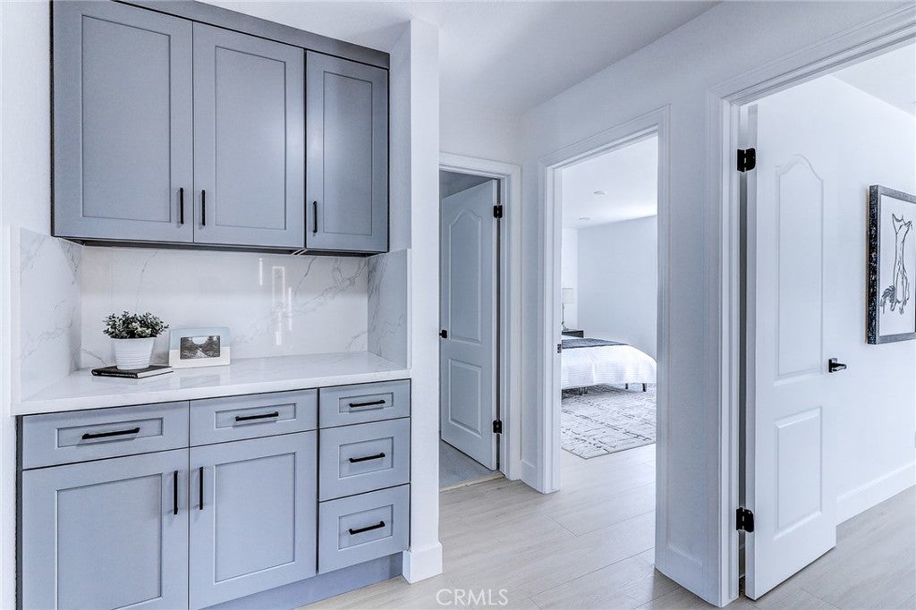 Exquisitely renovated and impeccably designed, this stunning 4 bedroom, 3 bath estate in the heart of Glendora offers 2,652 square feet of sophisticated living and effortless elegance. Privately set behind a sweeping circular driveway and complemented by a three-car finished garage with generous additional parking, this residence immediately impresses with its striking curb appeal, partial brick façade, and grand double-door entry. Inside, upgraded wide-plank flooring and soft recessed lighting create a warm yet contemporary ambiance throughout. The thoughtfully designed formal living and dining spaces include a step-down living room adorned with a charming bay window—an inviting setting for intimate gatherings and refined entertaining. At the heart of the home lies a spectacular, fully remodeled chef’s kitchen featuring gleaming quartz countertops, brand-new stainless-steel appliances, custom cabinetry, and a dramatic waterfall island with seating for four. The adjoining breakfast nook overlooks the family room through a sleek glass balustrade and opens seamlessly to the backyard, creating a natural flow between indoor comfort and outdoor leisure. The step-down family room is rich in character, highlighted by a statement brick-mantled fireplace, a full wet bar, and an expansive sliding door that enhances the home’s indoor-outdoor lifestyle. A desirable downstairs bedroom suite offers privacy and flexibility, complete with yard access and serene mountain views. The adjacent three-quarter bath has been beautifully reimagined with quartz counters, designer cabinetry, and direct outdoor access—ideal for guests or future pool convenience. Ascending the modern glass-balustrade staircase, the primary suite serves as a true private retreat. Enjoy a covered balcony, dual custom closets with elegant Japanese koji-style doors, and a spa-inspired bath featuring a soaking tub, separate shower, dual vanities, and a state-of-the-art Japanese bidet toilet. Two additional upstairs bedrooms capture picturesque backyard and mountain vistas and share a tastefully remodeled bath appointed with a waterfall shower and premium finishes. The backyard is a tranquil sanctuary, thoughtfully landscaped and centered around an inviting in-ground hot tub. A detached structure with electricity offers endless possibilities whether envisioned as a private fitness studio, creative workspace, executive office, or refined retreat.