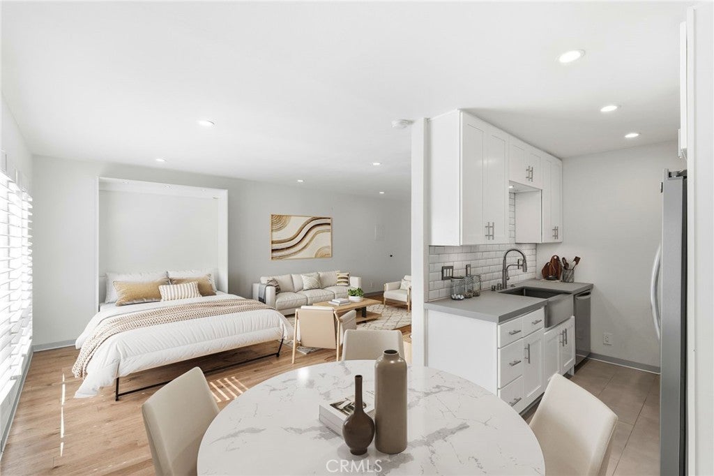 Beautifully renovated corner-unit condo, ideally located in Hollywood at the base of Runyon Canyon, offering convenient access to some of the area’s best hiking, dining, and entertainment. This thoughtfully updated home has been completely renovated from top to bottom, featuring new flooring, cabinetry, fixtures, kitchen and bath upgrades, window coverings, views of the sparkling pool, and a new dual washer/dryer for ultimate convenience. The modern kitchen features stainless steel appliances, sleek cabinetry, and under-cabinet LED lighting, creating a clean, contemporary feel. Hardwood floors with cork underlayment add warmth and comfort, while recessed lighting and plantation shutters enhance the bright and inviting living space. The updated bathroom features a beautifully tiled shower with a glass enclosure and stylish finishes throughout. Within the community, enjoy a private outdoor patio which provides a peaceful spot to relax and enjoy Southern California’s year-round sunshine. Additional highlights include secure 2 tandem parking spaces (57 & 58) in the garage and access to excellent building amenities, including two fitness centers, two saunas, and a brand-new pool and spa currently under construction. Projected to be completed by May of this year! This move-in-ready condo is a wonderful opportunity to own a stylish and updated home in one of Los Angeles’ most sought-after neighborhoods. Schedule a private showing to come see today.