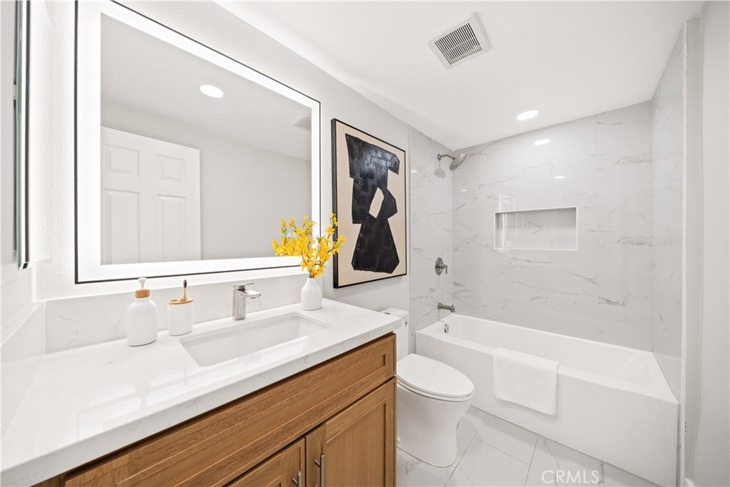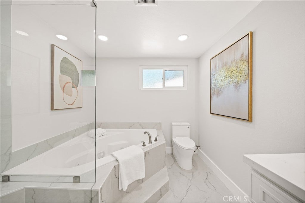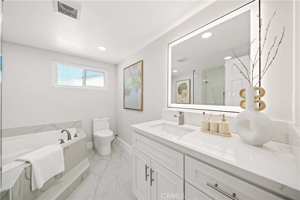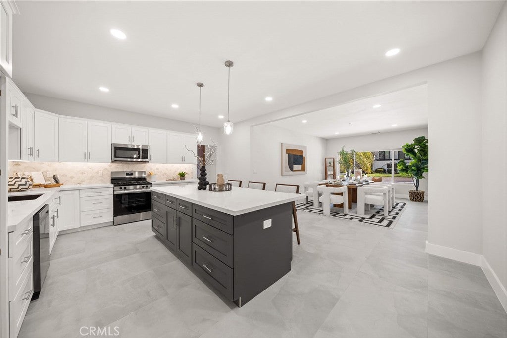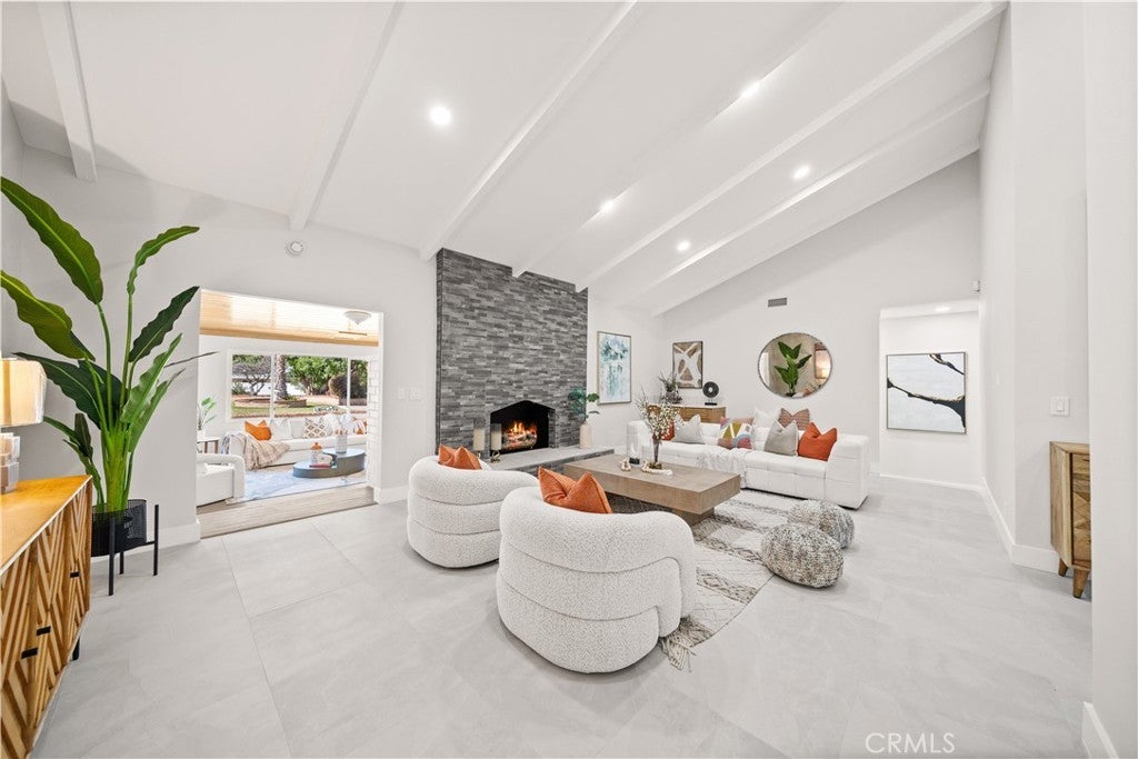 Fully renovated single-story ranch home located on a quiet cul-de-sac in a prime Rowland Heights neighborhood. This move-in ready property offers 5 bedrooms, an office, and 3.5 bathrooms, ideal for multigenerational living or rental income potential. Features include double-door entry, spacious living room with fireplace, separate family room with second fireplace, and an open gourmet kitchen with white cabinetry, stainless steel appliances, and quartz countertops. Spanish architectural details throughout. Includes two master suites plus three additional bedrooms. One oversized master suite offers a studio-style layout with its own living area and separate entrance, suitable for extended family or rental use. Both master suites feature large windows with views of the backyard greenery. A private office near the front entry includes a large window overlooking the peaceful neighborhood. Situated on a large, flat, and usable lot with ADU potential. Gated front yard and oversized paved driveway provide ample parking for multiple vehicles and RV parking. Located within Rowland Unified School District, within walking distance to Blandford Elementary School, HK Market, shops, restaurants, and parks. Upgrades in past 2 years include: •new kitchen • all new bathrooms •new windows/doors • new tile flooring • repiping • new electrical wiring • tankless water heater • LED lighting, approx • 70% roof replacement • new security alarm system with monitoring •Interior & exterior painting • new garage door.