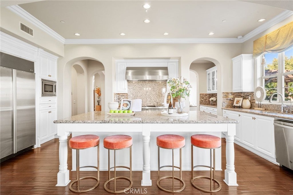 • Interior FeaturesBreakfast Bar, Built-in Features, Balcony, Breakfast Area, Chair Rail, Ceiling Fan(s), Crown Molding, Cathedral Ceiling(s), Separate/Formal Dining Room, Eat-in Kitchen, Granite Counters, High Ceilings, Open Floorplan, Pantry, Stone Counters, Recessed Lighting, Storage, Tile Counters, Central Vacuum, Ceramic Counters, Coffered Ceiling(s)
