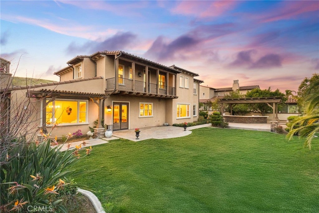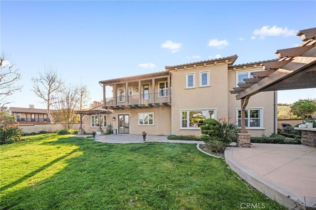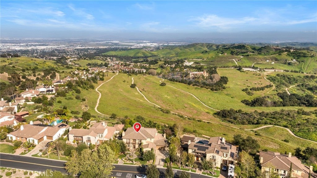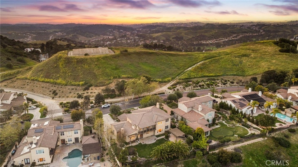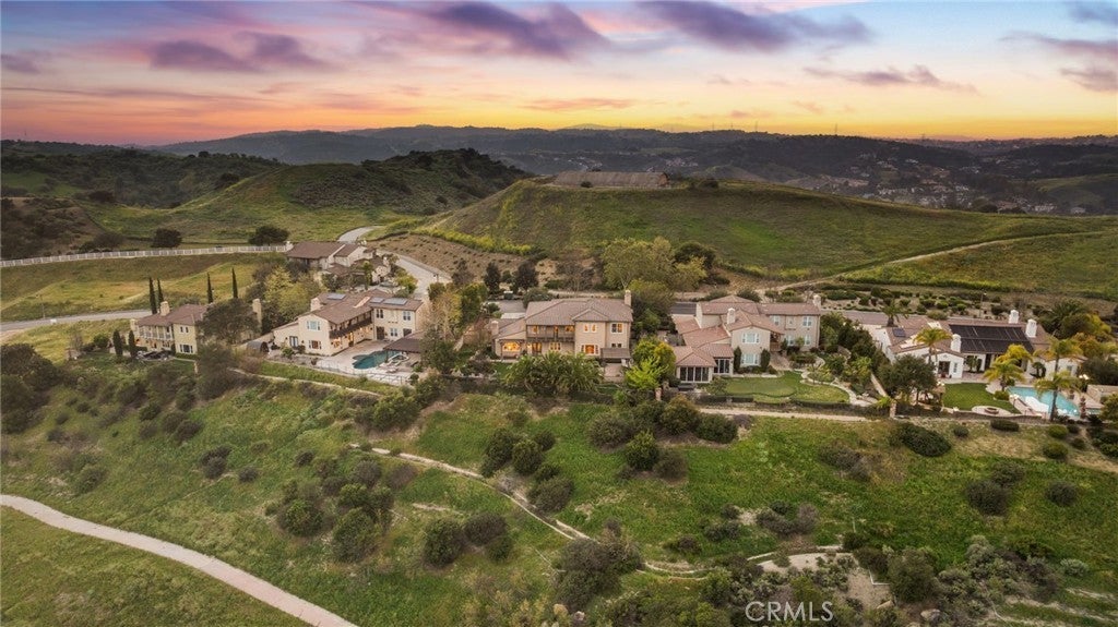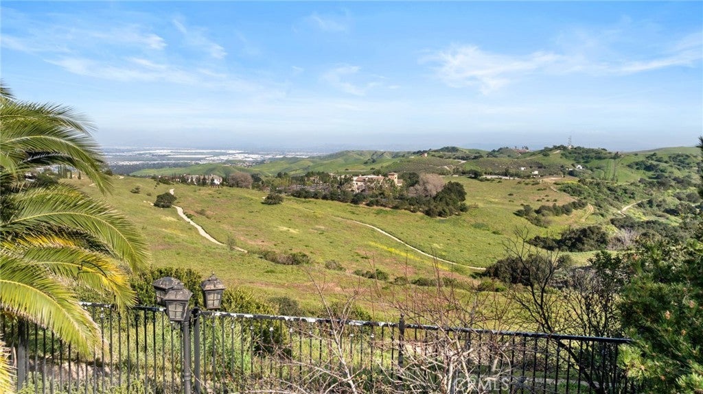 View! VIEW! VIEW! Spectacular 180-degree panoramic views of rolling hills, mountains, and city lights from this stunning luxury estate located in the prestigious gated Vellano community of Chino Hills. This impressive executive residence features 5 bedrooms and 5.5 bathrooms, including one bedroom suite downstairs, plus a private home office on the main level and a spacious upstairs entertainment/bonus room. A 4-car garage provides ample parking and storage. The home offers beautiful curb appeal with professionally landscaped grounds and a charming front courtyard fountain. Inside, the residence showcases an open floor plan with elegant wood flooring, soaring ceilings, and abundant natural light. The formal living room features a cozy fireplace, while the formal dining room boasts a dramatic two-story cathedral ceiling, creating an elegant space for entertaining. The gourmet chef’s kitchen is appointed with full slab granite countertops, a large center island with breakfast bar, white cabinetry, and premium stainless-steel appliances, including a Subzero built-in refrigerator, built-in microwave, double ovens, and a 6-burner cooktop with grill and professional hood. The sunny breakfast nook opens seamlessly to the spacious family room with fireplace and built-in entertainment center. Upstairs, all bedrooms enjoy beautiful view vistas. The luxurious primary suite features a private balcony overlooking the panoramic scenery. The spa-inspired primary bathroom offers dual vanities, a separate soaking tub, and a walk-in shower. Additional upgrades include custom window coverings, crown moldings, recessed lighting, designer chandeliers, ceiling fans, and custom two-tone paint. The professionally landscaped backyard is designed for outdoor entertaining with a built-in BBQ island, patio deck, and breathtaking panoramic views. Located in the highly sought-after Vellano gated community, offering privacy, prestige, and one of the best view locations in Chino Hills.