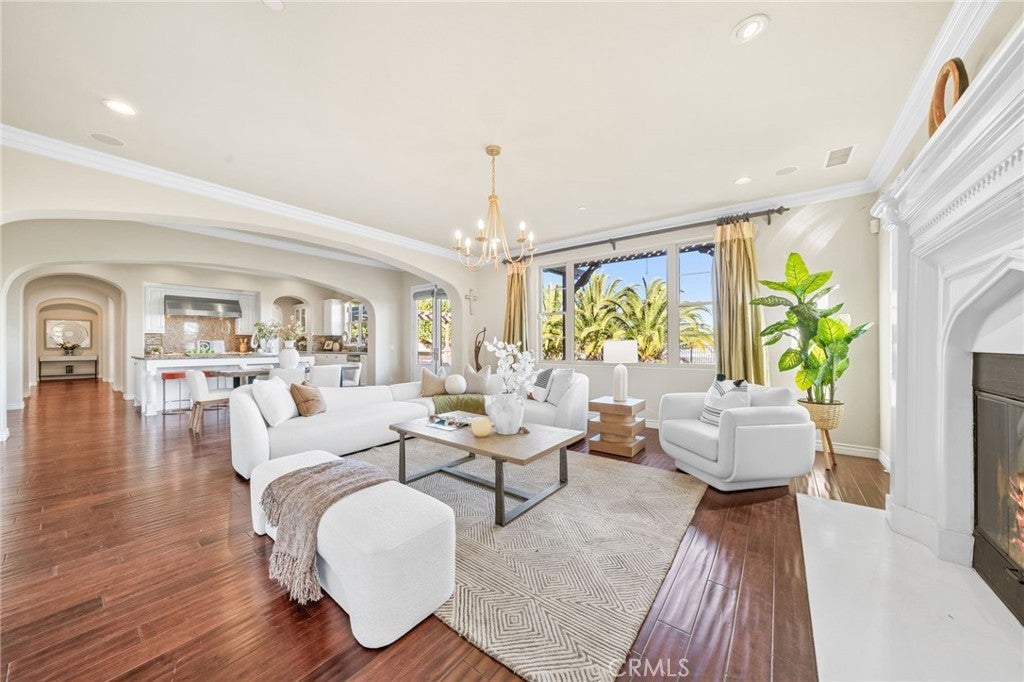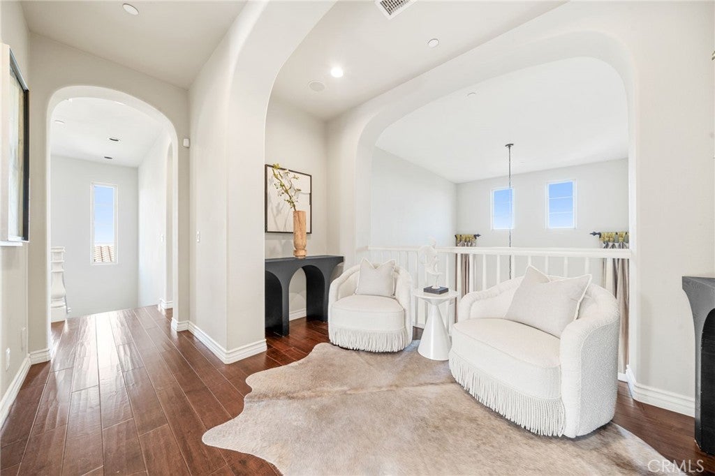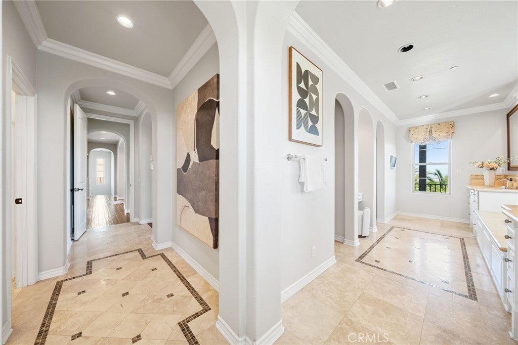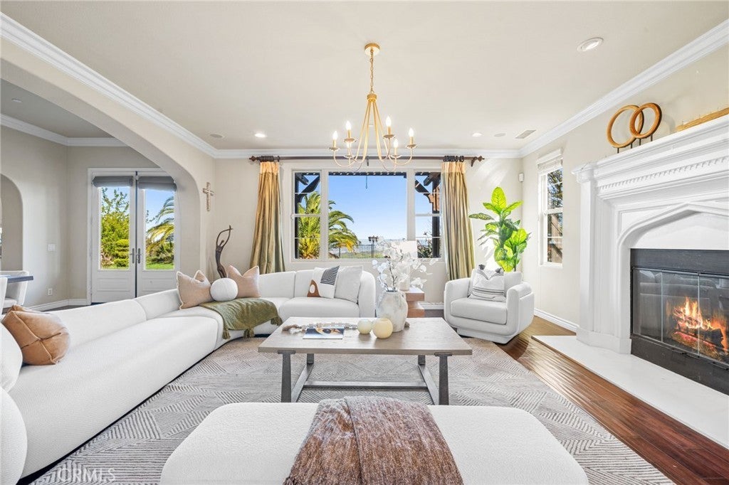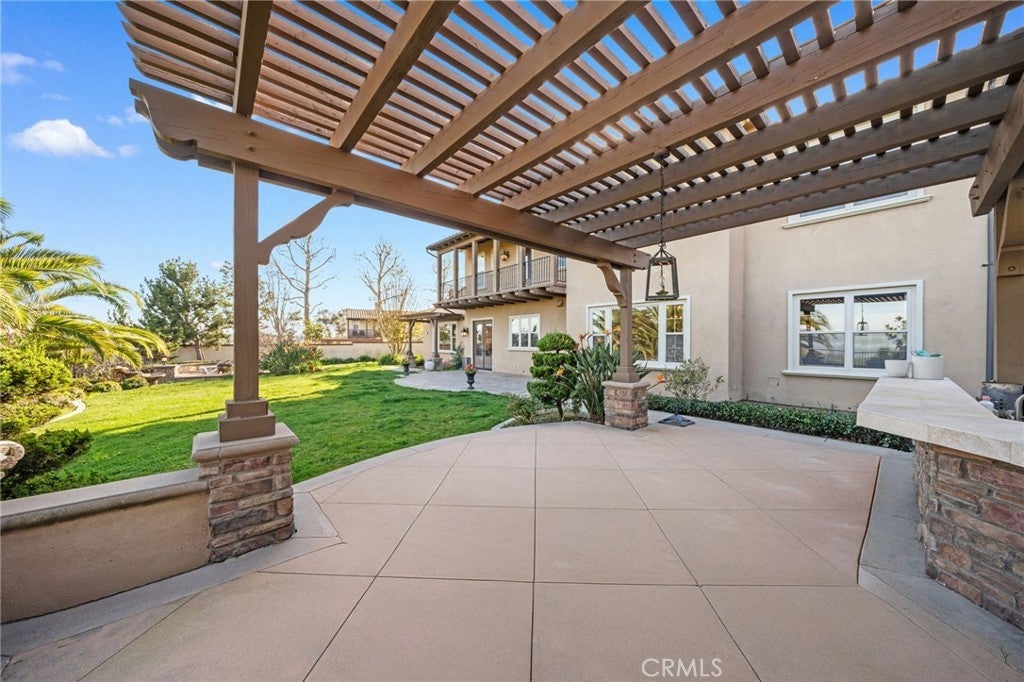 View! VIEW! VIEW! Spectacular 180-degree panoramic views of rolling hills, mountains, and city lights from this stunning luxury estate located in the prestigious gated Vellano community of Chino Hills. This impressive executive residence features 5 bedrooms and 5.5 bathrooms, including one bedroom suite downstairs, plus a private home office on the main level and a spacious upstairs entertainment/bonus room. A 4-car garage provides ample parking and storage. The home offers beautiful curb appeal with professionally landscaped grounds and a charming front courtyard fountain. Inside, the residence showcases an open floor plan with elegant wood flooring, soaring ceilings, and abundant natural light. The formal living room features a cozy fireplace, while the formal dining room boasts a dramatic two-story cathedral ceiling, creating an elegant space for entertaining. The gourmet chef’s kitchen is appointed with full slab granite countertops, a large center island with breakfast bar, white cabinetry, and premium stainless-steel appliances, including a Subzero built-in refrigerator, built-in microwave, double ovens, and a 6-burner cooktop with grill and professional hood. The sunny breakfast nook opens seamlessly to the spacious family room with fireplace and built-in entertainment center. Upstairs, all bedrooms enjoy beautiful view vistas. The luxurious primary suite features a private balcony overlooking the panoramic scenery. The spa-inspired primary bathroom offers dual vanities, a separate soaking tub, and a walk-in shower. Additional upgrades include custom window coverings, crown moldings, recessed lighting, designer chandeliers, ceiling fans, and custom two-tone paint. The professionally landscaped backyard is designed for outdoor entertaining with a built-in BBQ island, patio deck, and breathtaking panoramic views. Located in the highly sought-after Vellano gated community, offering privacy, prestige, and one of the best view locations in Chino Hills.