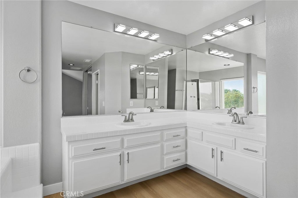 Welcome to Murrieta. Property is remodeled. Beautiful spacious home features 4 bed 3 bath. Home was updated with new kitchen with quartz countertops, new interior/exterior paint, vinyl waterproof flooring, vinyl windows, newer air conditioning, whole house fan installed, new carpet, reglazed shower tubs, new toilets, 2 new bath vanities with faucets & bath hardware, new base boards, new LED lighting throughout, outlets and switches replaced. As you enter you are greeted with high ceilings and plenty of windows. There is a fireplace in the living room. There is one bedroom conveniently located downstairs and three bedrooms upstairs. The backyard has a nice view. Solar panels are paid off. Conveniently located near 15 and 215 Freeways. No HOA