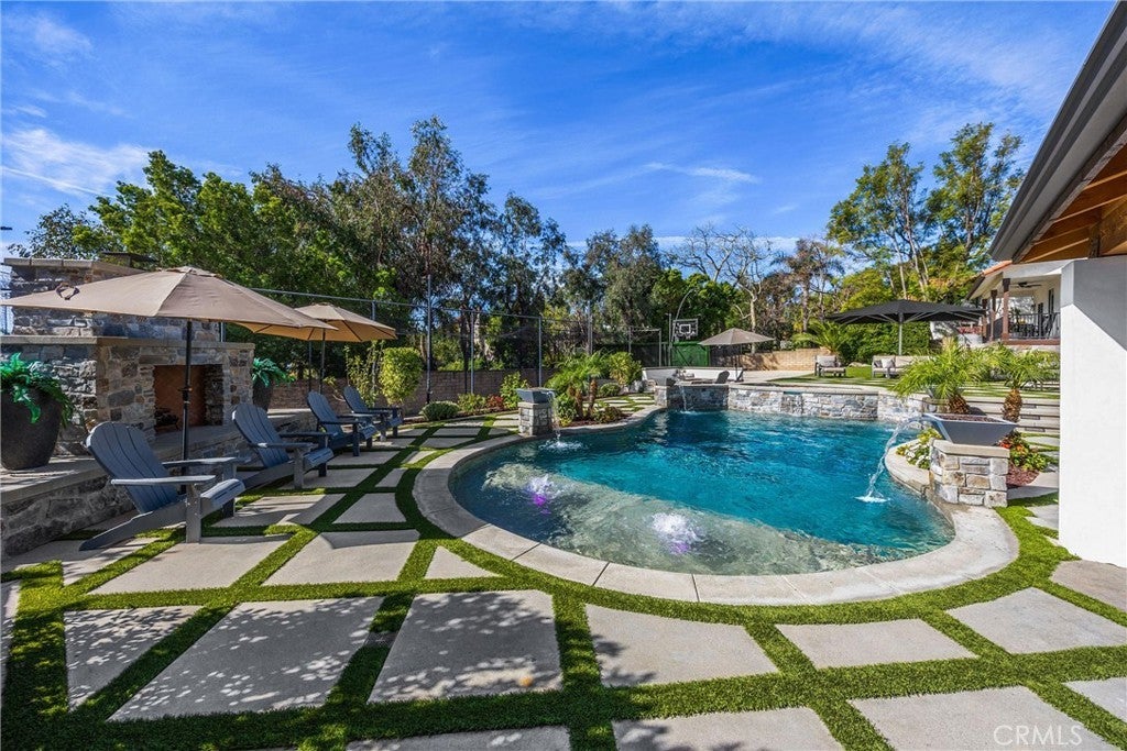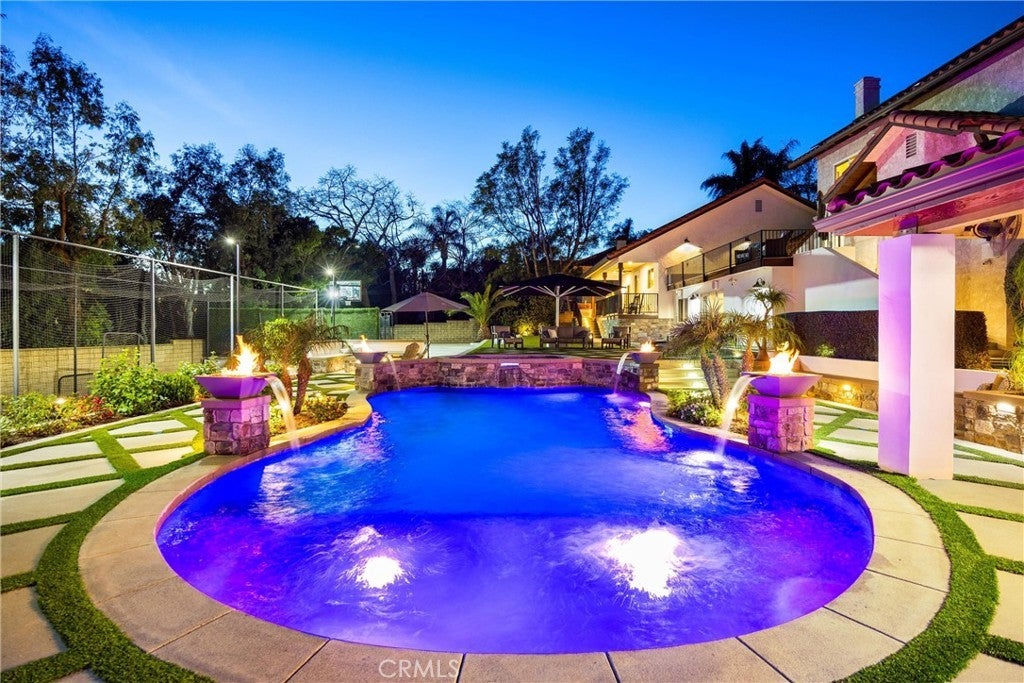 Welcome to 10829 Boulder Canyon rd nestled on a picturesque, tree-lined street in the exclusive Deer Creek Community. This fully upgraded smart estate is a masterclass in modern luxury. From the moment you arrive, the curb appeal sets a sophisticated tone. A stunning entry welcomes you into the formal living and dining room, leading seamlessly to the kitchen and family room overlooking the backyard oasis. The kitchen is anchored by quartz countertops and premium cabinetry, while wood-look tile spans the entire main level. The home features one bedroom on the main level, three bedrooms upstairs, and a bonus family room below the main level complete with a full bathroom and direct access to the backyard. The backyard is an entertainer’s paradise, framed by incredible views. A sparkling pool with cascading waterfalls is accented by dramatic fire bowls, a fire pit, and a cozy outdoor fireplace—creating year-round ambiance. Managed by the Pentair ScreenLogic system, you can control pool features and lighting directly from your smartphone. Offering resort-style recreation at home, the backyard also features a batting cage, basketball court, and an in-ground trampoline. A covered outdoor kitchen is complete with a built-in BBQ, natural gas burners, a sink, a drop-in cooler, and commercial-grade refrigerators—perfect for effortless entertaining. Three dedicated Sonos speaker zones with wireless amps ensure the perfect soundtrack for any gathering. In addition, an ADU built in 2021 mirrors the same high-end finishes as the main residence. Featuring 1 bedroom, 1 bathroom, full kitchen, living room and independent climate control. With a seperate entrance, this space provides the ultimate opportunity for multi-generational living or renting it out. Rest easy with a comprehensive security suite that includes hardwired cameras complemented by Ring integration. Two dedicated monitoring stations—located in the family room and the primary suite—provide real-time visibility and total control. ** Solar is paid for - plus 2 10k Batteries ** RV Parking Experience the pinnacle of Deer Creek living!!