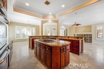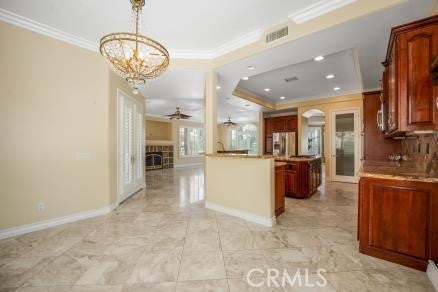 One of the custom build home in this prestigious neighborhood featured 4 Bedrooms and 4 Full Bathrooms, 3,703 sf of living space, 0.54 Acres (23,522 sf) of lot size. Office and full Bath main floor with Large Kitchen surrounded by the Large formal dining room, Breakfast Nook area and Family room with fireplace. Kitchen featured custom cabinetry and granite countertop, pantry. Vaulted ceiling with crowned molding. Top floor featured a Master Suite, plus another 3 Bedrooms and 2 Bathrooms, Huge Loft/Entertainment room with Cabinetry and Countertop with sink/faucet with an entrance to a large balcony for outdoor relaxation and viewing. Backyard is a resort style with water fall, a Tiki Hut Patio with build in BBQ. It's a 3 Car Garage. Beautifully Landscaped with rounded water fall for drive around entrance.