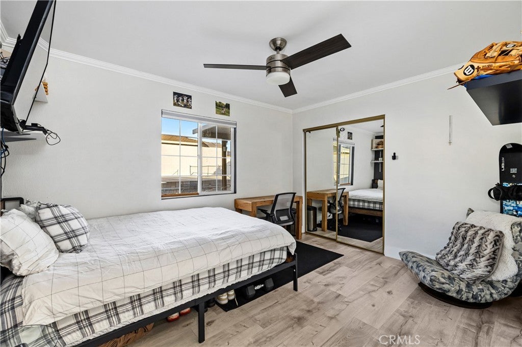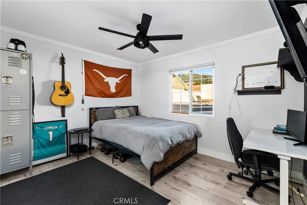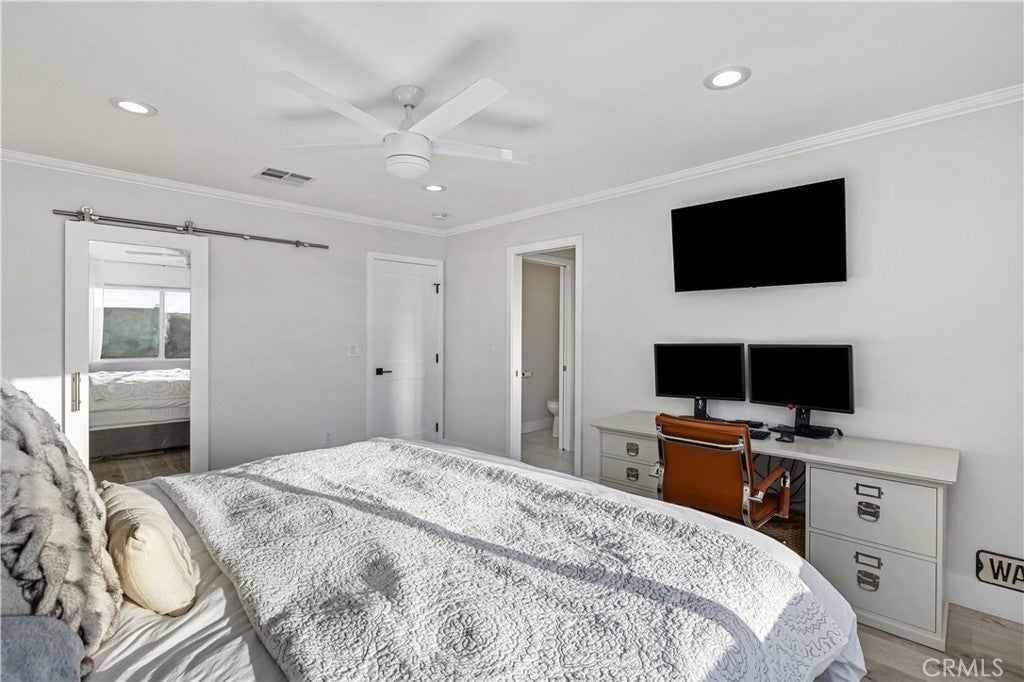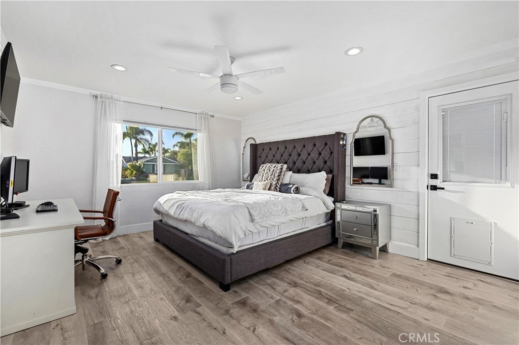 • Interior FeaturesBreakfast Bar, Ceiling Fan(s), Open Floorplan, Quartz Counters, Recessed Lighting, Bedroom on Main Level, Main Level Primary, Walk-In Closet(s), Crown Molding