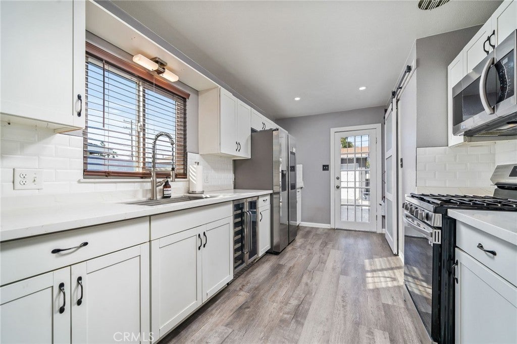 Welcome to 943 E Yale Street — a beautifully updated home that perfectly blends charm, modern upgrades, and an incredible outdoor space. PAID OFF SOLAR, 4 BEDROOMS, LARGE LOT AND COMPLETELY REMODELED. From the moment you arrive, the home’s inviting curb appeal, lush green lawn, and mature palm trees set the tone for what awaits inside. Step through the front door into a warm and inviting living room highlighted by stunning exposed wood beam ceilings, abundant natural light, and stylish updated flooring that flows throughout the home. The space feels open, comfortable, and perfect for relaxing evenings or hosting friends and family. The remodeled kitchen is both modern and functional, featuring crisp white cabinetry, quartz countertops, stainless steel appliances, subway tile backsplash, and a beautiful farmhouse-style sink overlooking the backyard. Whether you're cooking dinner or enjoying your morning coffee, this space is designed to feel bright, clean, and welcoming. Both bathrooms have been tastefully updated with contemporary finishes, including modern vanities, upgraded fixtures, and sleek tile work. The home offers four comfortable bedrooms, providing flexibility for growing families, guests, or a home office. Beyond the cosmetic updates, this home also offers major upgrades that add real value and peace of mind. Enjoy the benefits of fully PAID OFF SOLAR, updated windows, upgraded flooring, new exterior and interior paint, recessed lighting, and Central AC and Heat, and an upgraded electrical panel — helping improve energy efficiency while keeping utility costs down. Step outside to a spacious backyard designed for entertaining and everyday enjoyment. With a large patio area, mature shade trees, and plenty of open space, the yard offers endless possibilities for gatherings, outdoor dining, play areas, or future customization. The detached garage includes an epoxy floor, drywall walls and its own AC. The extended driveway provide additional parking, storage, or potential RV parking. Situated on a generous 8,235 square foot lot in a well-established Ontario neighborhood, this home offers convenient access to local parks, schools, shopping, and major commuter routes. Homes with this combination of upgrades, charm, and lot size rarely come available. 943 E Yale Street is the kind of home that simply feels right the moment you walk in.