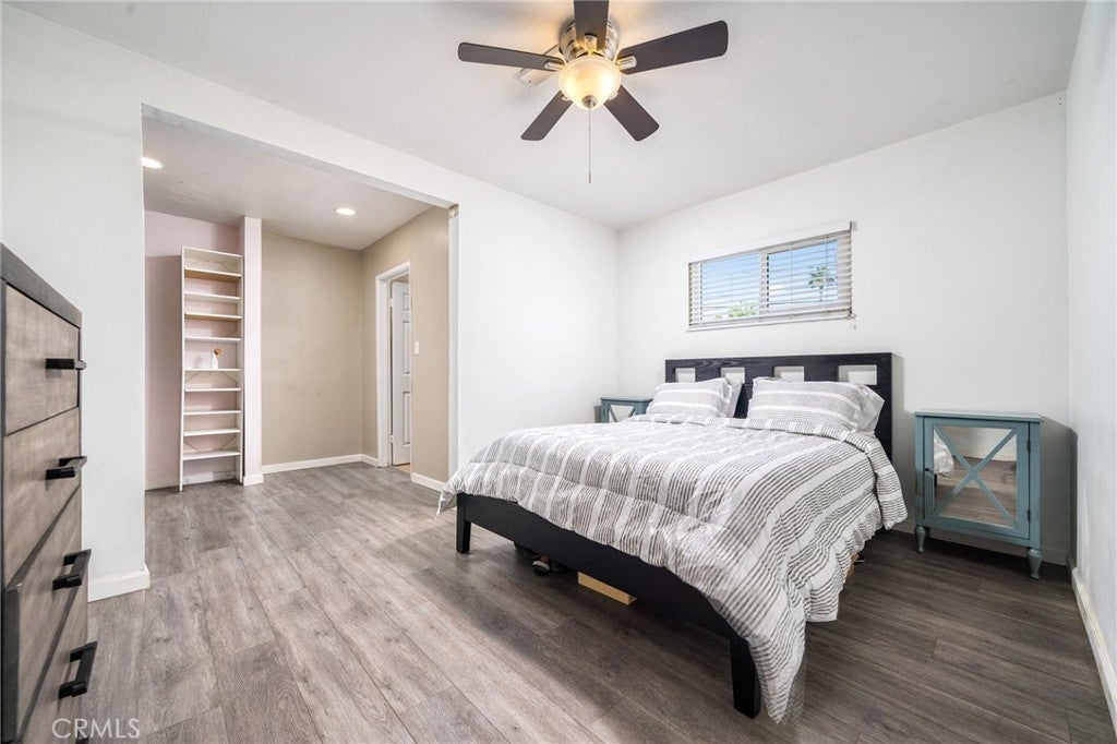 • Interior FeaturesBeamed Ceilings, Ceiling Fan(s), Quartz Counters, Recessed Lighting, Bedroom on Main Level, Main Level Primary, Walk-In Closet(s)
