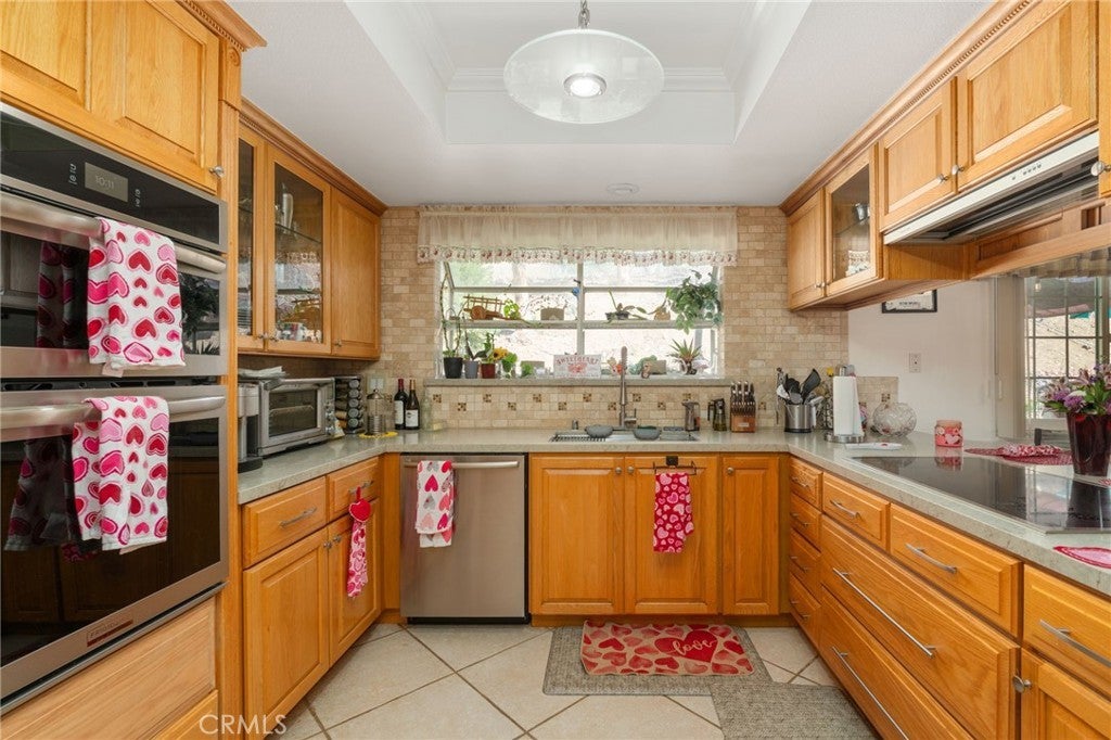 Nestled on a private hilltop, this beautifully maintained one-owner home offers stunning, jaw-dropping mountain views and a thoughtfully designed floor plan. The kitchen features oak cabinetry, laminate countertops, stainless steel appliances, a built-in Sub-Zero refrigerator, and a charming farmhouse sink, creating a warm and inviting space for everyday living. The home includes 4 bedrooms, 2 baths, and sits on an expansive 0.48 acre lot zoned for horse property, offering endless possibilities. The primary bathroom features a ceramic tile jacuzzi tub, perfect for relaxing and unwinding. Step outside to enjoy fresh garden beds and mature lemon and orange trees, creating a peaceful outdoor setting surrounded by beautiful views. This home combines space, privacy, and scenic beauty in a truly special setting. A rare opportunity to experience peaceful hilltop living, incredible views, and space to create your dream lifestyle.