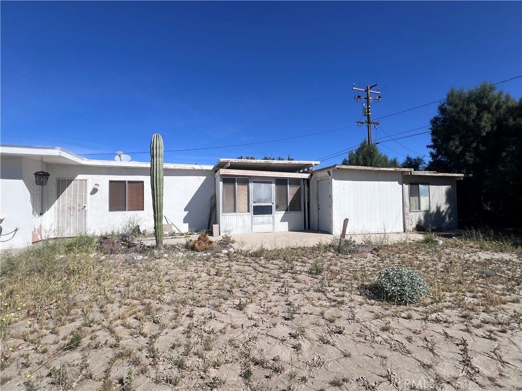 Incredible investment Opportunity in this unique property with Two homes on a spacious 8,712 sq ft lot located in North Palm Springs. Complete with Beautiful views of the snow capped San Jacinto Mountains!! Since this is the First time this property has been on the market in 35 years, it offers an excellent potential for renovation and investment as a fix and flip project, live in one and rent the other, or create the perfect multi-generational environment. The main home has 2 bedrooms and 1 bath. Kitchen is open to the family room. 2nd exterior door provides quick access to the garage. The second home has 1 bedroom and 1 bath. Total square footage is 1,610, buyer to verify. Conveniently located one-car garage between the 2 homes. The workshop is the perfect area to transform it into a home office, children's play area, gym, game room, an outdoor lounge.... The possibilities are endless!! Newer cemented driveway. Relax and take in the mountain views under the vinyl courtyard patio. The side yard is a blank canvas for your creativity. There is damage to the roof in the second home and dried mud on the floor of the workshop. Just bring your tools and let the renovations begin!!