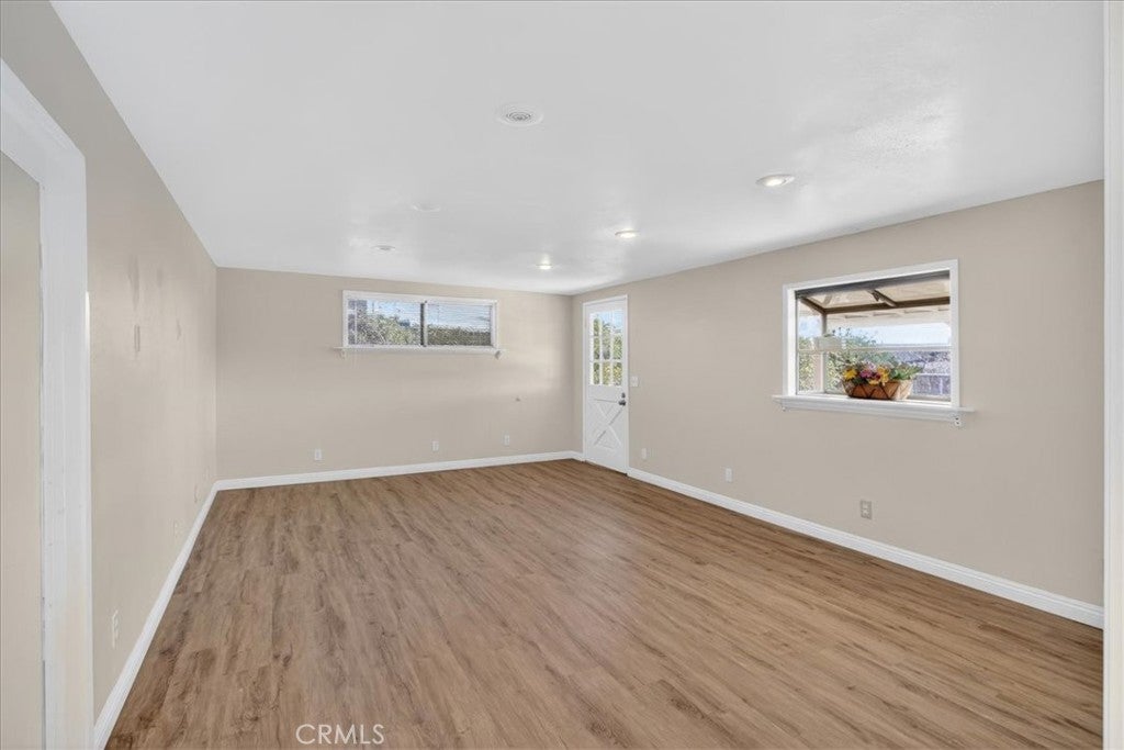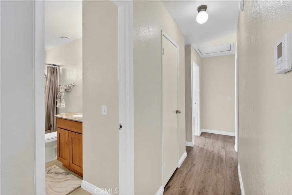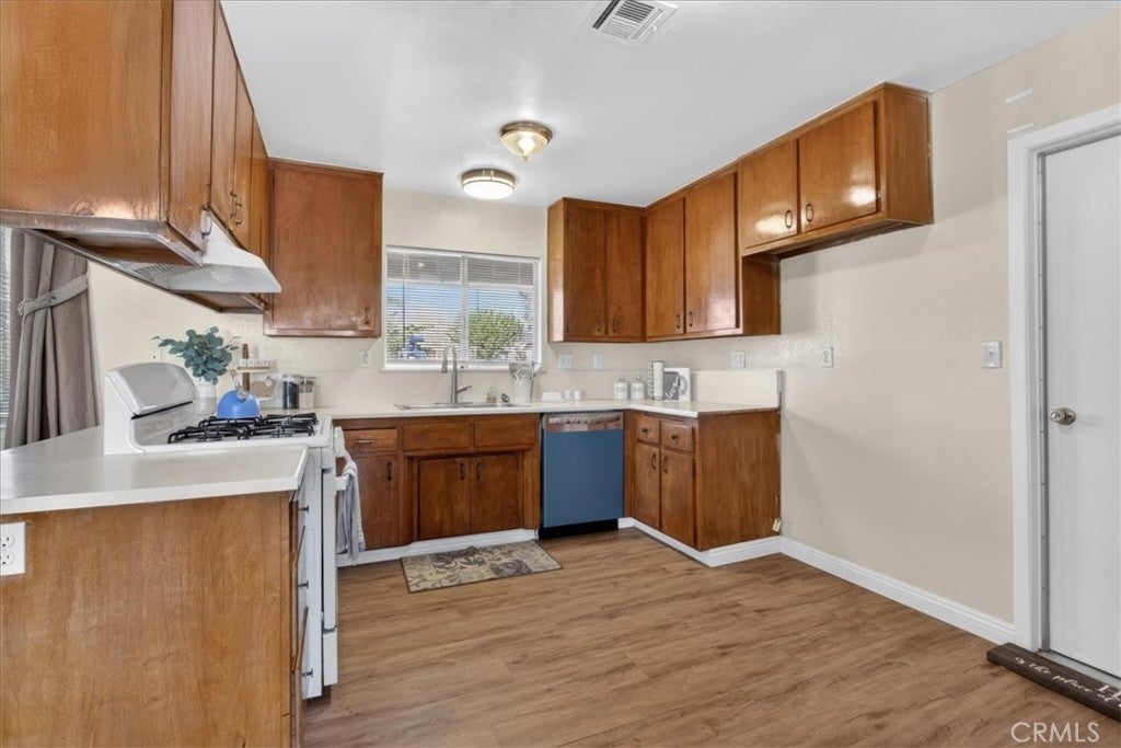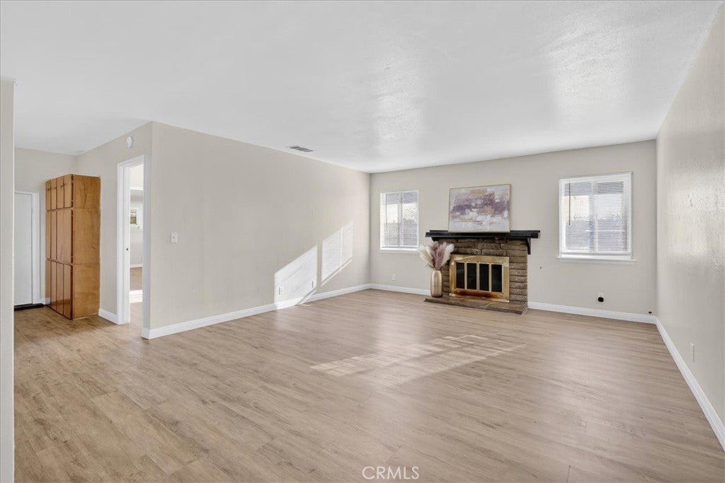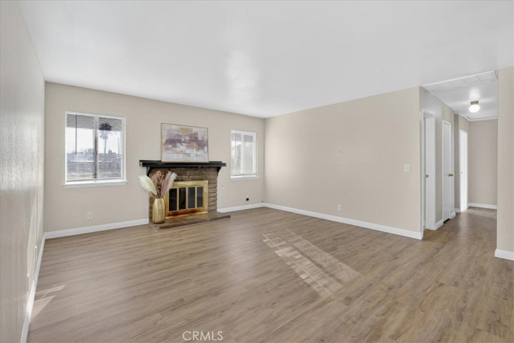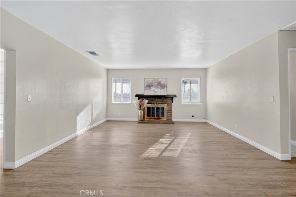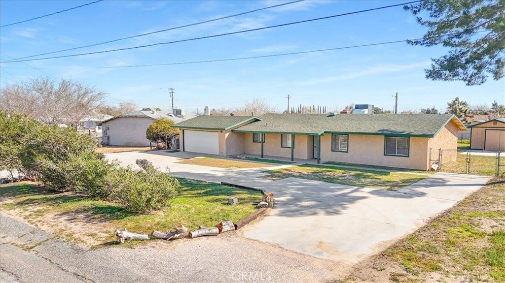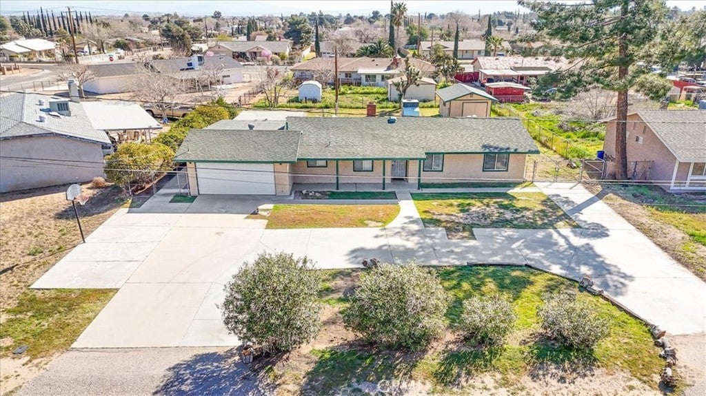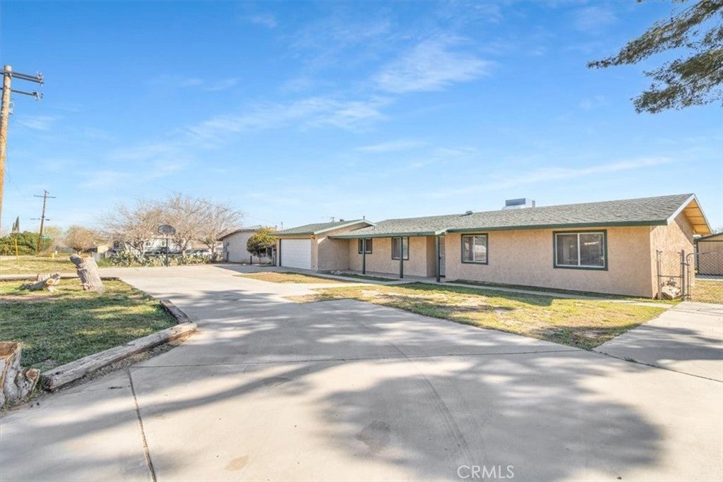 Welcome to this move-in ready 3-bedroom, 2-bath single-story home located in a highly desirable Hesperia neighborhood. This well-maintained home features vinyl flooring throughout, a functional layout, and a cozy fireplace in the living room that creates a warm and inviting focal point. The property includes an attached bonus room/flexible space that provides additional usable area beyond the recorded square footage—perfect for a home office, playroom, gym, or hobby space. Recent improvements include a brand-new HVAC system installed just a few months ago, providing added comfort and efficiency for the new owner. Outside, the property offers excellent parking and access with a half-circle driveway in front and a pull-through side gate leading to the backyard—ideal for extra vehicles, trailers, or recreational equipment. The backyard also features a large work shed/workshop with a newer shingle roof, providing plenty of room for tools, projects, or additional storage. This property offers flexible living space, valuable upgrades, and great outdoor functionality in a desirable location.