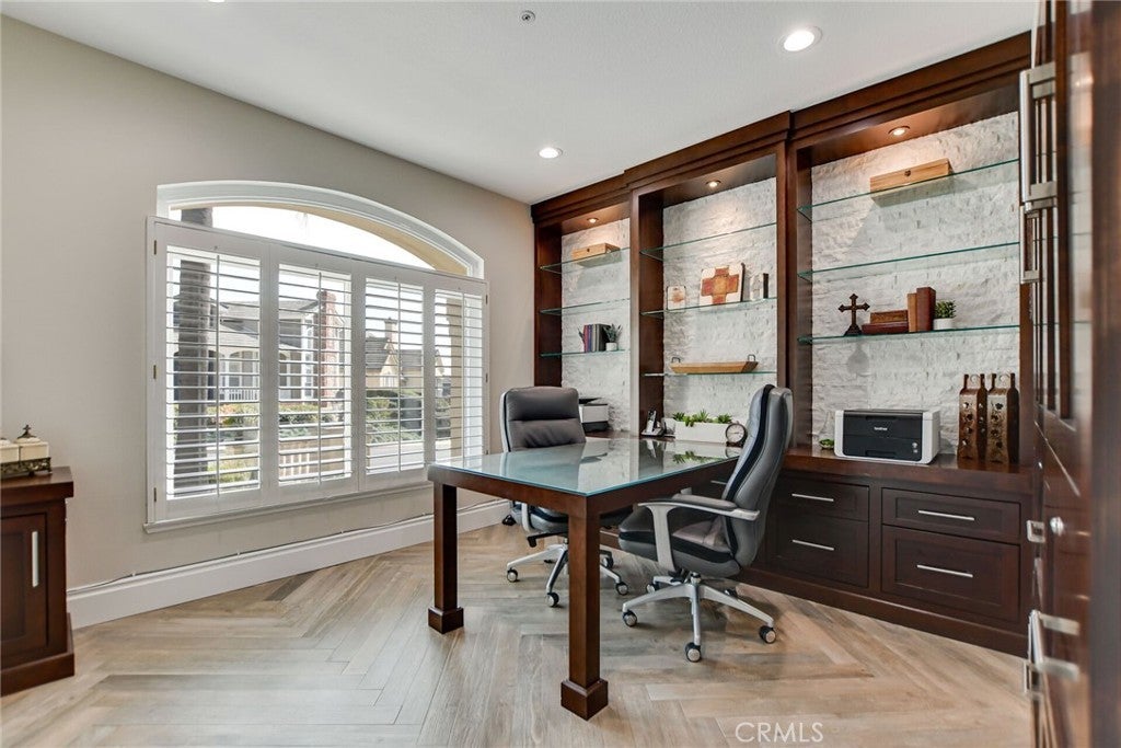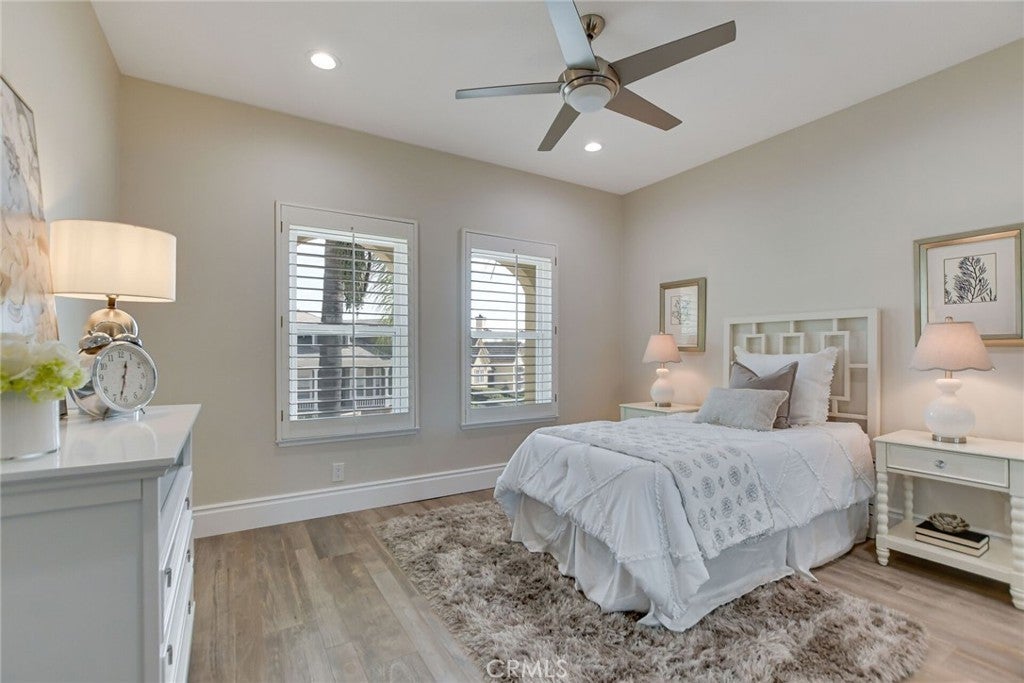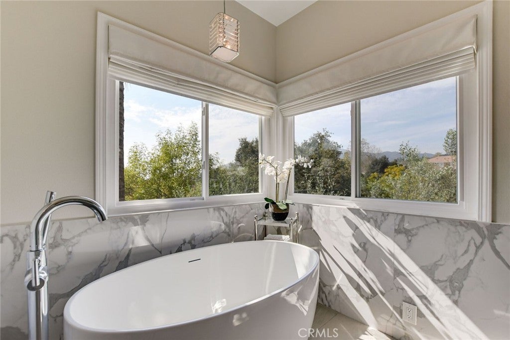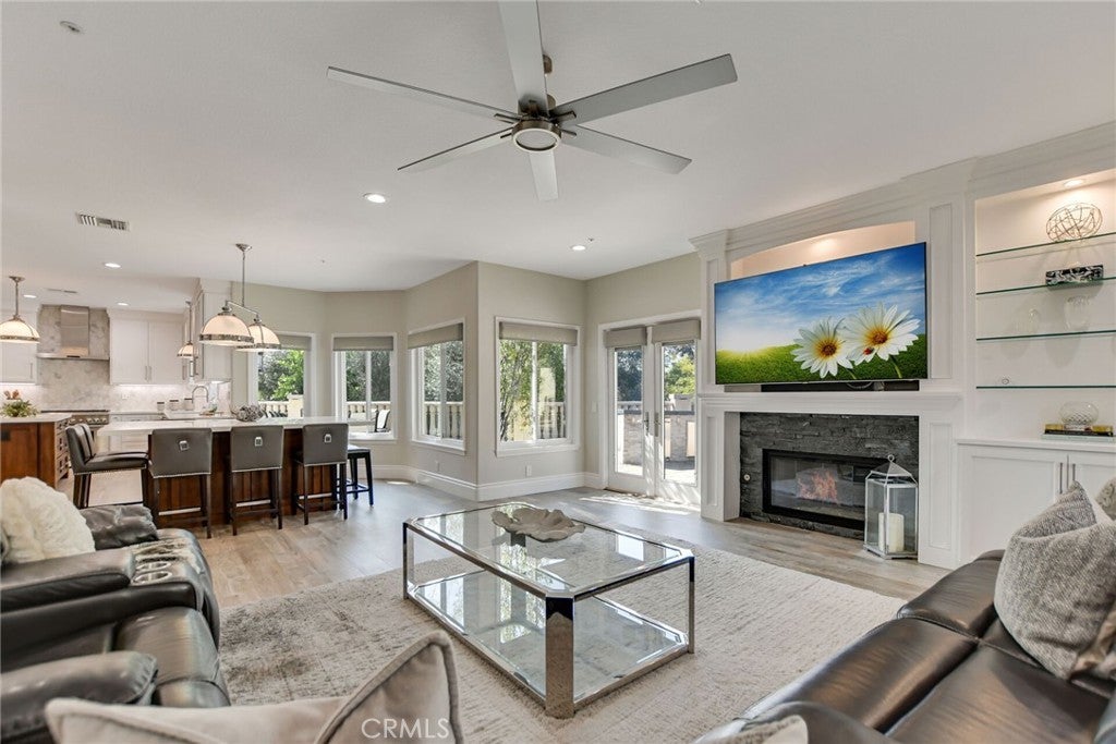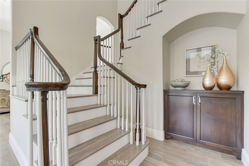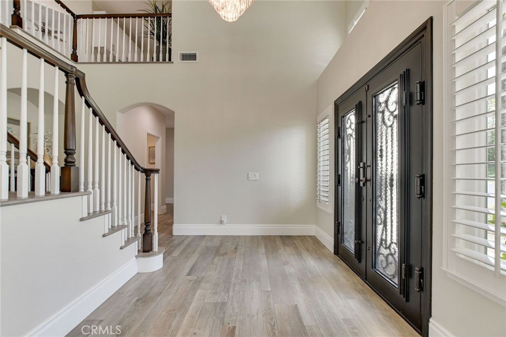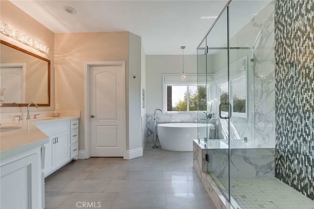 Welcome to an extraordinary residence in the highly coveted gated community of Rancho Esperanza Estates in North La Verne, an intimate enclave of just 18 private homes nestled within a quiet cul-de-sac. Offering both privacy and prestige, this beautifully reimagined estate blends timeless elegance with modern sophistication and showcases true pride of ownership throughout. From the moment you arrive, this home’s impressive curb appeal sets the tone with manicured landscaping & mature trees that perfectly complements the architecture. Step inside to discover over 3,714 square feet of beautifully remodeled living space where contemporary design meets comfort. The open-concept floor plan features gorgeous wood-like tile flooring, tall ceilings, and expansive windows that fill the home with natural light and create a warm, welcoming atmosphere. At the heart of the home is a spectacular chef’s kitchen designed for both everyday living and entertaining. This stunning space features two kitchen islands, (one of which seats up to 10 guests), elegant pendant lighting, a walk-in pantry, and premium built-in appliances including a built-in refrigerator and dual ovens. Your kitchen flows seamlessly into the spacious family room, where a cozy gas fireplace, custom built-ins, and a stylish entertainer’s bar complete with a wine refrigerator and a sink create the ultimate environment for hosting and relaxation. Your main level also features a versatile bedroom currently being used as a private office along with a beautifully updated full bathroom with walk-in shower, ideal for guests or multi-generational living. Upstairs, the luxurious primary suite offers a peaceful retreat with soaring ceilings, plantation shutters, tranquil treetop views, and a generous sized walk-in closet. The spa-inspired primary bathroom features a freestanding soaking tub, dual vanities, and an oversized walk-in shower. Three additional spacious bedrooms and two well-appointed bathrooms complete the upper level. Step outside to your private resort-style backyard featuring a custom saltwater pool and spa, multiple conversation areas, a grand fire pit lounge, and an oversized outdoor BBQ area with seating for 10+ guests. This incredible outdoor space captures the best of Southern California indoor-outdoor living and is perfect for entertaining. A rare opportunity to own one of North La Verne’s most desirable homes in one of its most exclusive gated communities. This home is truly a must see!