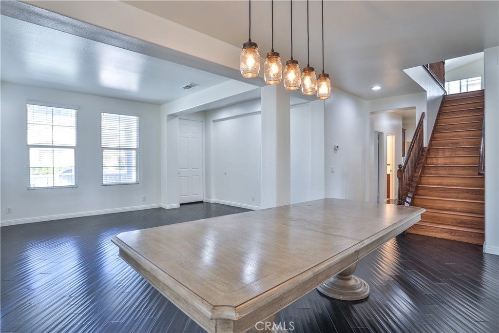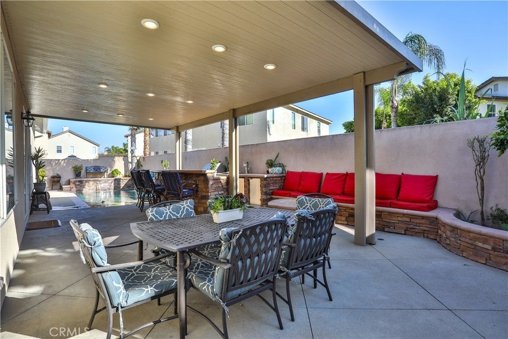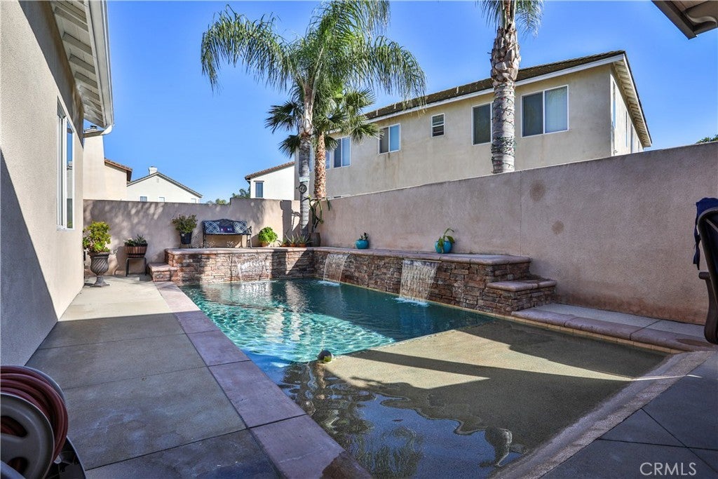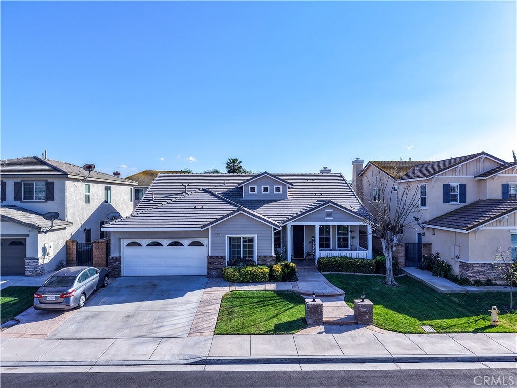 **STUNNING 3,210 SQ FT EASTVALE POOL HOME OFFERS SPACE, COMFORT AND INCREDIBLE INDOOR-OUTDOOR LIVING** Featuring 5 bedrooms and 3 bathrooms, the flexible, open floor plan is perfect for growing families or multi-generational living. The heart of the home is the beautifully upgraded kitchen with Viking appliances, quartz countertops, and a large kitchen island that opens to the family room with cozy fireplace—creating the perfect space for gathering and entertaining. Formal living and dining rooms add even more room for hosting friends and family. Four bedrooms and two bathrooms are conveniently located downstairs, along with an indoor laundry room. Upstairs you'll find a large, private bedroom with a Jack & Jill bathroom leading to a spacious bonus room and a separate office space—ideal for working from home, a media room, or guest suite. Step outside to your own backyard retreat featuring a sparkling pool with decorative waterfalls, a large Alumawood covered patio with recessed lighting, outdoor fire pit, and custom built-in BBQ with bar style seating—perfect for relaxing or entertaining year-round. Move-in ready and located on a Cul-De-Sac in close proximity to Award Wining Schools, Shopping , Restaurants, Parks and much more, this home truly has it all.