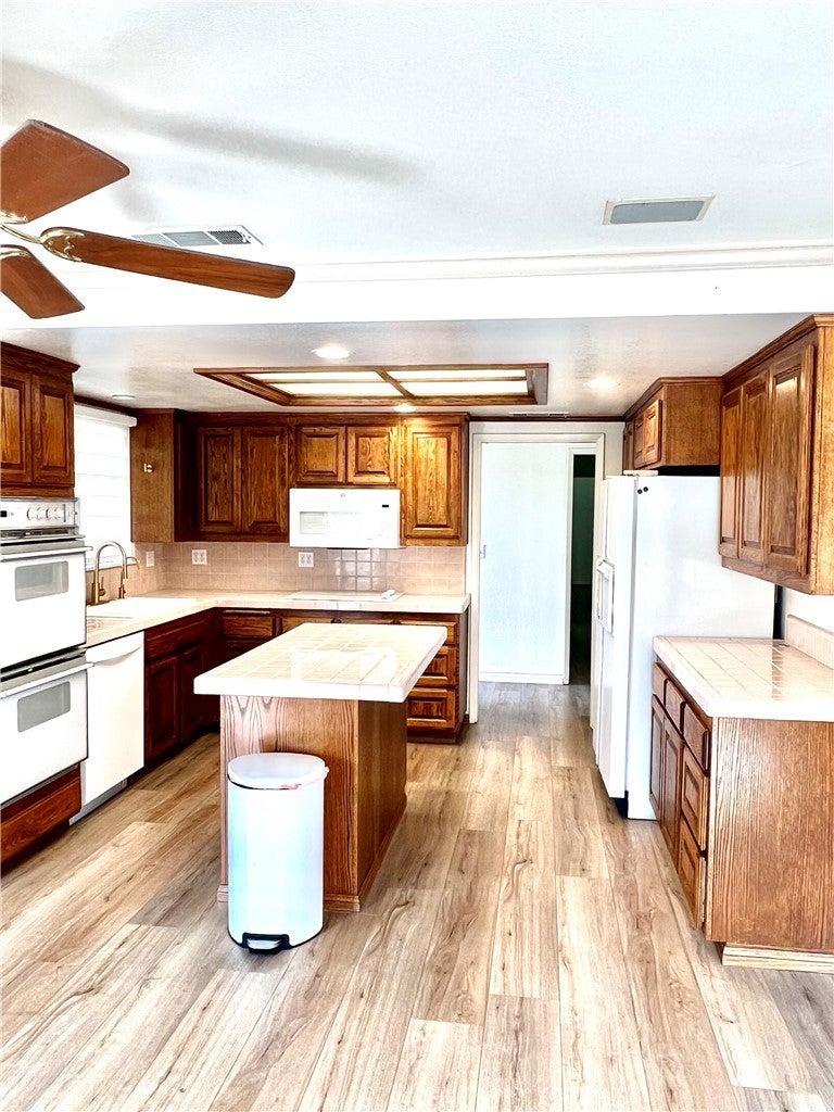 • Interior FeaturesBreakfast Bar, Ceiling Fan(s), Open Floorplan, Tile Counters, Unfurnished, All Bedrooms Down