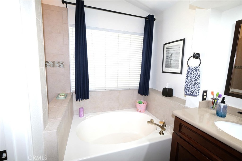 Pride of ownership shines throughout this beautifully maintained home—better than a flip! Features include a front courtyard, sealed oak floor entry, new tile flooring downstairs, laminate tile stairs with wood bannister, bright interior windows, new baseboards, newer curtains and light fixtures T/O. Crown molding accents the family room. The upgraded kitchen offers gray quartz countertops, stainless steel sink, newer appliances, and new cabinets with self-closing drawers plus pull-out pantry storage, plus cozy dining alcove with view of the yard. Major Home comfort systems updated includes newer AC, heater, with ducting, and water heater. Bathrooms feature newer low-flow toilets and an updated primary bath with new shower, vanity mirror and tile. Exterior highlights include RV parking, a 3-car garage, aluminum covered patio with fans and lights, exterior window awnings and 20+ rose garden and an avacado tree all on automatic sprinklers.