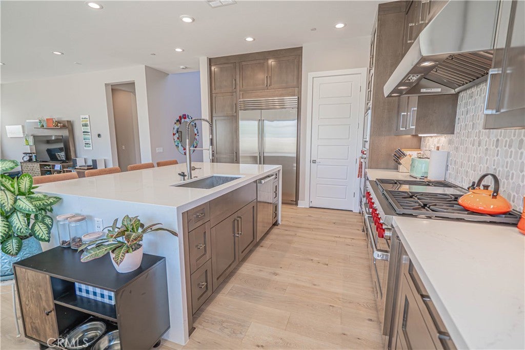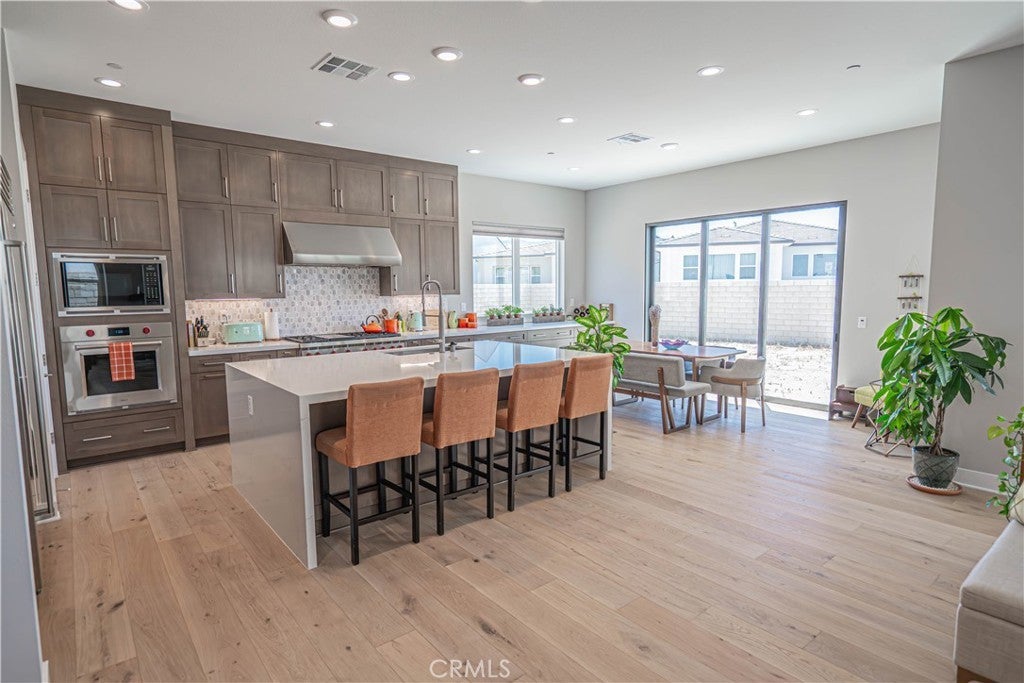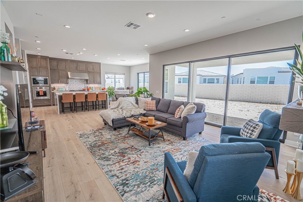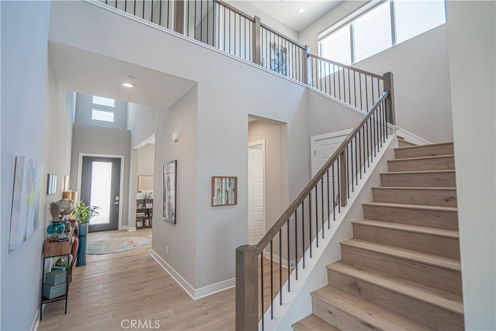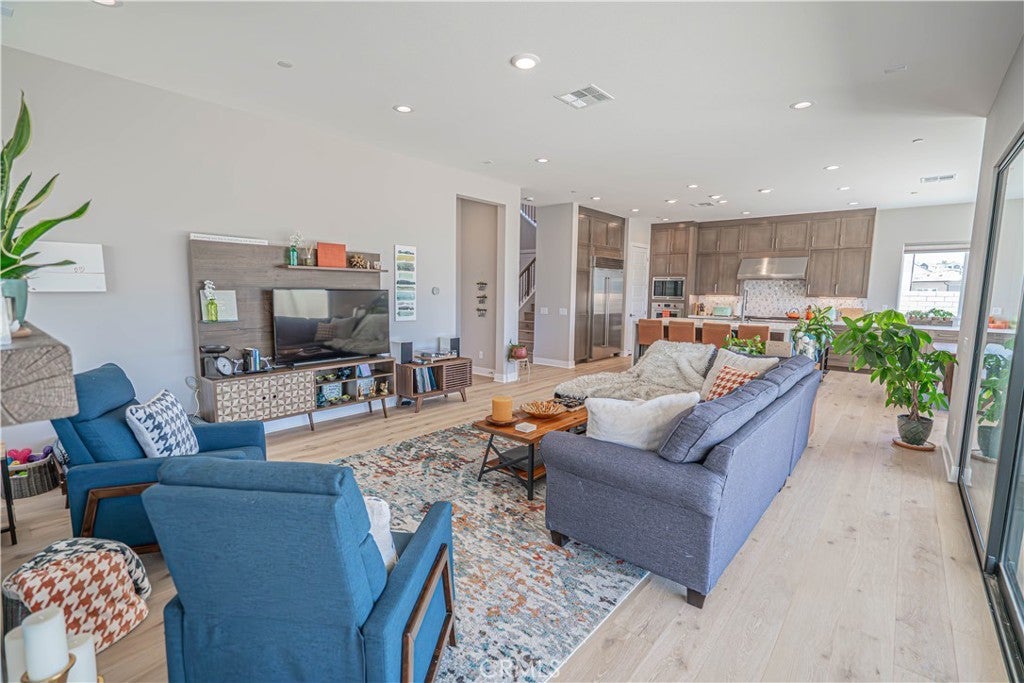 Welcome to 27871 Screenplay Place—an exquisite Toll Brothers Merle model located in the highly sought-after Skylar neighborhood of Valencia’s FivePoint community. Built in 2024, this luxury residence is BETTER THAN NEW and combines modern elegance with thoughtful upgrades, offering 5 spacious bedrooms, 4.5 baths, and 3,903 square feet of finely crafted living space on a generous 7,500 sq ft lot. Just minutes from the 5 Freeway and Valencia Town Center’s Westfield Mall, this home also sits within the award-winning Newhall School District, making it an ideal location for families and commuters alike. Step inside to real hardwood floors flowing throughout the home, anchored by a warm gas fireplace in the expansive great room. The chef’s kitchen is a true showstopper, featuring upgraded cabinetry, dual sliding glass doors that open to the backyard, and top-of-the-line appliances—including a 48" Sub-Zero refrigerator/freezer, a 42" 6-burner Wolf gas range with oven, and an additional wall-mounted Wolf oven. Luxury continues with a zoned dual-unit HVAC system enhanced by a whole-home AprilAire steam humidifier, promoting better respiratory health and preserving your hardwood floors. The LifeSource water filtration system ensures fresh, filtered water throughout the home. Fresh new landscaping completed in February 2026. A spacious 3-car tandem garage includes an EV charger, providing both practicality and forward-thinking convenience. From its upgraded features to its premium location, 27871 Screenplay Place offers a rare opportunity to own a truly turnkey home in one of Valencia’s most dynamic communities.