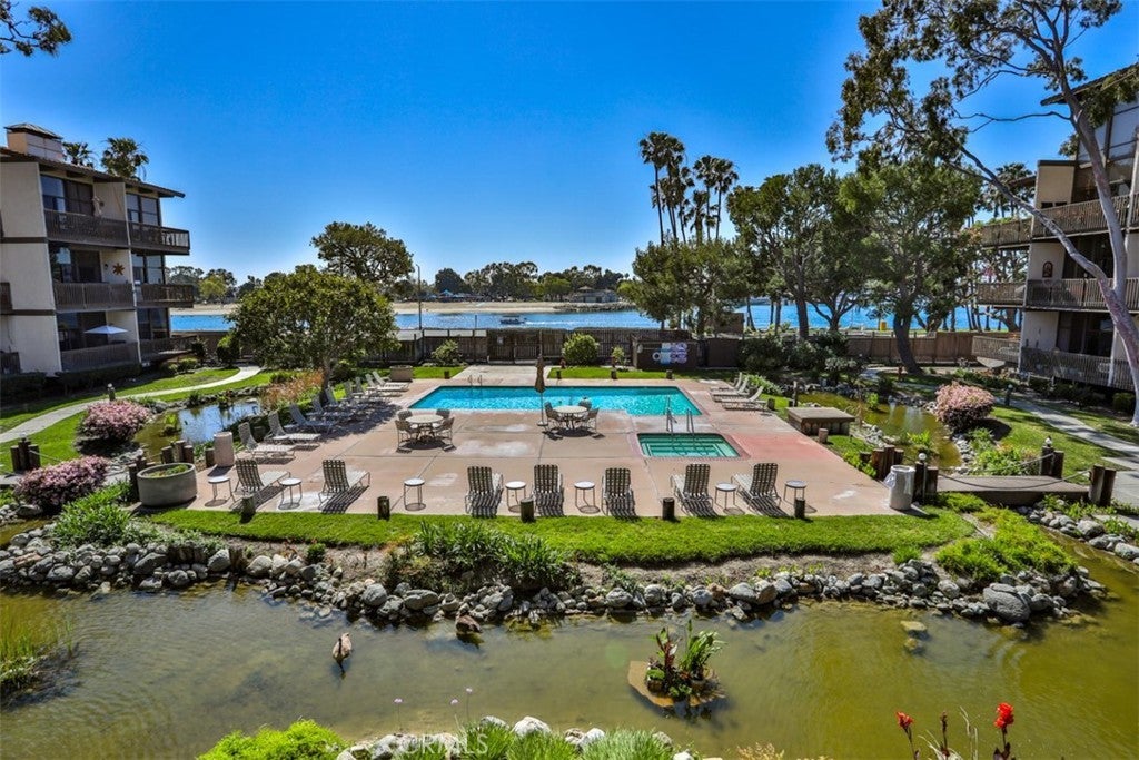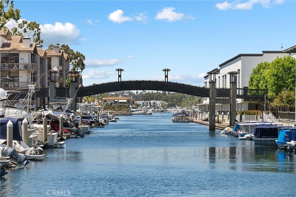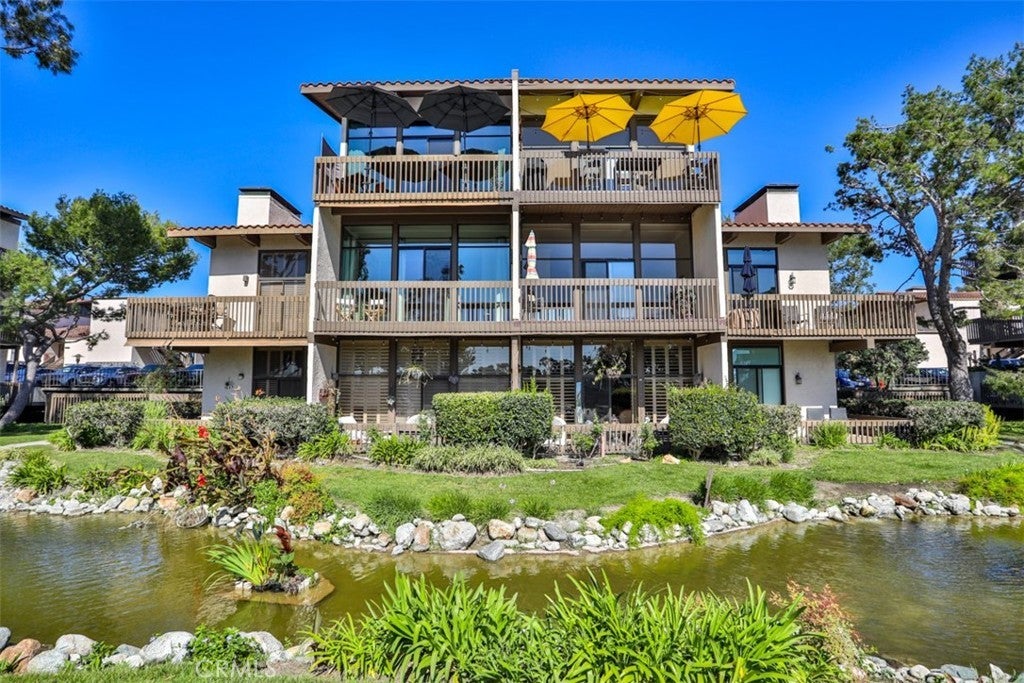 This GORGEOUS WATERFRONT, beautifully upgraded condo offers over 1,800 square feet of stylish living with serene bay views. The lower level features a private guest en-suite, convenient laundry area, and an exceptional primary suite with custom upholstered walls, custom bathroom finishes, multiple closets including a walk-in, and peaceful water views that create a true sense of escape. Upstairs, the bright living room opens to stunning views and flows seamlessly into the elevated dining area with a custom built-in banquette, perfect for entertaining. The upgraded kitchen features high-end appliances and bar seating, while a renovated bathroom adds convenience for guests. A third bedroom near the upper entry provides additional comfort and flexibility. Marina Pacifica offers a true resort-style lifestyle, featuring six pools and spas, three tranquil lagoons, a clubhouse, and a fitness center, all set within beautifully landscaped waterfront grounds. A private footbridge provides direct access to shopping, restaurants, a movie theater, and Duffy boat rentals. Ideally located near Gelsons, 2nd & PCH, the local farmers market, the beach, and Naples Island. This residence looks out to Marine Stadium, home to the rowing and canoe sprint competitions for the 2028 Olympic Games, making it perfectly positioned to enjoy the excitement of this world class event. With two parking spaces, two private balconies, thoughtful custom details throughout, and breathtaking sunsets, this home offers the perfect blend of comfort, style, and coastal living.