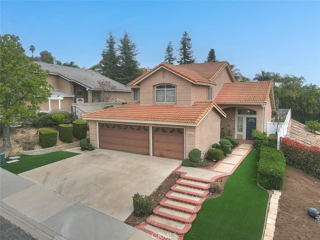 Located in a quiet hillside neighborhood of Chino Hills, this 5-bedroom, 3-bathroom home (1 bedroom 1 bathroom downstairs), 3-car attached garage. offers approximately 2,491 sqft of living space on an 8,886 sqft large lot. Upon entry, you are welcomed by high ceilings and abundant natural light, creating a bright and open living space. The living room features a fireplace and flows into the formal dining area, conveniently connected to the kitchen. The upgraded kitchen offers granite countertops, newer cabinets, stainless-steel appliances, and opens to the family room, with direct access to the back yard —ideal for everyday living and entertaining. The main level includes one bedroom and one full bathroom, perfect for guests or extended family. Upstairs features four additional bedrooms and two bathrooms. The primary suite offers high ceilings and a private retreat area, ideal for a home office or relaxation space. Primary room also has access to private large balcony. Primary bathroom was totally upgraded. Three additional bedrooms complete the upper level. The backyard is designed for both relaxation and enjoyment, featuring a pool & spa, and a variety of mature fruit trees, including orange, lemon, pear, loquat, pomegranate, persimmon, and dragon fruit. Situated in a peaceful and elevated location, this home offers a quiet setting while remaining close to local amenities.