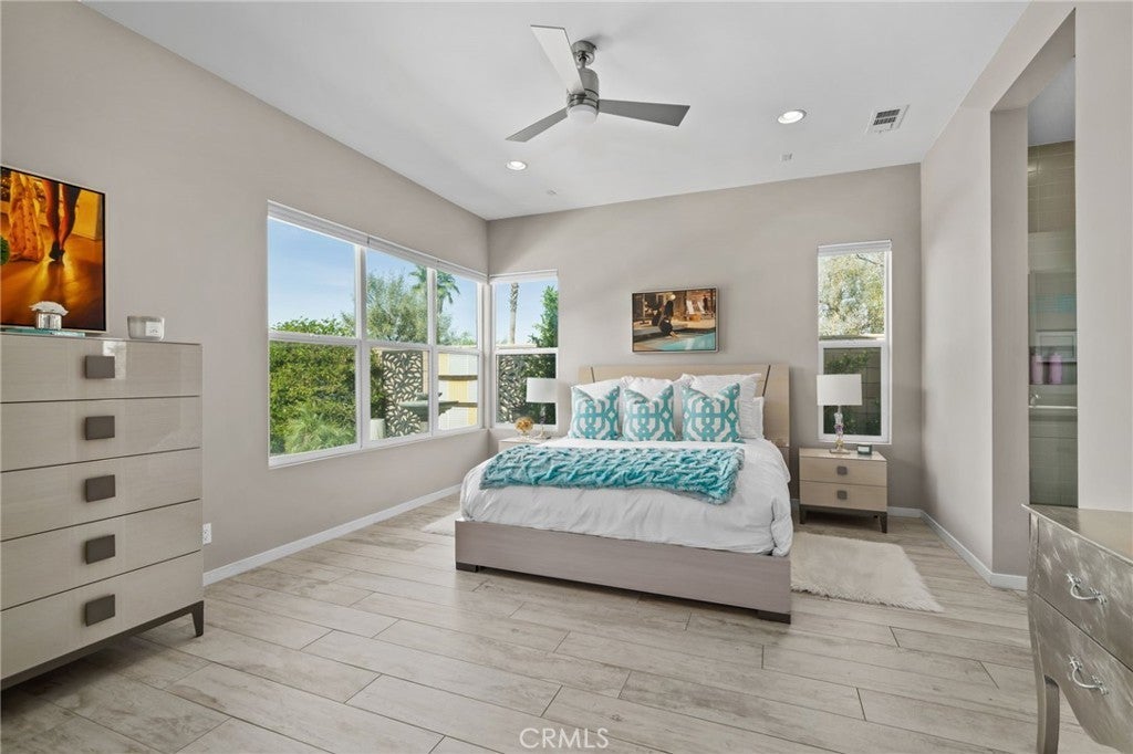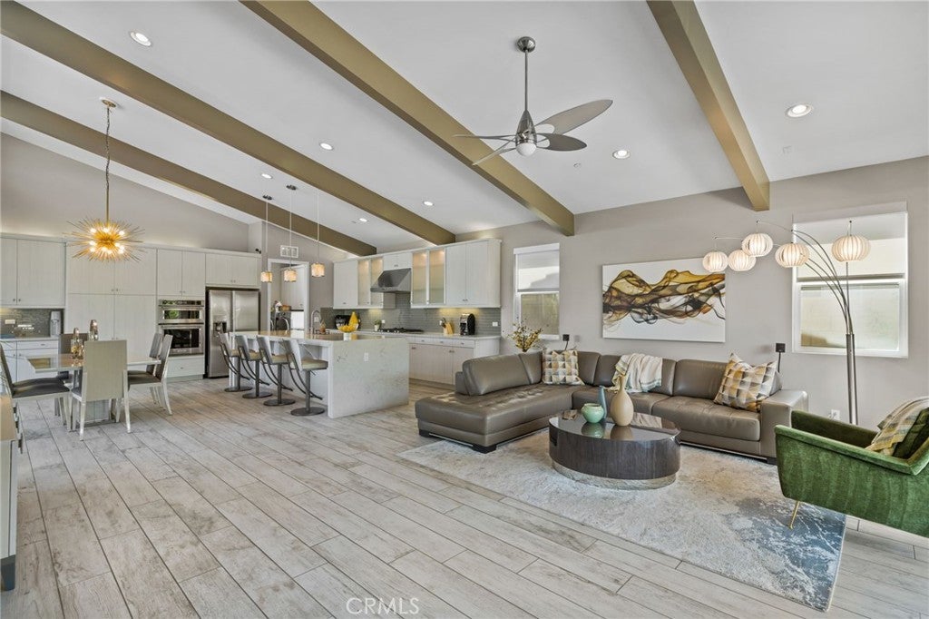 Welcome to your private desert retreat located in the highly desirable Escena Golf Club community in Palm Springs. This beautifully designed 2 bedroom + office/den, 2.25 bathroom home offers the perfect blend of modern comfort and effortless indoor-outdoor living. Step inside to an open-concept floor plan filled with natural light, soaring ceilings with exposed beams, and clean contemporary finishes throughout. The spacious kitchen features sleek cabinetry, a large center island with seating, and seamless flow into the dining and living areas—ideal for both everyday living and entertaining. The primary suite offers a serene escape with a spa-inspired bathroom, dual vanities, and a walk-in shower. A versatile office/den provides the perfect space for working from home, a guest room, or creative studio. Designed for true Palm Springs living, the backyard is a private oasis complete with a sparkling pool and spa, multiple lounge areas, and lush landscaping—perfect for relaxing or hosting under the desert sky. Located within Escena Golf Club, residents enjoy a beautifully maintained community centered around a stunning Nicklaus Design golf course, with convenient access to dining, recreation, and all that Palm Springs has to offer.