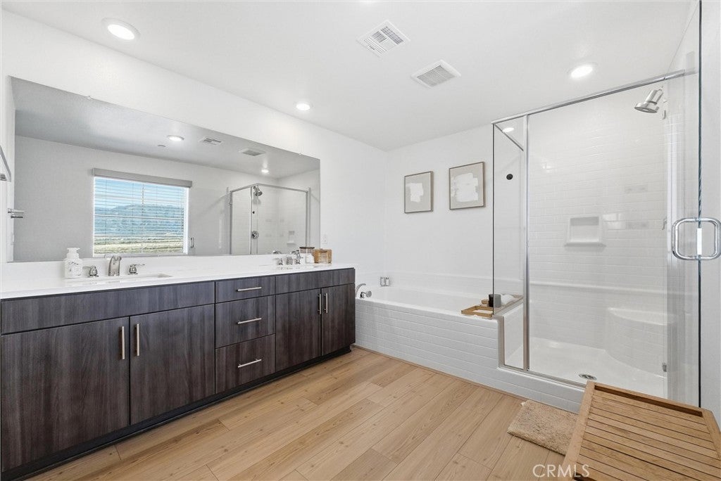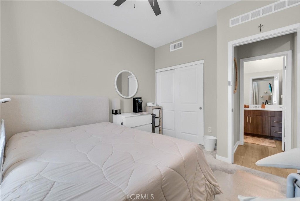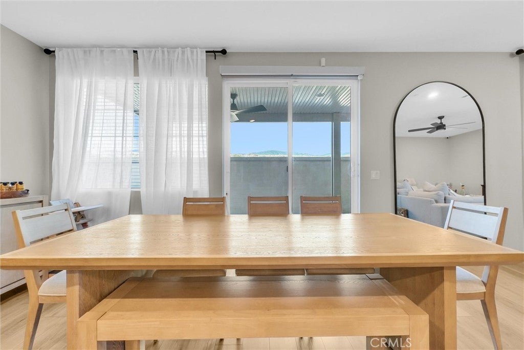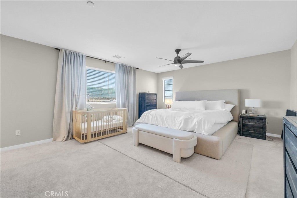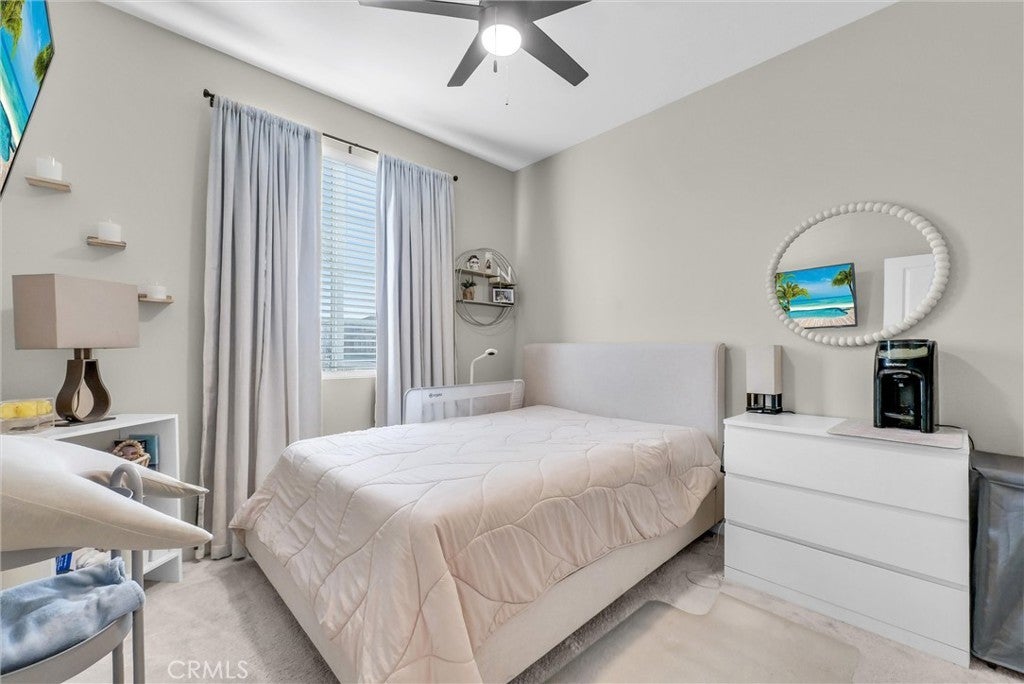 Located in the desirable River Ranch community of Rialto, this well-maintained two-story home offers approximately 2,700 square feet of living space with 4 bedrooms and 3 bathrooms, including a main-level bedroom and full bath. The open-concept layout connects the kitchen, dining area, and living space, ideal for both everyday living and entertaining. The kitchen features a center island, quartz countertops, and modern appliances. The property includes numerous upgrades throughout. The front yard features an extended driveway, artificial turf, enhanced landscaping, and expanded entry stairs. The backyard is designed for outdoor enjoyment with landscaping, a covered patio, fully electric patio cover, and lighting throughout. The garage has been upgraded with epoxy flooring. Upstairs includes a versatile loft, additional bedrooms, and a spacious primary suite with en-suite bathroom and walk-in closet. Additional features include an upstairs laundry room, recessed lighting, central heating and air, and a leased solar energy system. Leased solar system in place to support energy efficiency; buyer to assume lease. The home is situated on a low-maintenance lot within a planned community offering amenities such as a pool, spa, parks, and recreational areas. Conveniently located near shopping, dining, and with easy access to major freeways.