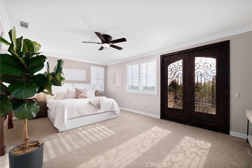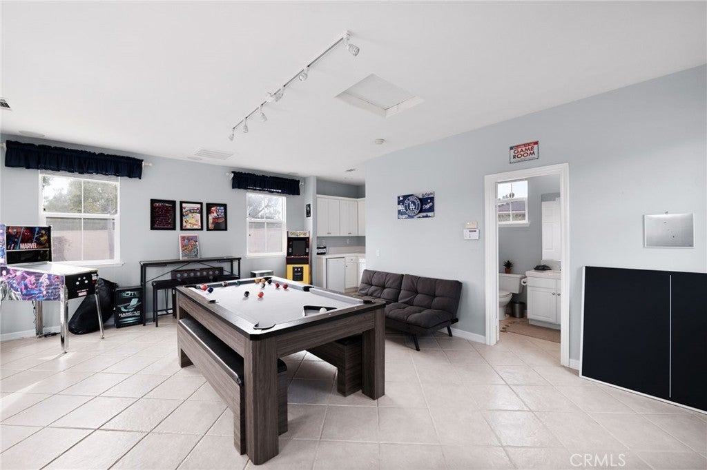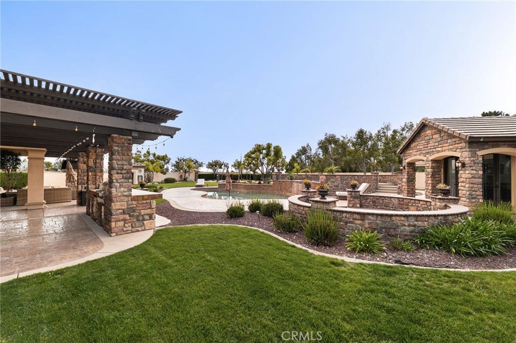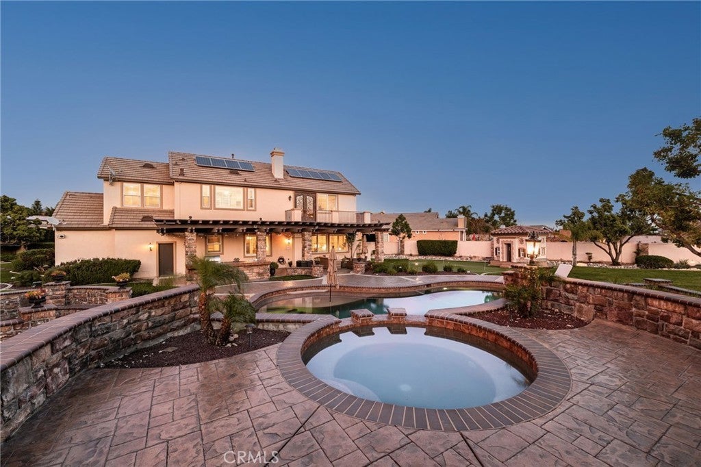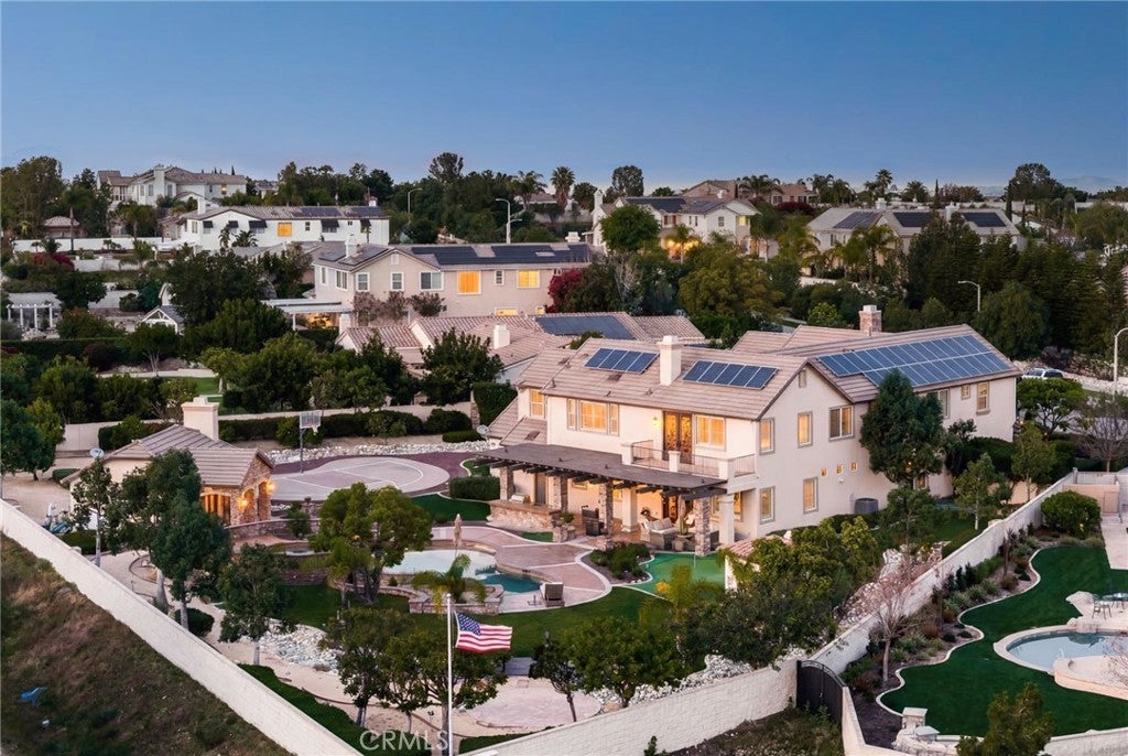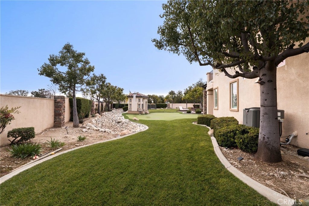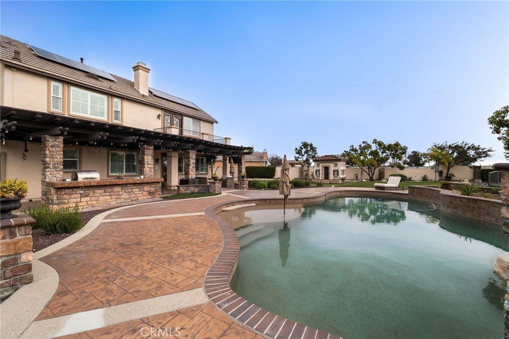 Welcome to an extraordinary estate in the prestigious Carriage Estates community of Rancho Cucamonga, set on nearly one acre of beautifully curated grounds and located within one of the city’s most highly sought-after, top-rated school districts. Spanning approximately 6,000 square feet, this exceptional residence offers six spacious bedrooms and six and a half bathrooms, with every bedroom thoughtfully designed as a private en-suite—perfect for elevated comfort and multigenerational living. The home is further enhanced by owned, free and clear solar, delivering long-term energy efficiency and cost savings. From the moment you arrive, the home makes a lasting impression with a gated auto courtyard, a four-car garage, and a stunning stained and stamped concrete driveway. Inside, a grand foyer opens to an elegant formal living room and a refined executive office or retreat, setting the tone for the sophistication found throughout. The heart of the home is a beautifully updated kitchen featuring premium finishes, seamlessly connected to a warm and inviting great room and breakfast nook. A butler’s pantry leads to the formal dining room, creating an ideal layout for both everyday living and upscale entertaining. A private downstairs bedroom with its own en-suite bath further enhances the home’s versatility. Upstairs, the expansive primary suite is a true sanctuary, complete with a private retreat, balcony showcasing breathtaking mountain and city light views, dual walk-in closets, and a spa-inspired bathroom featuring a soaking tub, oversized shower, dual vanities with bidet toilets, and an additional flex space ideal for a gym, lounge, or secure room. Step outside to your own private resort. The backyard is designed for unforgettable gatherings, featuring a sparkling pool, sunken fire pit, putting green, basketball court, and a charming children’s playhouse—all surrounded by mature landscaping that offers both beauty and privacy. A detached ADU/pool house provides exceptional flexibility, perfect for guests, extended family, or potential income opportunities. This is a rare opportunity to own a truly grand estate that effortlessly combines luxury, functionality, and lifestyle—offering every space and amenity a modern family could desire.