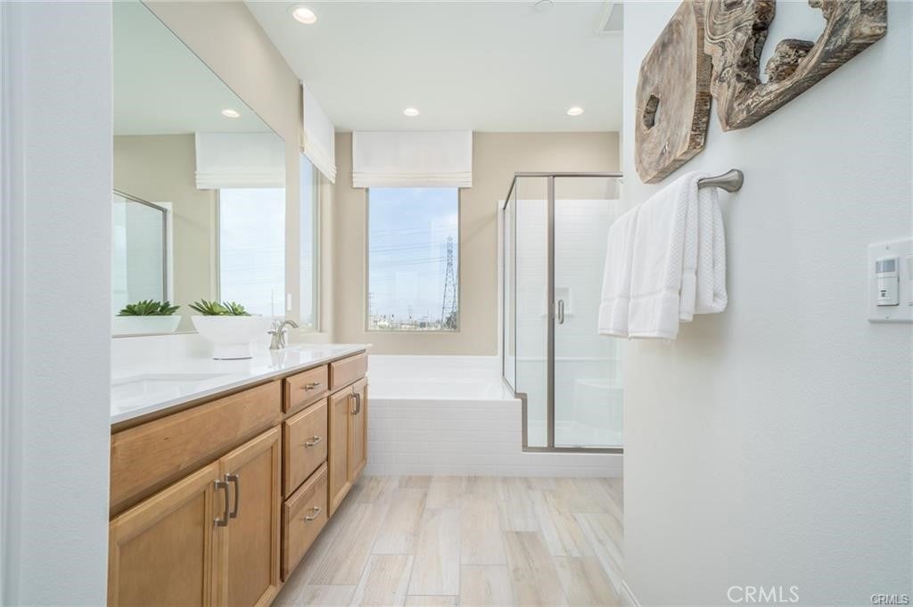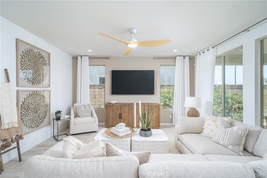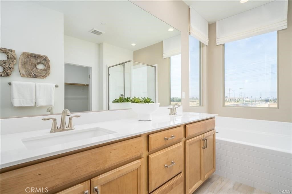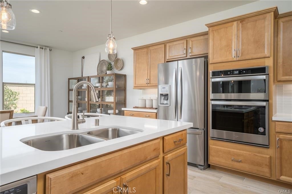Beautiful Pulte Model home built in 2020 in the desired Cascade community in Ontario Ranch. Home has maximum upgrades including: upgraded cabinets, tile flooring, kitchen quartz countertop, backsplash, upgraded bathrooms, front and backyard landscaping with built-in barbeque, and covered patio. Five Bedrooms, Three bathrooms plus Loft. One bedroom and One bath downstairs. Three car tandem garage with outlet for electric vehicle. Unobstructed views with front facing community park, no home behind. Wood shutters, custom draping upstairs and downstairs included. Smart lock, Ring Doorbell Pro, Smart Nest thermostats, Smart home wifi extenders, Smart home connected garage, Ethernet connected rooms with hub, In Wall speakers. The home is conveniently located near shopping, schools and freeway access. Solar at roof top. Earliest move in date 5/2/26. Next showing 4/18/26, please contact agent for appointment.