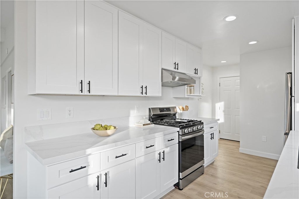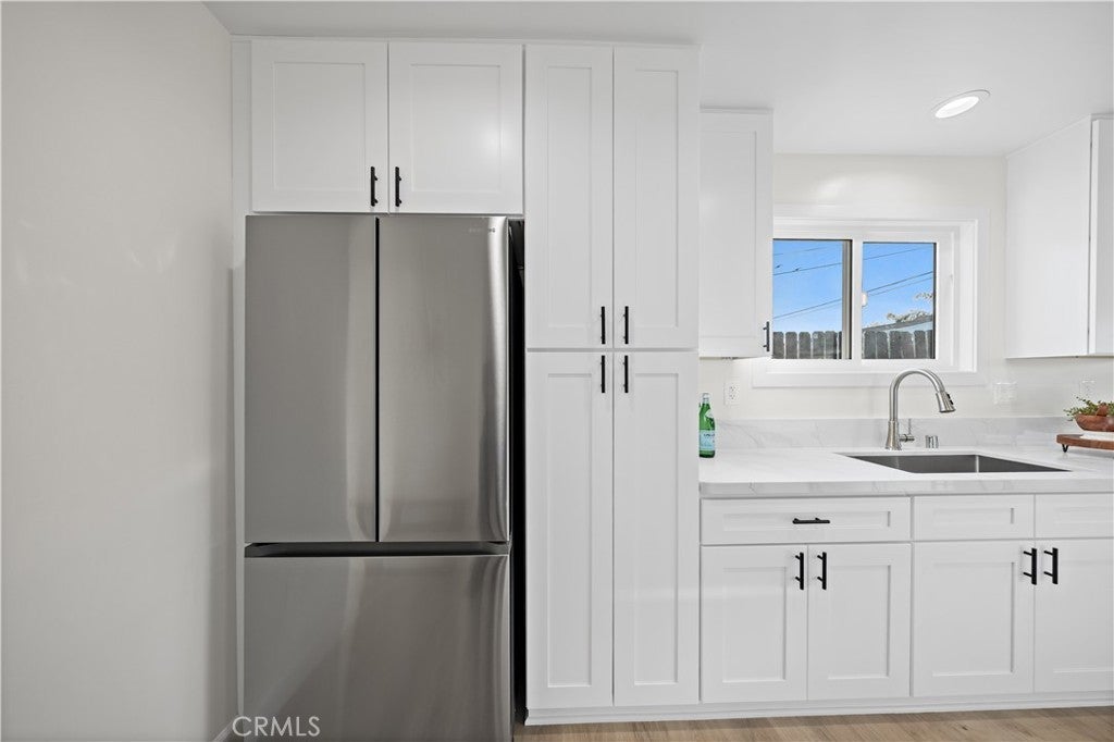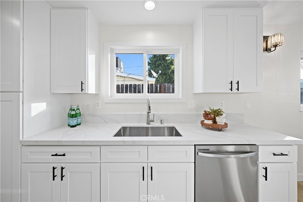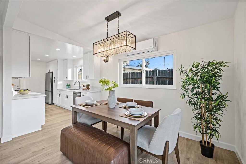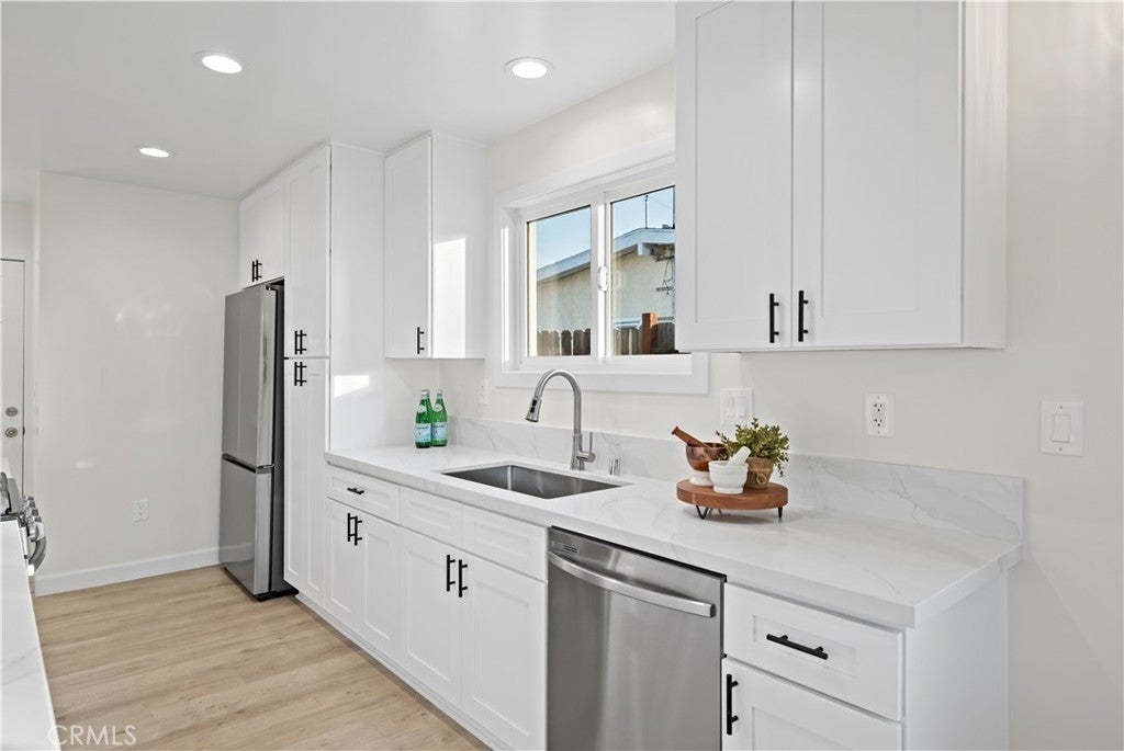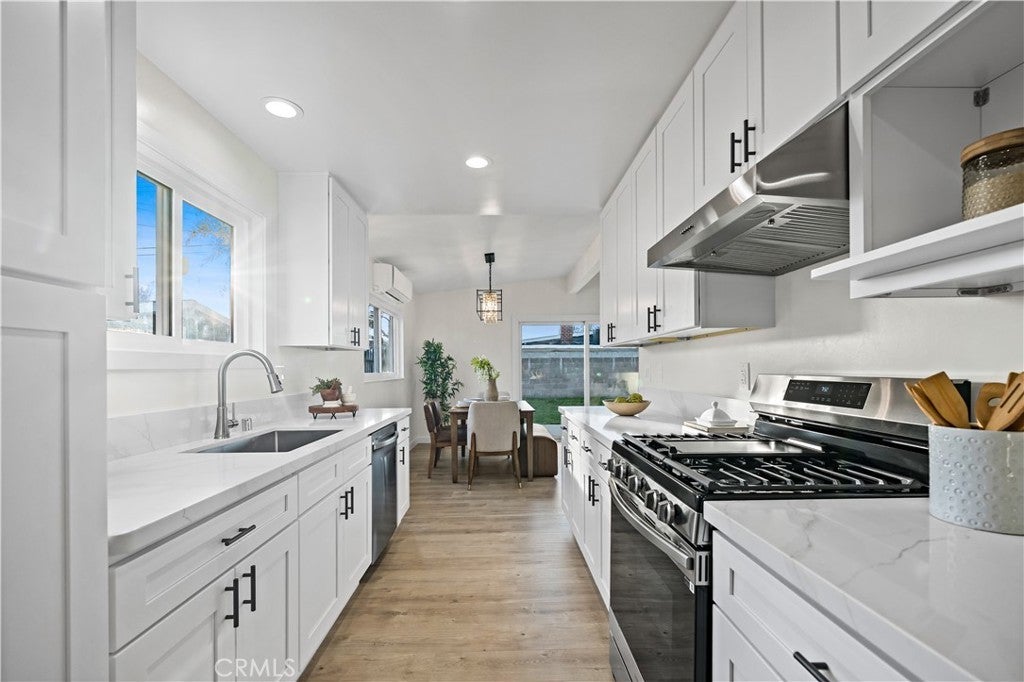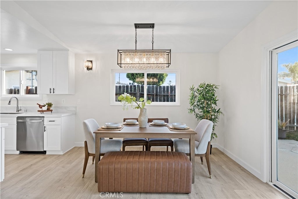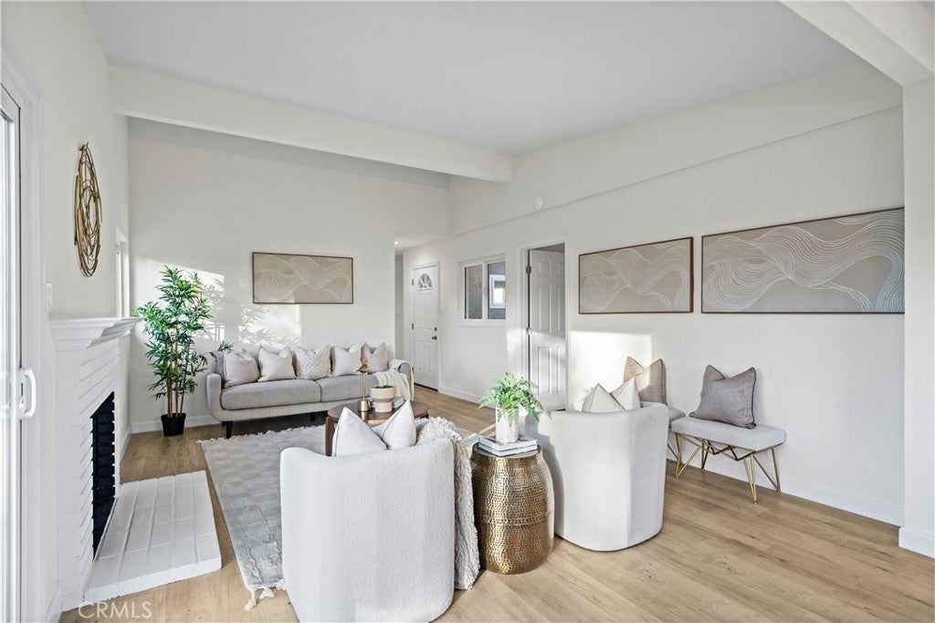 Single-story 4-bedroom, 2-bath home situated on a 6,209 sq. ft. lot with extensive recent upgrades throughout. The interior features an open concept dining and living room area with vaulted ceilings, recessed lighting, a cozy fireplace, and sliding glass door access to the backyard. Recent upgrades include a completely remodeled kitchen with quartz countertops, kitchen sink, shaker-style cabinetry, new stainless-steel appliances, open flow to the dining area, and garage access for a washer and dryer. Both bathrooms were upgraded with a new bathtub or shower stall, commodes, and sinks. With new laminate flooring, new interior and exterior paint, and lighting fixtures throughout this home is move-in ready. Major system upgrades include a new roof, a 200-amp electrical panel, water heater, and a ductless heating and cooling system. The exterior features an extended driveway leading to a 2-car attached garage with direct access, a fenced backyard with a grass area and concrete patio. This property is located in a residential area close to parks, schools, shopping, dining and freeway connections.