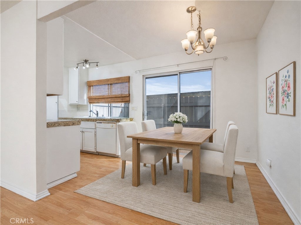 Located in the gated Quail Creek condominium community, this residence offers a convenient setting near local shops, dining, the Claremont Village, and the Claremont Colleges. The community is known for its well-kept grounds and a peaceful atmosphere, with a trickling creek running throughout the property. Inside, the living room is spacious and features laminate flooring. It opens directly to the dining area, creating a comfortable layout for everyday use. Sliding door access leads to a private outdoor patio, providing space for seating or a barbecue. The kitchen offers ample counter space and cabinet storage, along with granite countertops that add a clean and functional finish. The home includes one spacious bedroom and one bathroom. The bathroom is designed with a privacy door separating the shower area from the vanity. Residents of Quail Creek also have access to a large community pool, spa, tennis court, onsite clubhouse, and RV parking, while the surrounding landscaped grounds and flowing creek create a calm and well-maintained environment throughout the community. There is an assigned garage space, and parking for additional vehicles can also be assigned via the HOA. This condo presents an opportunity for low-maintenance living in a well located and quiet community. Just minutes from the downtown Claremont Village shops, restaurants, and entertainment.