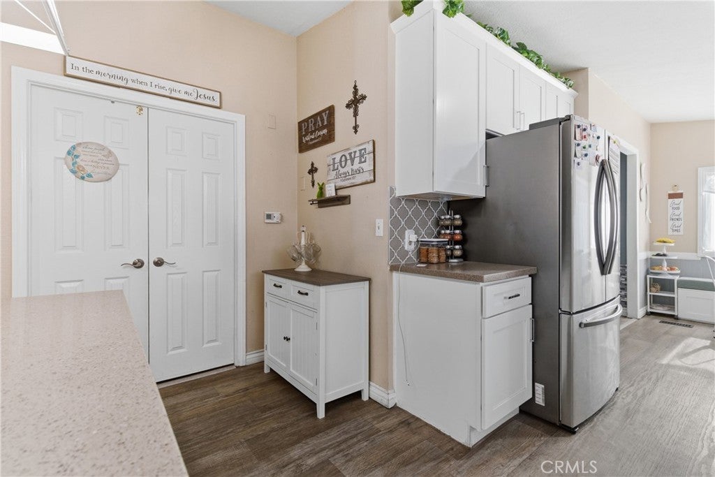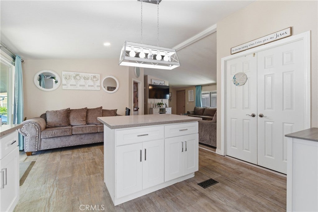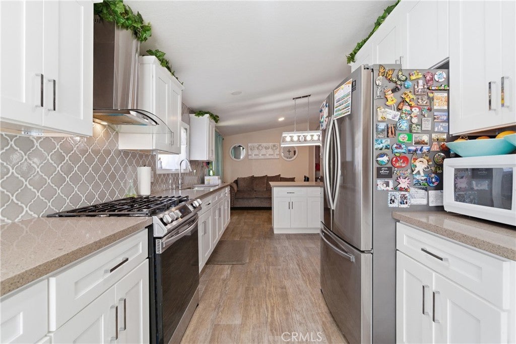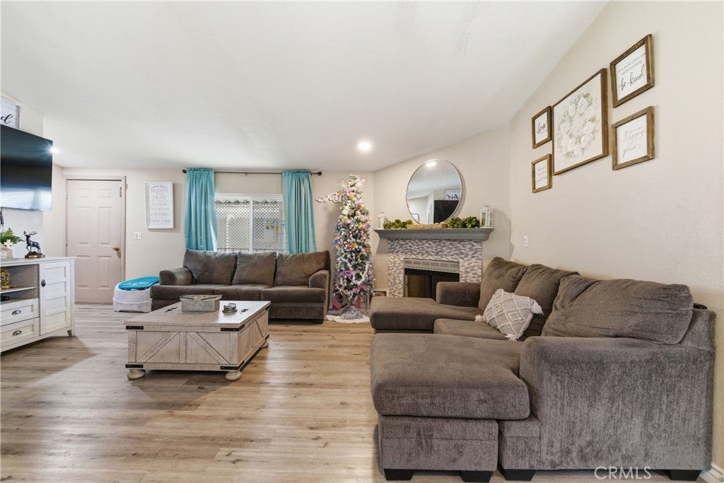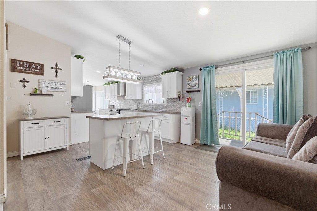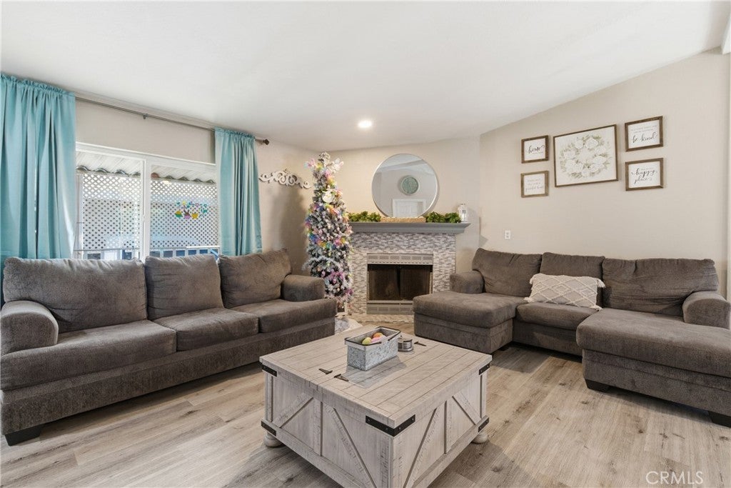 Modern 4 bedroom, 2 bath home with an upgraded, calming design and a spacious open layout perfect for everyday living and entertaining. This beautiful home features a custom kitchen with a breakfast nook, large kitchen island, and upgraded vinyl plank flooring throughout. Enjoy the comfort of a cozy fireplace for cold nights and ice cold air conditioning for warm California days. Step outside to a deck, patio, and large yard space with plenty of room for family gatherings, kids, pets, or simply relaxing. There’s also plenty of storage and convenient 3 car covered carport parking. The community offers resort style amenities including a pool, spa, rec center, fitness gym, children’s playground, tot lot, and 24 hour security. With easy park qualifying and space for the whole family, this home offers both comfort and convenience. Home has been well maintained with annual maintenance.