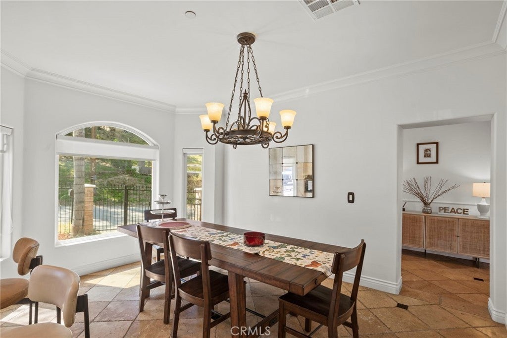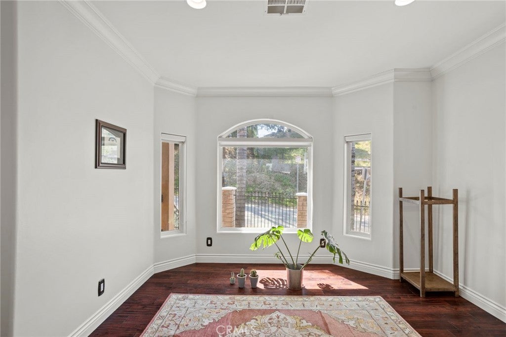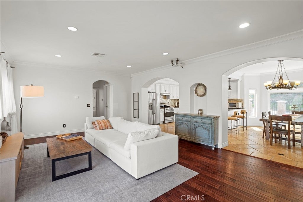 Nestled in the scenic foothills of Shadow Hills, this Spanish-style estate blends architectural character with expansive living on nearly an acre of usable land. Featuring 4 bedrooms, 4 bathrooms, and approximately 4,044 square feet, this residence delivers both presence and functionality in a highly sought-after semi-rural setting. From the moment you arrive, the home makes a striking impression with its gated frontage, tile roof, stucco exterior, and mature palm-lined approach. A grand covered entry with arched columns, brick stair detailing, and custom wrought iron double doors sets the tone for the craftsmanship found throughout. Inside, the home showcases rich wood flooring, tile finishes, high ceilings, recessed lighting, and abundant natural light. The thoughtfully designed floor plan offers multiple living and entertaining spaces, including a formal living room with fireplace, private office with sliding barn doors, and a spacious family room that connects seamlessly to the kitchen. The kitchen is designed for both everyday use and entertaining, featuring extensive cabinetry, generous counter space, and a large center island, creating a central gathering point within the home. The primary suite offers a private retreat, complete with ample space and an en-suite bathroom featuring dual vanities, a soaking tub, and separate shower. Additional bedrooms are well-proportioned, ideal for guests, home offices, or multi-generational living. Step outside to nearly an acre of land offering exceptional flexibility. The property provides room for outdoor entertaining, a future pool, ADU potential, equestrian use, or additional parking for RVs and recreational vehicles. The gated layout enhances both privacy and functionality. Additional highlights include a long private driveway, attached garage, and newer 2007 construction, offering a more modern build compared to surrounding homes. Located in the desirable Shadow Hills community, this property offers a rare opportunity to enjoy space, privacy, and lifestyle flexibility while remaining within convenient reach of nearby amenities and major commuter routes. A standout offering for buyers seeking scale, character, and long-term upside in a foothill setting.
