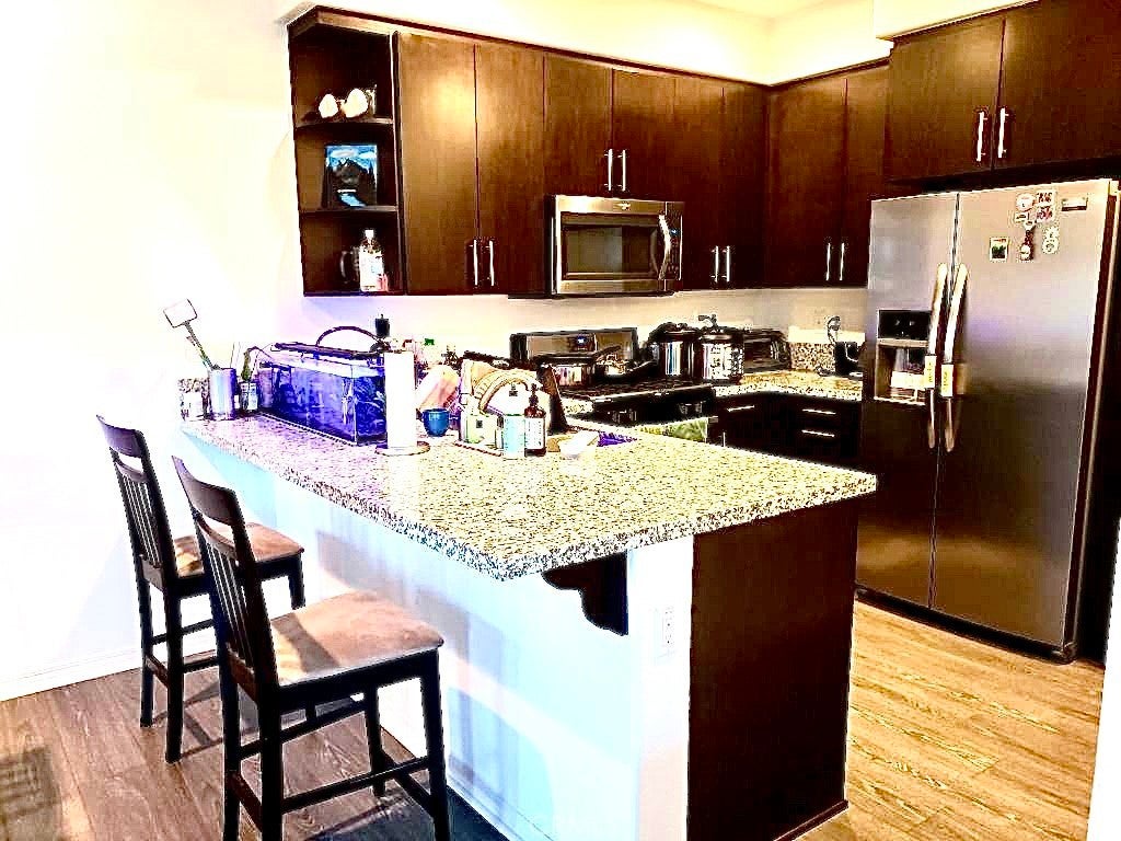 Conveniently located 2 bedrooms and 2.5 baths condo with attached 2 car tandem garage, close to San Gabriel Mission, San Gabriel Valley Medical Center, San Gabriel High School and Alhambra Golf course. Luxury vinyl flooring throughout the living room and kitchen, and carpet in the bedrooms. The HOA includes barbeque area and a park. Lease includes refrigerator, washer, dryer, Dining table with 4 chairs.