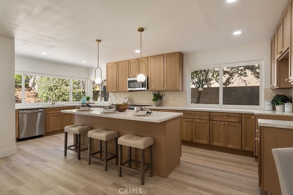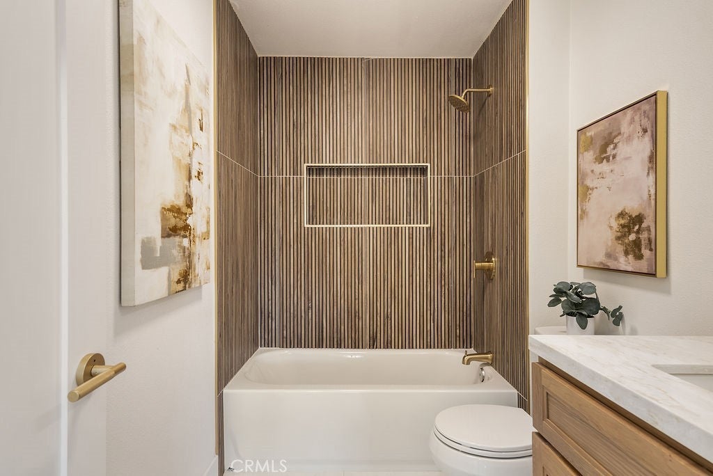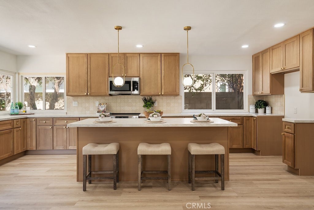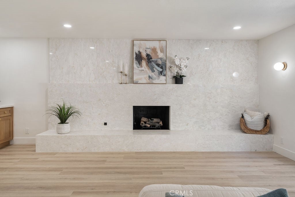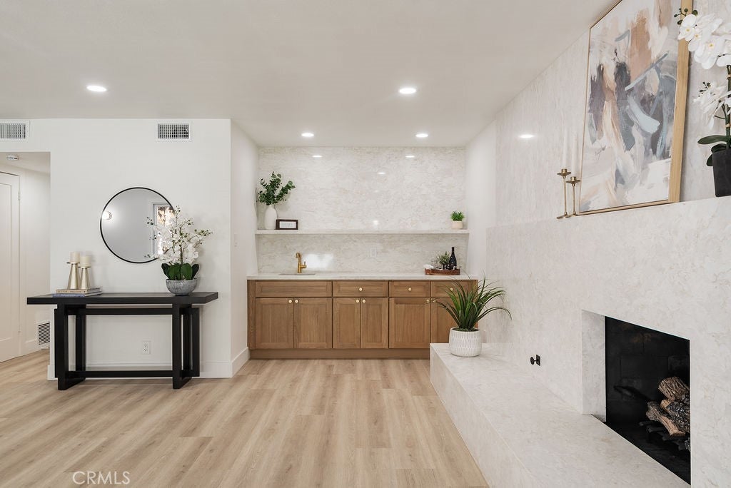 Completely reimagined and extensively remodeled, this stunning 4-bedroom, 3-bathroom home offers approximately 2,261 square feet of modern living on a 7,159 square foot lot in a desirable Diamond Bar neighborhood. Thoughtfully redesigned from top to bottom, the home features a bright, open-concept layout enhanced by wide-plank flooring, recessed lighting, and high-end finishes throughout. The fully remodeled kitchen showcases custom cabinetry, quartz countertops, designer backsplash, and a spacious center island, seamlessly flowing into the main living and dining areas—ideal for both everyday living and entertaining. The living room is anchored by a striking floor-to-ceiling fireplace, creating a sophisticated focal point, while a built-in wet bar adds both style and functionality for hosting. All bathrooms have been beautifully upgraded with spa-inspired finishes, including custom vanities, elegant fixtures, and a designer-tiled shower with built-in niche. The primary suite offers a comfortable retreat with ample space and refined detailing. A large bedroom sits on main floor for your convenience. Every inch of this home has been meticulously updated, delivering a true turnkey experience. Situated on a generous lot, this property combines modern design, quality craftsmanship, and exceptional livability.