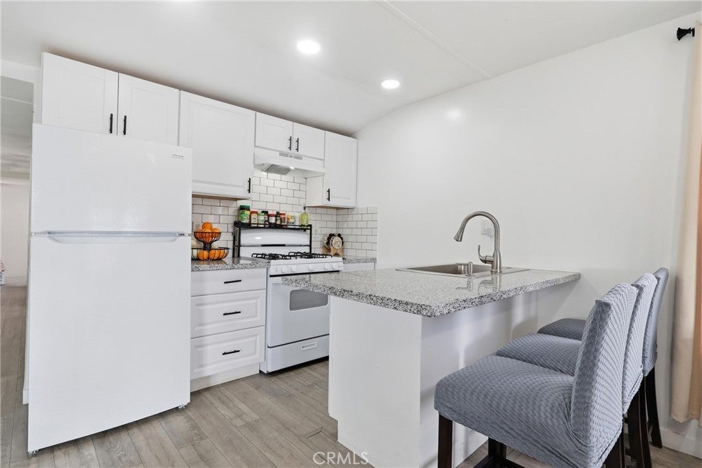 Welcome to Knolls Lodge Mobile Home Family Park! This beautifully remodeled 2-bedroom, 1-bath home is move-in ready and full of modern upgrades. You’re welcomed in by stunning double-pane glass doors that open to a bright and inviting living space with new laminate flooring, fresh paint, recessed lighting, and updated finishes throughout. The kitchen has been completely redone with new cabinets, stone countertops, a breakfast bar, oversized sink, a new stove, and the refrigerator is also included. The bathroom features a stylish tiled walk-in shower, modern vanity, and updated fixtures. You’ll also appreciate the added comfort of new insulation and drywall, newer windows, new interior doors, and mirrored closet doors in both bedrooms. Outside, the home offers fresh paint, new entry steps, plenty of parking, a laundry hookup, and a good-sized storage shed. Located in the award-winning Torrance School District and close to shopping, parks, and freeway access, this home checks all the boxes. The community also offers great amenities like two pools, laundry facilities, a recreation room, and visitor parking. Don’t miss your chance to make this updated and cozy home your own!
