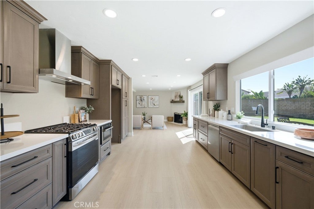 This fully remodeled two story, 4-bedroom, 2.5-bath home offers 2,192 square feet of thoughtfully updated living space with a functional layout designed for both everyday living and entertaining. A double door entry leads into a bright living room that flows seamlessly into the living room and dining area, enhanced by natural light and clean, modern finishes throughout. The remodeled kitchen is a standout with quartz countertops, stainless steel appliances, recessed lighting, and an open connection to the family room. Just off the kitchen, the family room features a cozy fireplace and sliding glass doors that open directly to the backyard creating ideal indoor-outdoor flow. Upstairs, all four bedrooms provide privacy and comfort, including a spacious primary suite with a walk-in closet with built-ins and an updated ¾ bathroom with dual sinks. A fully remodeled hall bathroom serves the additional bedrooms, while a convenient ½ bathroom is located downstairs for guests. Step outside to a generously sized backyard with a large grassy area, patio space, and a built-in fire pit perfect for entertaining, relaxing evenings, or enjoying the Southern California lifestyle. The property also offers foothill views and a sense of openness rarely found in the neighborhood. Additional features include central AC, dual pane windows, fresh interior and exterior paint, and a 3-car attached garage with direct access. Located in a well-established Glendora neighborhood with no HOA, this home offers convenient access to local schools, parks, shopping, and commuter routes.