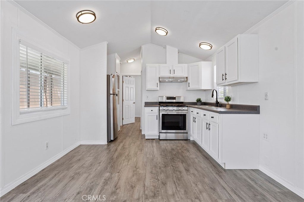 FULLY REMODELED MOBILE HOME - 55+ COMMUNITY BEAUTIFULLY UPDATED 1- 1-BEDROOM, 1- 1-BATHROOM MOBILE HOME LOCATED IN A QUIET AND WELL-MAINTAINED 55 + SENIOR COMMUNITY. THIS COZY HOME FEATURES: A ENTRACE RAMP, BRAND NEW KITCHEN CABINETS, KITCHEN SINK AND FAUCET, NEW STOVE & REFRIGERATOR INCLUDED, NEW LAMINATED WOOD FLOORING THROUGHOUT, UPDATED BATHROOM WITH NEW VANITY, A SECURE BAR IN THE SHOWER. IS READY TO MOVE IN.