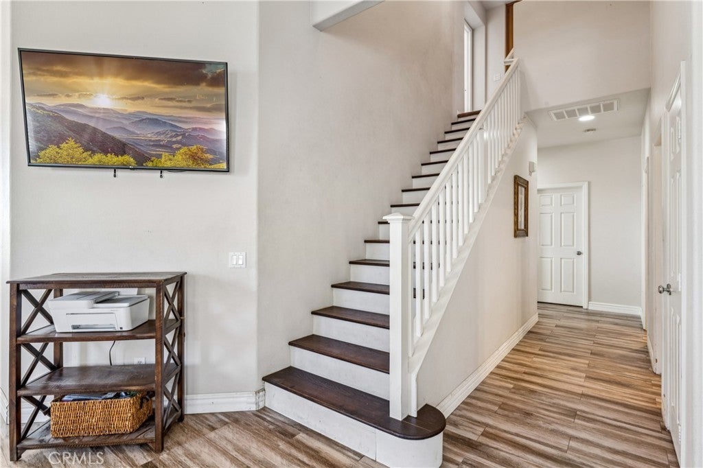 Beautifully maintained 5-bedroom, 3-bath home offering 2,778 sq. ft. of spacious living, built in 2006 and located in a desirable San Jacinto neighborhood. This well-designed floor plan features generous living areas, a functional kitchen with ample cabinetry, and a comfortable layout ideal for both everyday living and entertaining. A convenient downstairs bedroom and full bath make this home perfect for guests or multi-generational living. Upstairs, you’ll find four additional spacious bedrooms, including a relaxing primary suite complete with a large walk-in closet and plenty of room to unwind. Step outside to your private backyard oasis featuring an in-ground pool and spa—perfect for relaxing or entertaining year-round. Enjoy energy savings with solar already in place (lease to transfer). Situated in a quiet neighborhood with no HOA, this home is conveniently located near schools, parks, shopping, and commuter routes.
