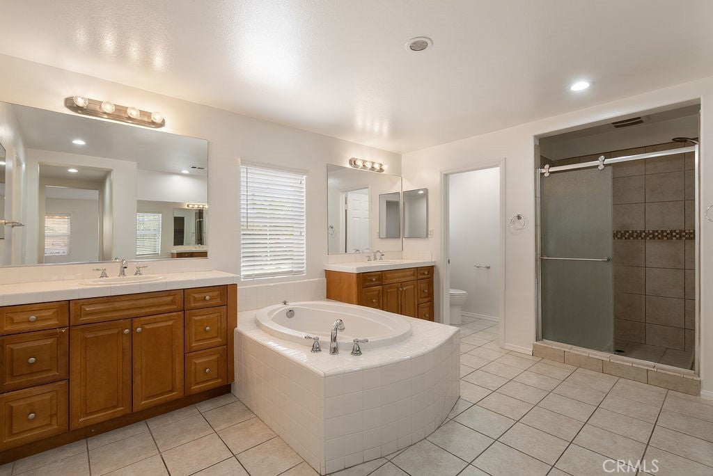 Spacious, Upgraded Home – Largest Model in the Tract! Welcome to 182 Monument Pkwy, a beautifully updated and exceptionally spacious home offering one of the largest floor plans in the neighborhood. Designed for both comfort and flexibility, this property features a highly desirable full primary suite on the first floor with its own bathroom—perfect for multi-generational living, guests, or easily convertible into a private casita (a builder-offered option). Step inside to find fresh interior paint throughout, brand new carpet, and luxury waterproof vinyl flooring, complemented by tile in select areas. The home is filled with natural light and enhanced by updated modern lighting fixtures, creating a warm and inviting atmosphere. The heart of the home is the expansive kitchen, featuring a massive center island, abundant cabinetry, and stainless steel appliances—ideal for entertaining or everyday living. Upstairs, you'll find an additional oversized primary suite with a private balcony, offering a peaceful retreat and scenic views of the open space behind the home. With no rear neighbors, enjoy added privacy and a picturesque backdrop. Additional highlights include a 3-car garage, generous living spaces, and a versatile layout that truly checks all the boxes. A rare opportunity in Perris—don’t miss your chance to own this standout home!
