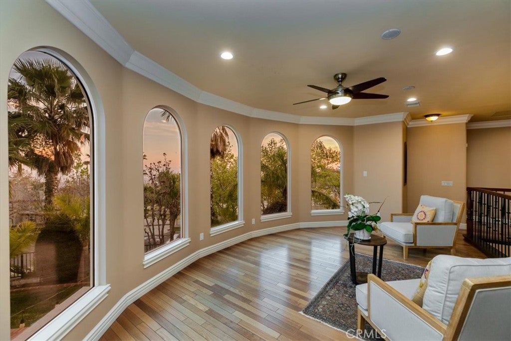 Welcome to Clover Place Manor, a magnificent custom residence set behind the gates of prestigious guard-gated Haven View Estates in Rancho Cucamonga. Situated on an expansive half-acre lot, this 7-bedroom, 7-bath estate offers approximately 8,500 square feet of refined living with an ideal blend of elegance, comfort, and scale. A private courtyard with a tranquil fountain leads to a grand double-door entry and marble foyer. The open floor plan features formal living and dining spaces, an executive office with custom built-ins, and a dramatic family room with soaring ceilings and abundant natural light. The chef’s kitchen is a true showpiece—appointed with GE Monogram appliances, including a built-in refrigerator, double ovens, and a six-burner cook top, complemented by a butler’s pantry, expansive granite countertops, custom backsplash, and an oversized center island designed for gathering. Intimate alcoves and inviting sitting areas throughout create the perfect setting for entertaining or relaxing while enjoying the surrounding views. A main-level guest suite with private entrance offers ideal accommodations for guests or multi-generational living. Upstairs, a spacious loft and thoughtfully designed living spaces continue the home’s theme of comfort and versatility. The primary suite is a private sanctuary, generous in scale with a sitting area and dual-sided fireplace, opening to a private balcony with breathtaking city lights views. The spa-inspired bath features dual vanities, custom cabinetry, a large steam shower, and a jetted soaking tub, complemented by an expansive walk-in closet. Thoughtful upgrades include crown molding, custom cabinetry, and refined architectural details throughout. The resort-style backyard features a pool, spa, outdoor kitchen, and multiple gathering areas designed for the ultimate California lifestyle. Clover Place Manor is a rare opportunity to own a statement residence in one of Rancho Cucamonga’s most exclusive gated communities.