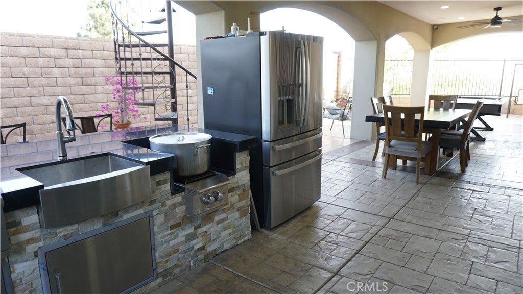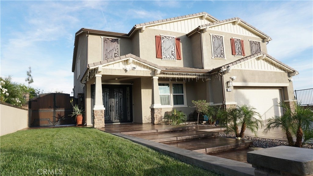 Experience refined living in this exceptional Verdemont foothills estate. Built in 2019 and thoughtfully enhanced, this 5-bedroom, 3,458 sq. ft. residence seamlessly blends modern sophistication with timeless design. From custom wrought iron detailing to elegant premium tile flooring, every finish reflects quality craftsmanship. The gourmet kitchen and designer bar create the perfect setting for elevated entertaining, while the seamless indoor-outdoor flow opens to a covered patio retreat and a private balcony off the primary suite. Offering rare versatility, the home features two downstairs bedrooms—yes, two—one with its own full bathroom, ideal for guests or multi-generational living. An additional downstairs office has been upgraded with a closet, providing flexible use (not included in the bedroom count). An outdoor kitchen further enhances the home’s entertaining capabilities. Surrounded by breathtaking foothill and city views, the property delivers both beauty and a sense of abundance. With fully paid solar, no HOA, and thoughtfully designed spaces throughout, this home offers luxury living with effortless functionality.