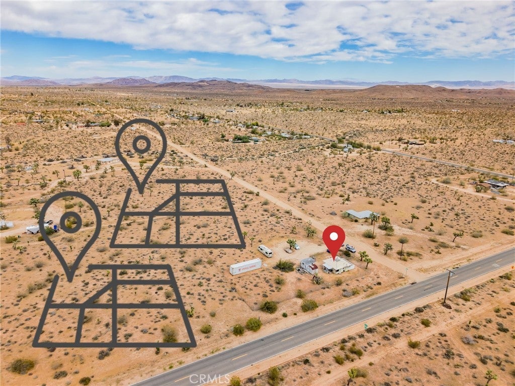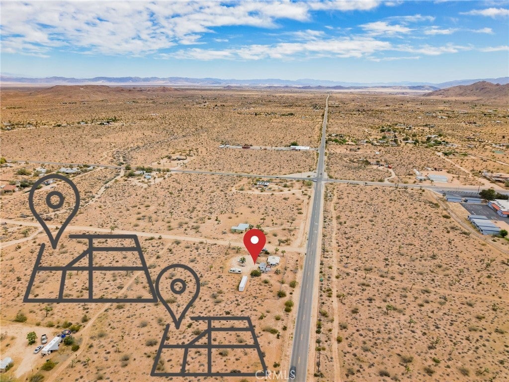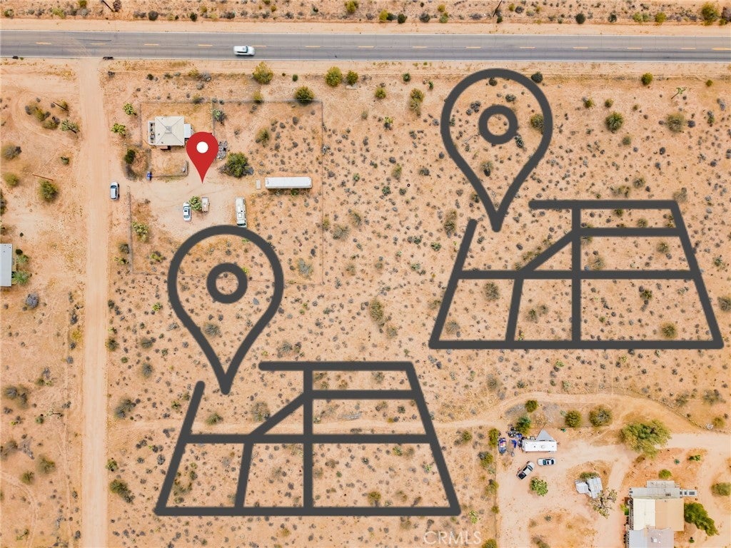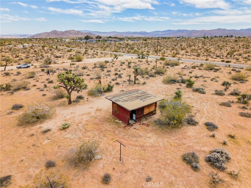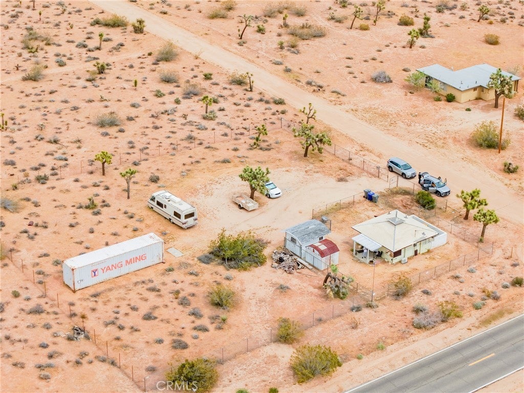 YOUR DESERT DREAM AWAITS DISCOVER 9 ACRES OF SPACE, SERENITY, AND ENDLESS POSSIBILITIES. BUILD YOUR DREAM HOME, INVEST, OR CREATE YOUR PRIVATE RETREAT WITH BREATHTAKING DESERT AND MOUNTAIN VIEWS. YOU ARE ABLE TO PURCHASE 3 PARCELS OF LAND TOGETHER. FLAT BUILDABLE LAND. #1 PARCEL IS THE MAIN HOUSE 1BD 3/4 BA. HOUSE. FULL/KITCHEN WITH REFRIGERATOR, BUILT IN DOUBLE OVEN, DISH WASHER. THE LIVING AREA HAS TILE FLOORS, HIGH CEILING THROUGH OUT THE HOUSE. IT ALSO COMES WITH A WASHER & DRYER IN THE LAUNDRY ROOM ON THE SIDE OF THE HOUSE. A MINI SPLIT HEATING/COOLING SYSTEM. IT ALSO HAS 2 STORAGE SHEDS OUTSIDE, AND A 40 FT CARGO CONTAINER. THE PROPERTY IS FENCED IN WITH DOUBLE GATES. PARTIAL IMAINS 1.8 AC. FLAT BUILDABLE LAND NEXT DOOR, NORTH OF THE MAIN HOUSE ON HARMONY RD. #3 PARCEL SITS ON 3.6 AC. OF FLAT BUILDABLE LAND WITH A CABIN 216 ACRE WEST OF THE MAIN HOUSE ON THE CORNER OF ABERDEEN DR. & LA HARBA AVE, GREAT VIEW