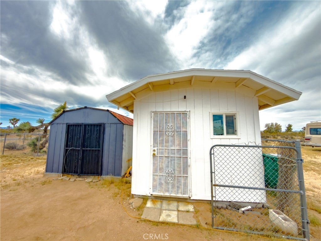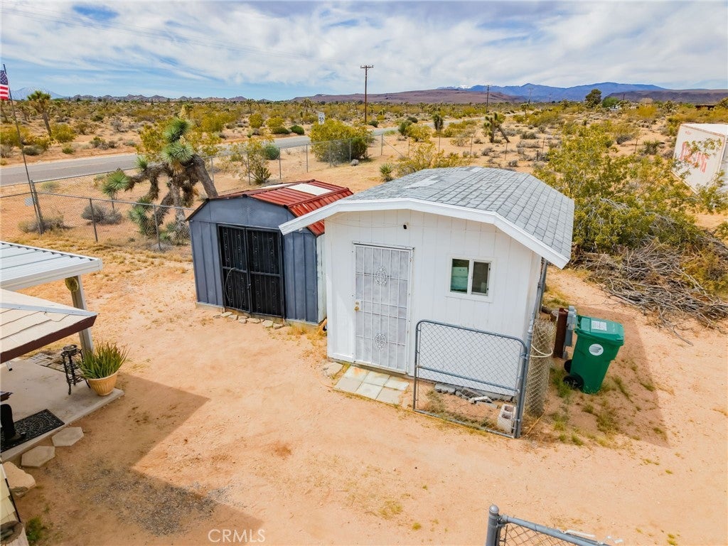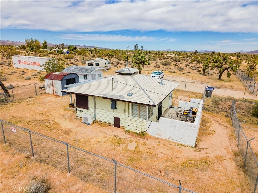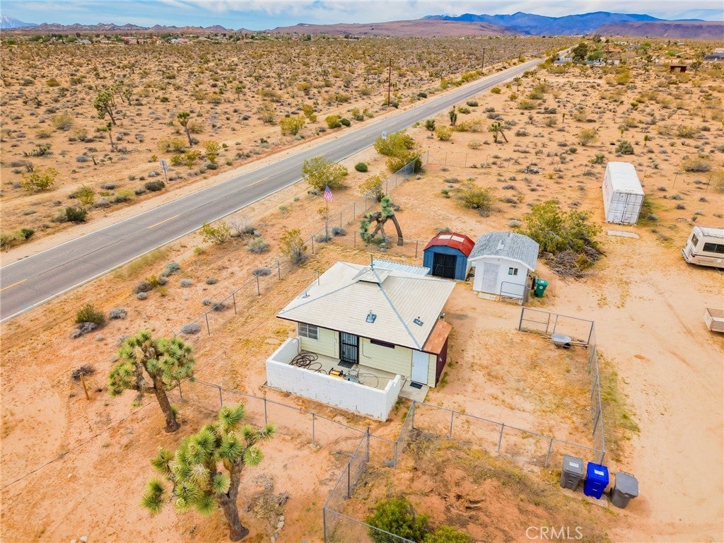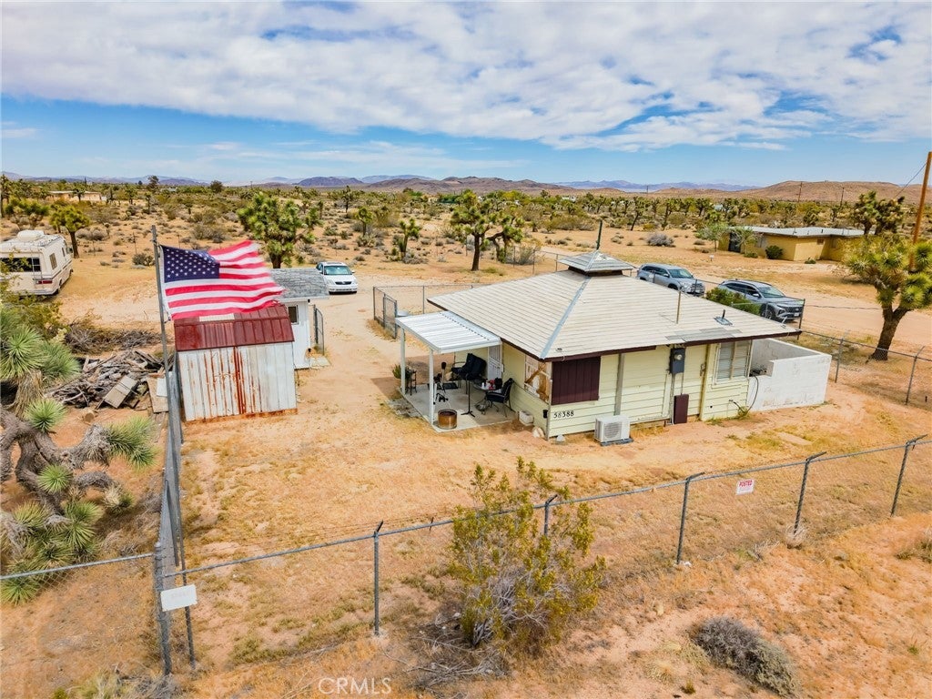 YOUR DESERT DREAM AWAITS DISCOVER 9 ACRES OF SPACE, SERENITY, AND ENDLESS POSSIBILITIES. BUILD YOUR DREAM HOME, INVEST, OR CREATE YOUR PRIVATE RETREAT WITH BREATHTAKING DESERT AND MOUNTAIN VIEWS. YOU ARE ABLE TO PURCHASE 3 PARCELS OF LAND TOGETHER. FLAT BUILDABLE LAND. #1 PARCEL IS THE MAIN HOUSE 1BD 3/4 BA. HOUSE. FULL/KITCHEN WITH REFRIGERATOR, BUILT IN DOUBLE OVEN, DISH WASHER. THE LIVING AREA HAS TILE FLOORS, HIGH CEILING THROUGH OUT THE HOUSE. IT ALSO COMES WITH A WASHER & DRYER IN THE LAUNDRY ROOM ON THE SIDE OF THE HOUSE. A MINI SPLIT HEATING/COOLING SYSTEM. IT ALSO HAS 2 STORAGE SHEDS OUTSIDE, AND A 40 FT CARGO CONTAINER. THE PROPERTY IS FENCED IN WITH DOUBLE GATES. PARTIAL IMAINS 1.8 AC. FLAT BUILDABLE LAND NEXT DOOR, NORTH OF THE MAIN HOUSE ON HARMONY RD. #3 PARCEL SITS ON 3.6 AC. OF FLAT BUILDABLE LAND WITH A CABIN 216 ACRE WEST OF THE MAIN HOUSE ON THE CORNER OF ABERDEEN DR. & LA HARBA AVE, GREAT VIEW