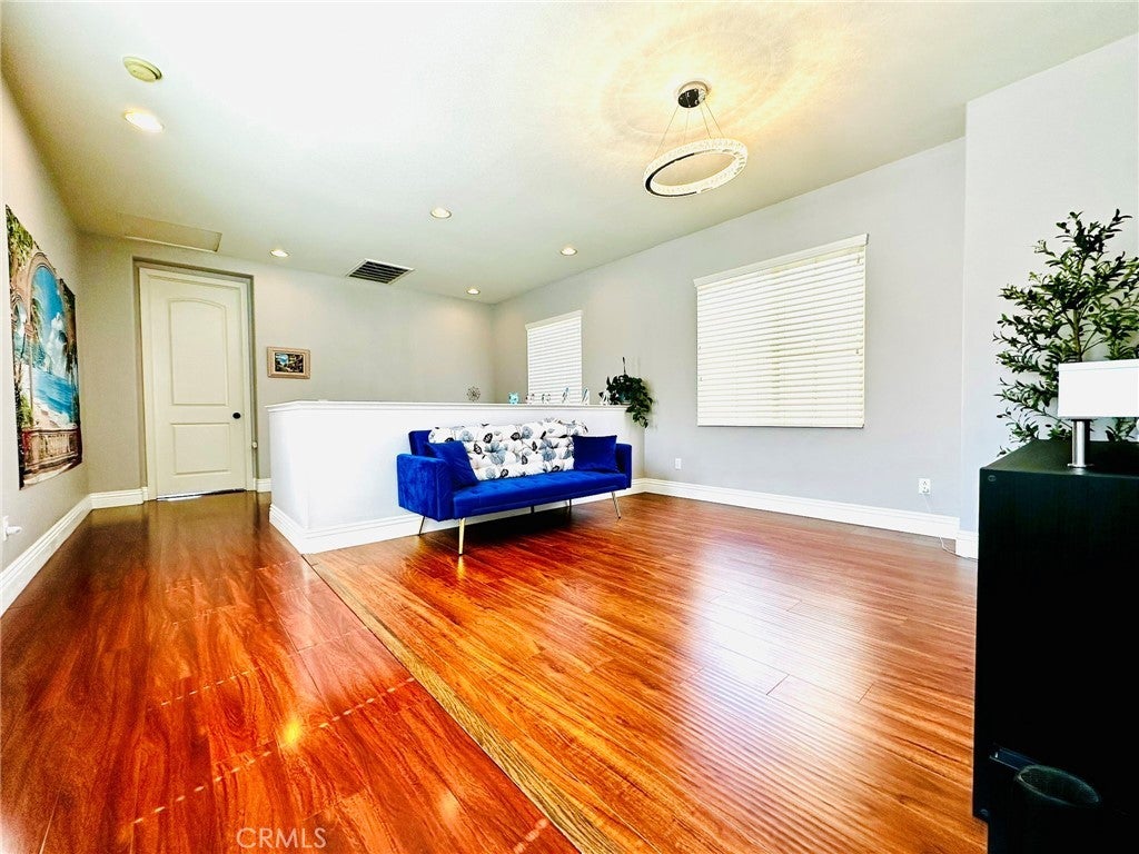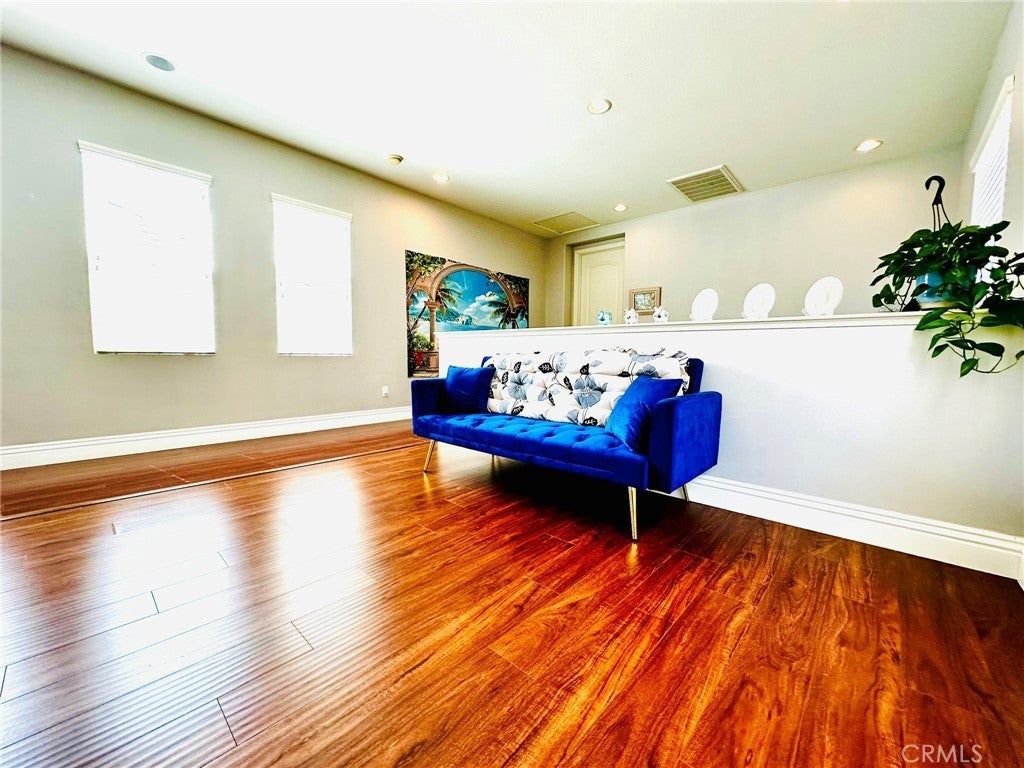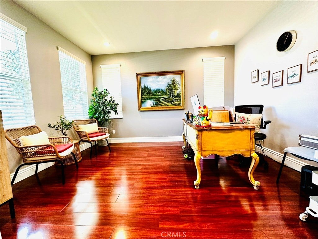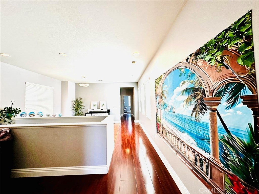 Great opportunity to own this beautiful and well maintained home in the Wolf Creek Community, one of the most desirable neighborhoods in Temecula! This exceptional 2 story home features 3 bedrooms, 2.5 bathrooms, plus a spacious office on the first floor that you could easily turn into a bedroom if needed, high ceilings, high end laminate wood flooring and grand base molding are throughout the property, front porch surrounded with greeneries, large balcony off the master suite enjoys beautiful mountain and neighborhood views, you'll also truly enjoy walking or biking nearby where you'll find many grand parks here and there. Master suite is so spacious and privately located on one side of the home, across the loft, you'll find 2 other bedrooms on the other side, perfectly designed for kids or guests, laundry room has a sink and lots of storage, garage is very spacious and has 2 sets of high quality storage cabinets. Kitchen features granite countertop and upgraded appliances. Bathrooms features quartz countertops, updated mirrors and lightings. The property is just a few minutes walk to the community center that offers a swimming pool, spa, fitness room, club house, outdoor barbeque, park and playground. Whether you're seeking a sanctuary to call home or a high-performing asset for your portfolio, this property delivers the best of both worlds.