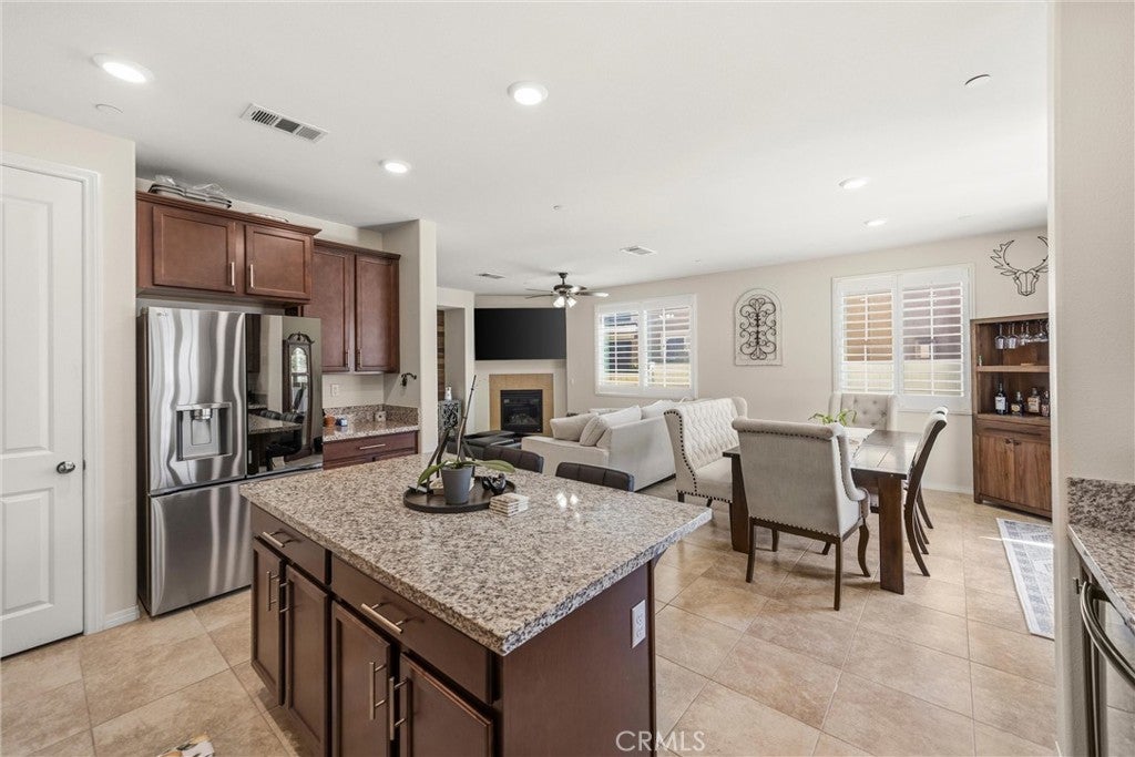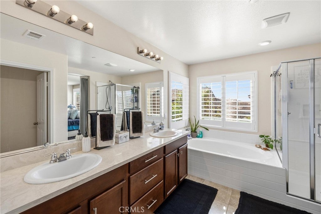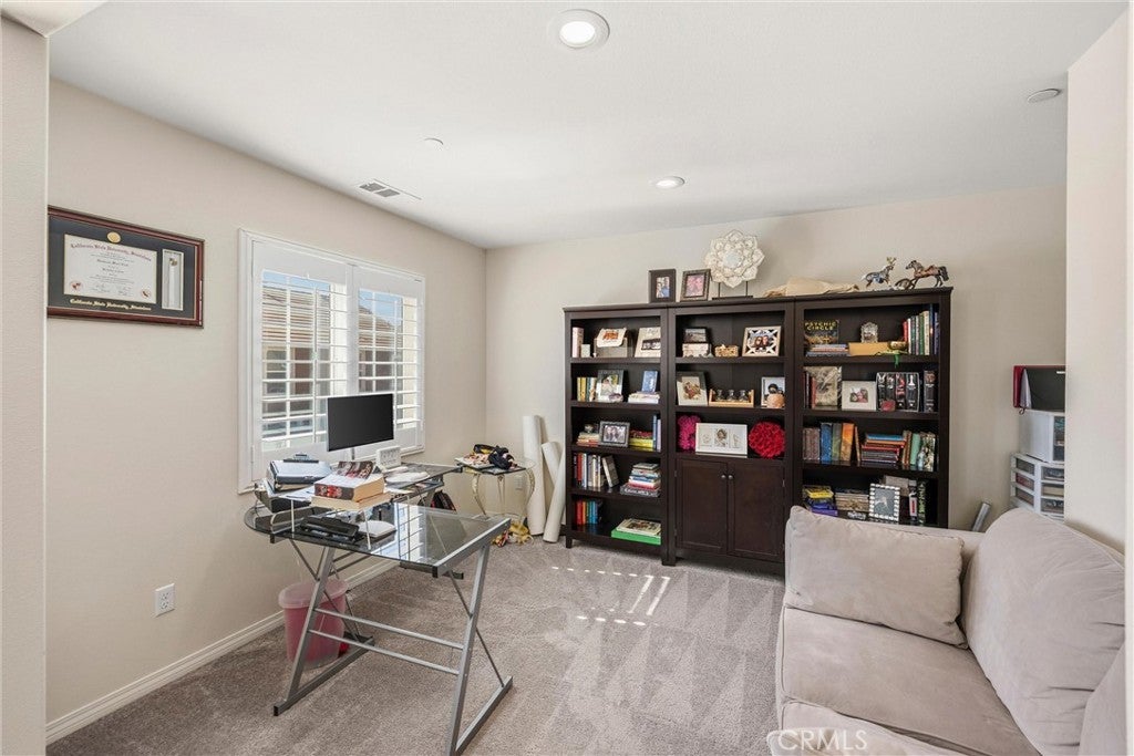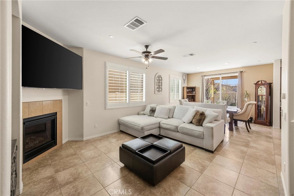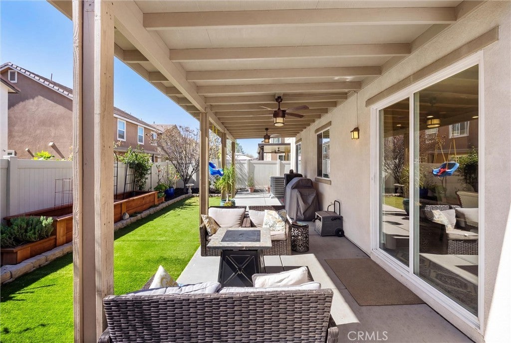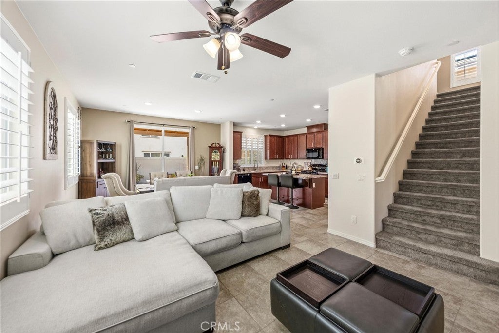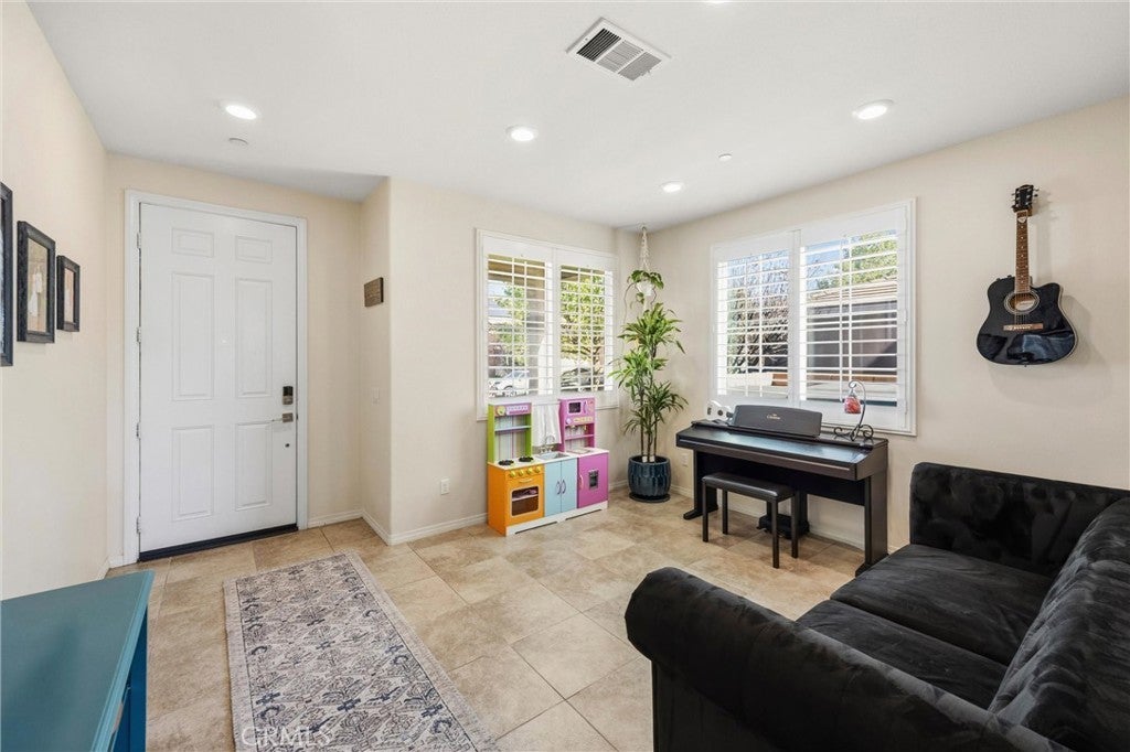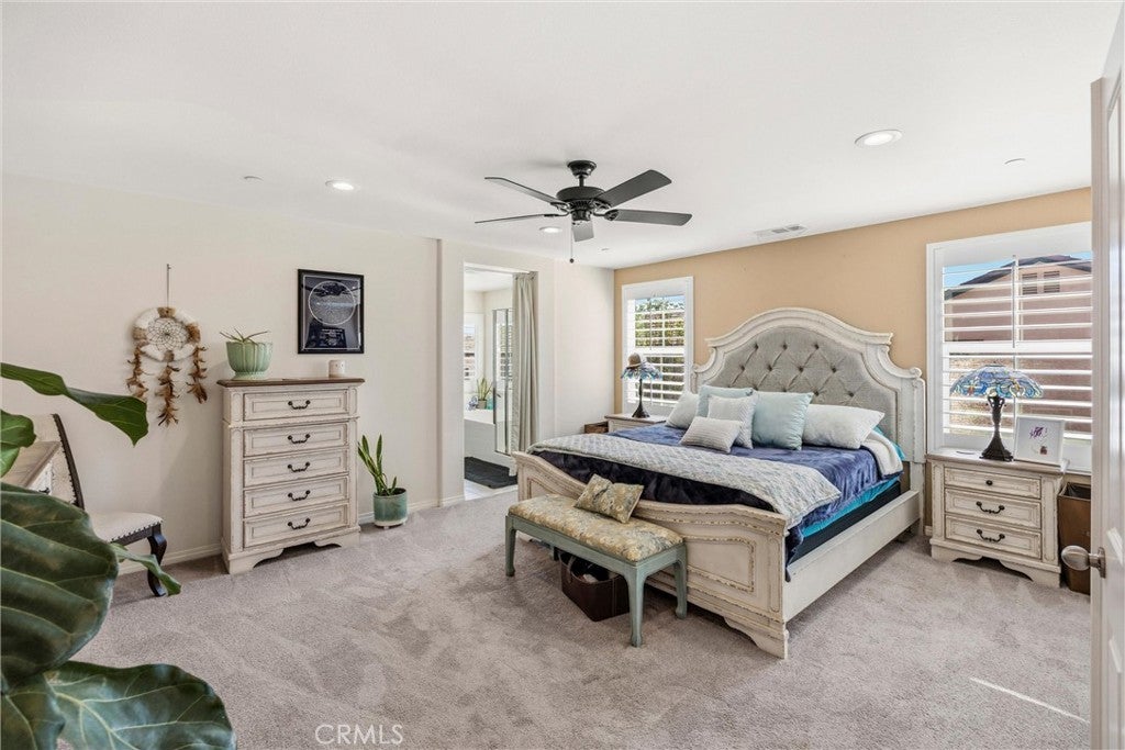 Welcome to this beautifully maintained 4-bedroom, 3-full-bath home! Thoughtfully designed for modern living, this home features a main-level bedroom and full bathroom, ideal for guests, multi-generational living, or a home office. Inside, you’ll find a functional layout with spacious living areas, abundant natural light, and room to grow. Upstairs, the oversized primary suite includes an integrated flex space perfect for a nursery, sitting area, office, or potential 5th bedroom conversion & upstairs laundry room. Step outside to enjoy a low-maintenance backyard with covered patio space, vinyl fencing with artificial grass, ideal for relaxing or entertaining. Additional highlights include solar panels for added energy efficiency and long-term savings, amazing Rosena Ranch amenities including, multiple pools, fitness center and parks. With its versatile floor plan and desirable features, this home offers comfort, convenience, and endless potential.