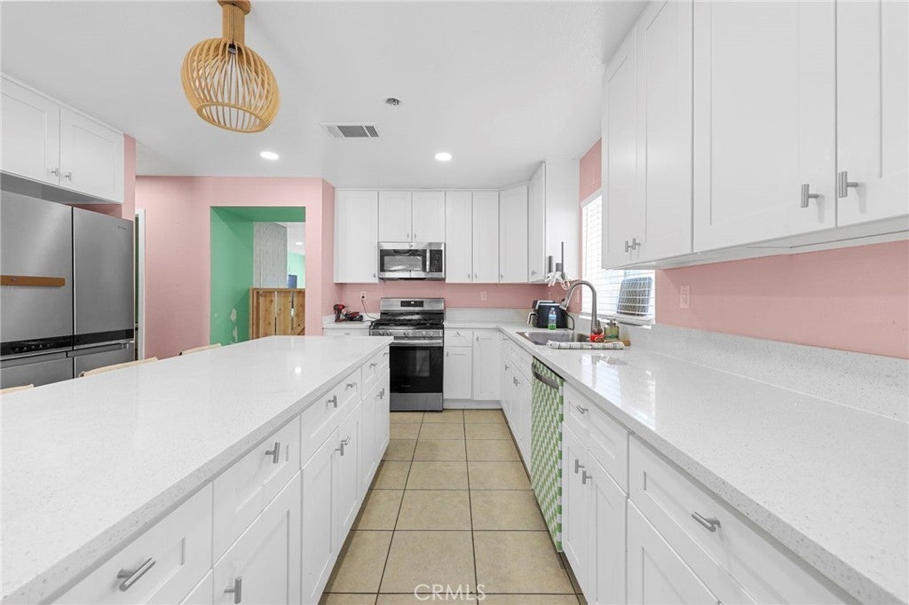 Single story home in the Snowline School District that’s actually done right. This 4 bed, 2 bath has a super clean open layout with good natural light and solid sized bedrooms, including a big primary with bathroom and walk in closet. Kitchen is dialed in with custom cabinets, quartz counters, a large island, and stainless steel appliances. It flows straight into the backyard, which has real grass and plenty of space for BBQs or hanging out. You’ve got mountain views out front, a private yard in the back, and the basics already handled — central AC, indoor laundry, updated flooring, new lighting and a 2 car garage with epoxy floors. Good location in Victorville, close to the 395 with quick access to the 15 and near shopping and food spots. Turnkey and ready to go.