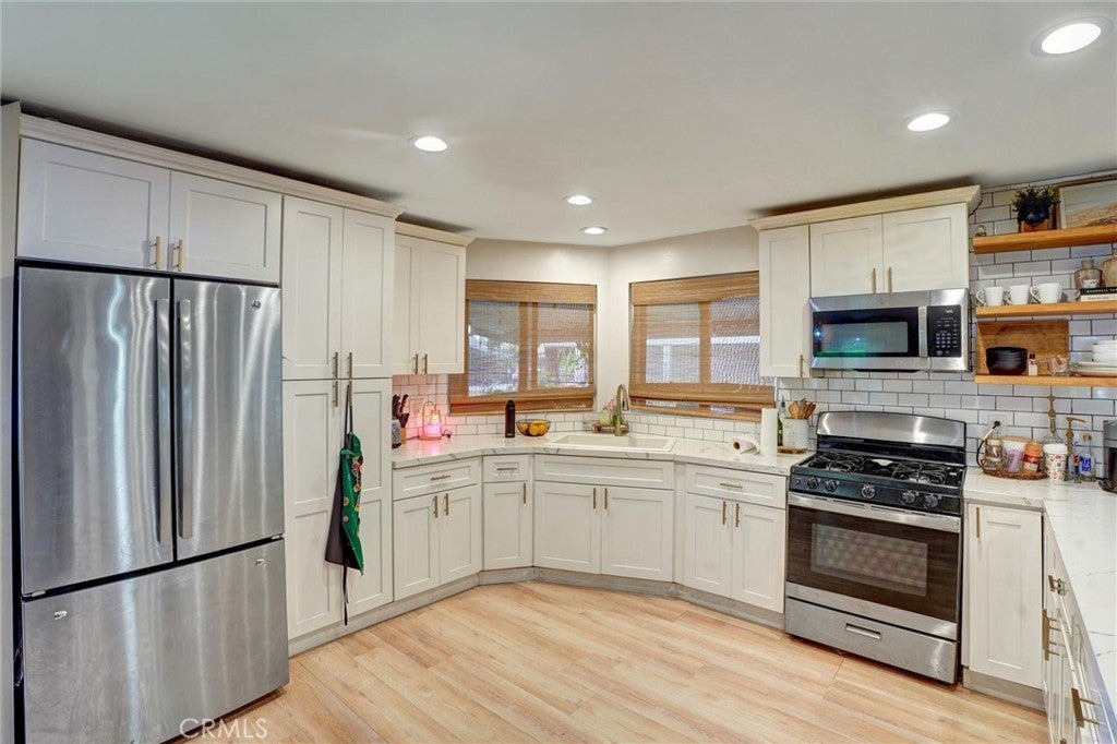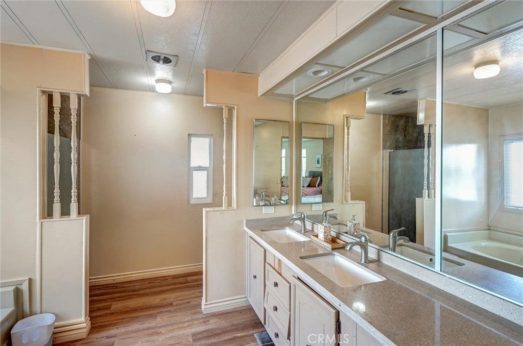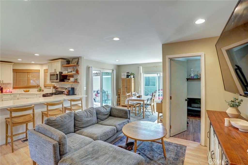 Welcome to the Anaheim Shores Estates conveniently located next to 5/91 freeways, shopping centers, and amusement parks. You will find this beautiful 3 bedroom 2 bath home tucked away in the Windlass cul-de-sac right next to plenty of visitor parking spaces. This home offers a spacious and open layout featuring laminate wood floors, central air conditioning, and a modernized kitchen. Enjoy your newly remodeled kitchen boasting a breakfast nook resessed lighting, and quartz countertops. The primary suite showcases dual closets, double bathroom sinks, with a soaking tub and separate shower. The covered patio easily accessed from the sliding glass door is so inviting to host family and friends. The clubhouse holds an event space and kitchen perfect for gatherings and celebrations. This desirable community offers amenities like the pool and spa in addition to a card and billiard room. Don't miss out on this opportunity to live in a resort style community.
