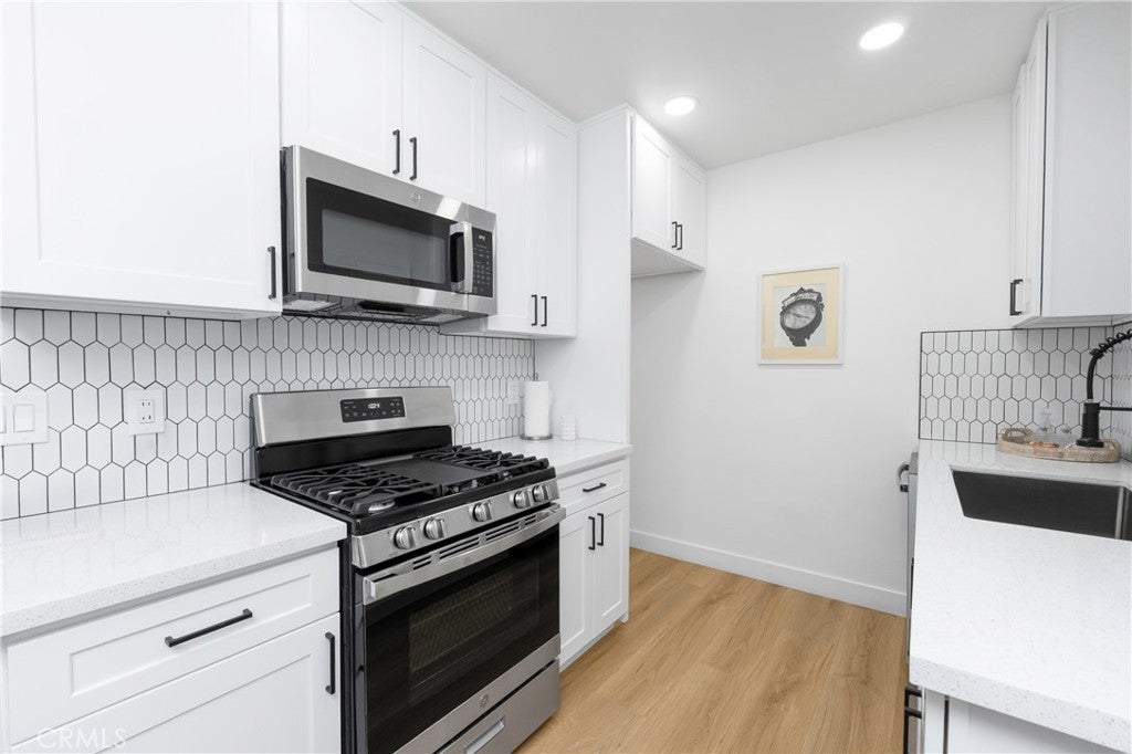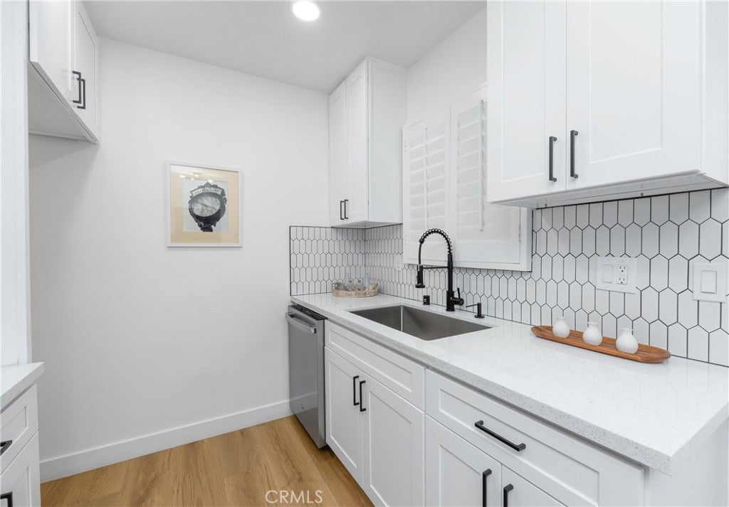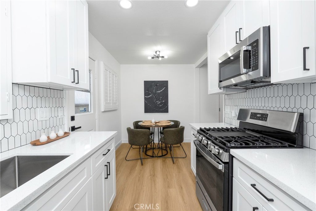 Beautifully remodeled 2-bedroom, 1-bath home located in the heart of Norwalk! This move-in ready property offers convenient access to major freeways, shopping centers, and local schools—perfect for commuters and families alike. The home features a fully upgraded kitchen with sleek quartz countertops, brand-new cabinetry, and stainless steel appliances. The remodeled bathroom showcases modern finishes, while waterproof flooring flows throughout the home for both style and durability. Additional highlights include dual-pane windows, elegant wood shutters, and a finished garage that offers extra versatility along with a spacious laundry room. This is a fantastic opportunity to own a turnkey home in a highly desirable location!