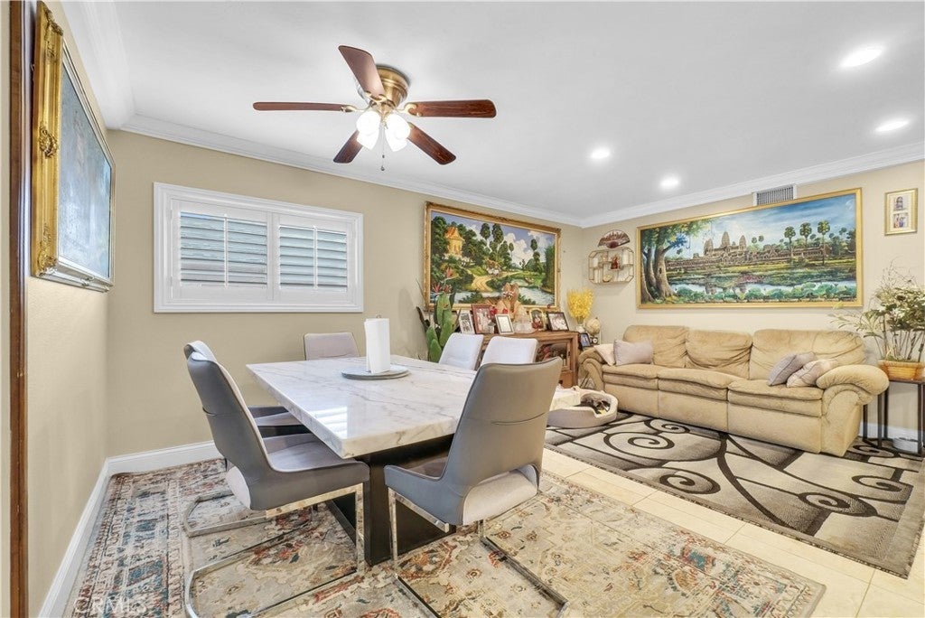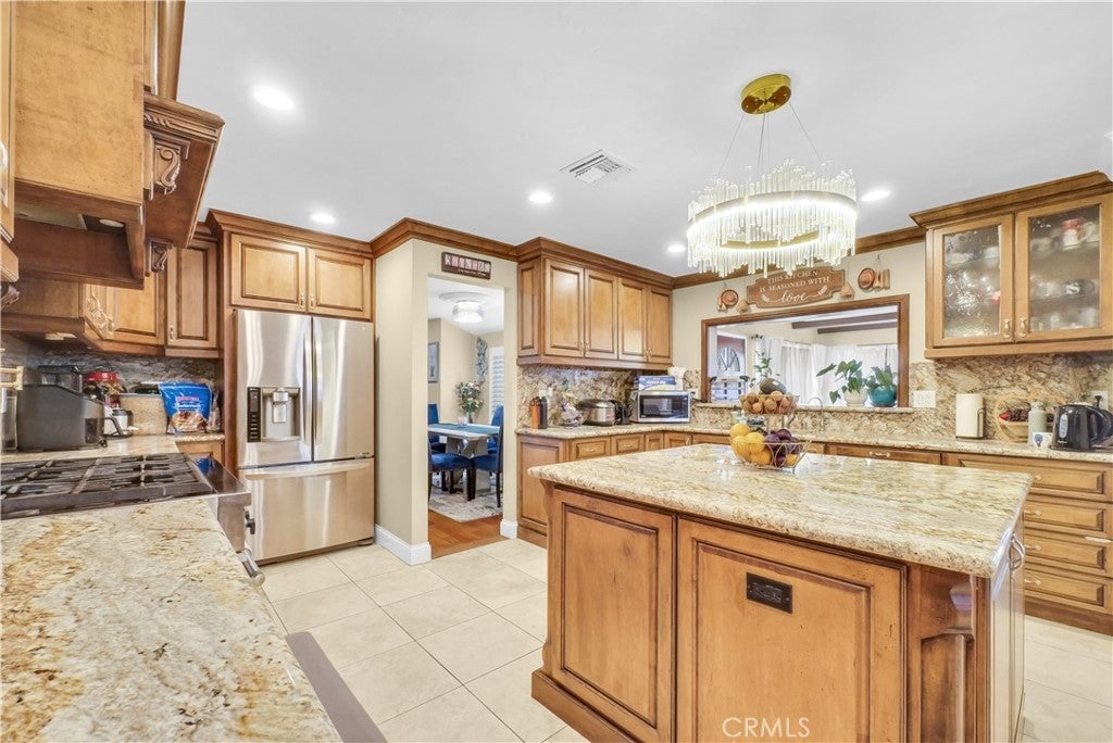 Step inside a single story home and you are immediately welcome by a bright open floor plan that creates a seamless flow between the living and dining spaces. Just ahead, the kitchen serves as the centerpiece of the home, featuring a chef's layout with 6 burner oven, microwave, perfect for both everyday living and entertaining. Follow with a fully renovated bathroom, home features a massive in suite bedroom complete with a large walk-in closet and a private bathroom and dual sink vanity. Large laundry with sink for comfort. Throughout the home, you will appreciated the extensive upgrades including added new HVAC system, new rain gutter, and added insulation in the attic, and water filtration. Located in the friendly country club neighborhood with close proximity to 210 and 15 freeways. Home is move-in ready.
