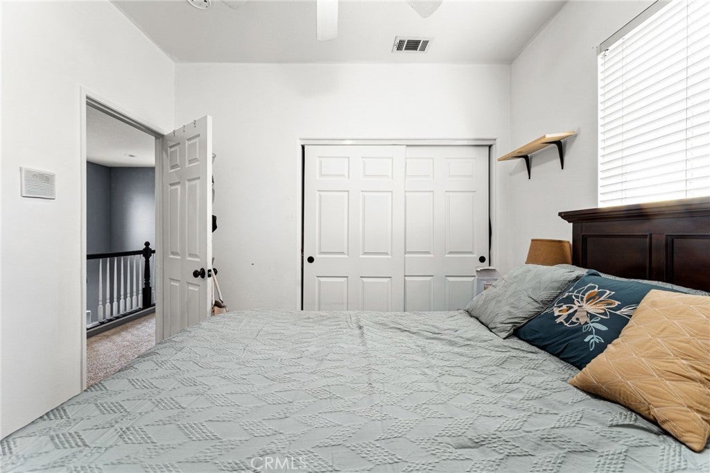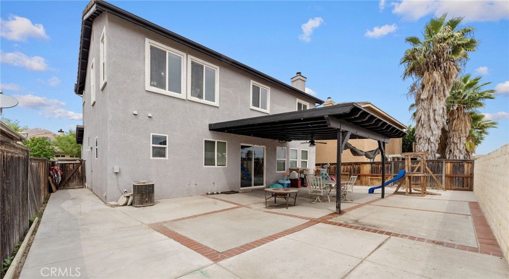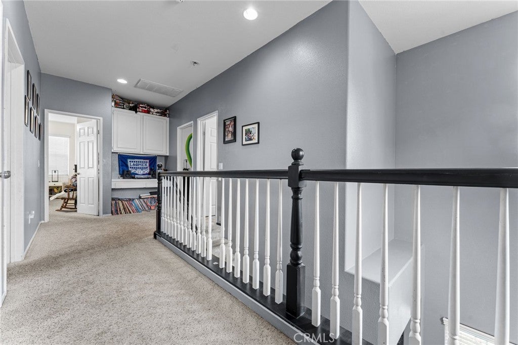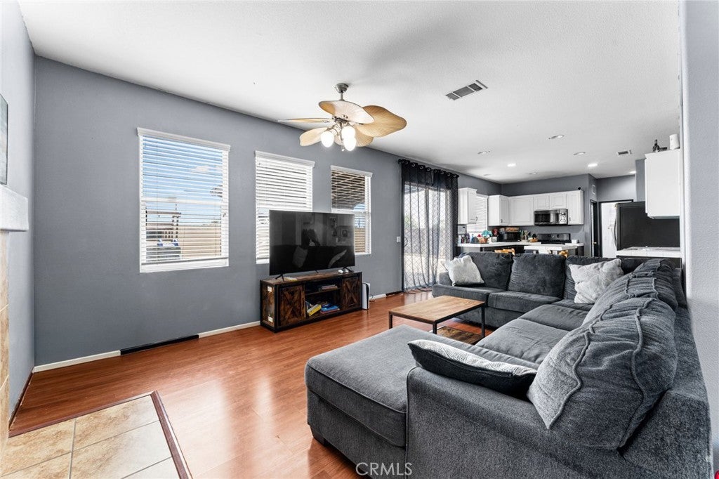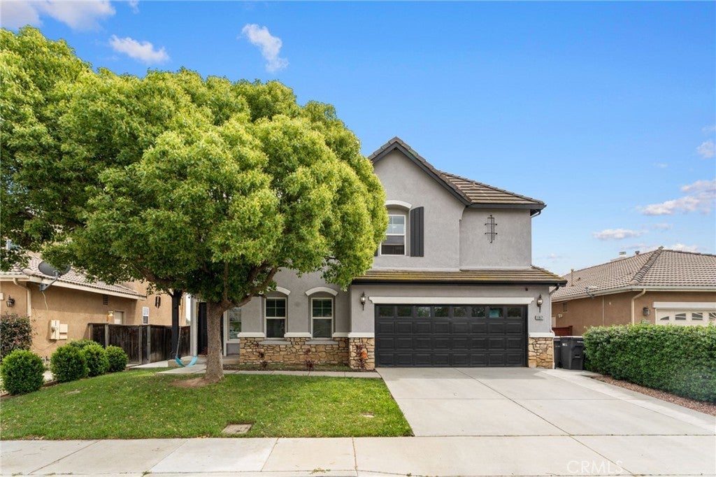 Welcome to Moreno Valley with great curb appeal! This spacious and versatile home offers 4 bedrooms and 2.5 bathrooms! The home is ideal for growing households, guests, or a home office setup. From the curb, the home stands out with its attractive stone siding, a complementary paint scheme, and decorative shutters along the windows. a 2-car garage and wide driveway provide for ample parking. Step inside the home and you’re welcomed by a tile entry! A downstairs office area can potentially function as an additional sleeping area, if needed. Step into the living room which features a fireplace and opens seamlessly to the kitchen, creating a comfortable and connected space for everyday living and entertaining. The kitchen comes equipped with a stainless steel 5-burner stove, microwave hood/vent, dishwasher, and a refrigerator. White tile countertops, shaker-style cabinets, and a pantry for extra storage. A dedicated laundry room with built-in shelving. A convenient downstairs bathroom adds to the home’s functionality. Upstairs, you’ll find four bedrooms, including the converted loft, plus a landing area with built-in shelving. The upstairs primary bedrooms offer ample natural light. In addition, dual closets, and a private bathroom complete with double vanity sinks, a shower/tub combination, and a separate water closet for additional privacy. The upstairs hall bathroom also features a double vanity and full shower/tub combo, making it well-suited for busy households. Step outside through the sliding glass door to a low-maintenance backyard featuring a large concrete area with brick accents and a generously sized covered patio, perfect for relaxing or hosting. With central heating and air conditioning and a flexible, comfortable layout, this home offers buyers a strong opportunity for space, function, and value in a well-established Moreno Valley neighborhood.